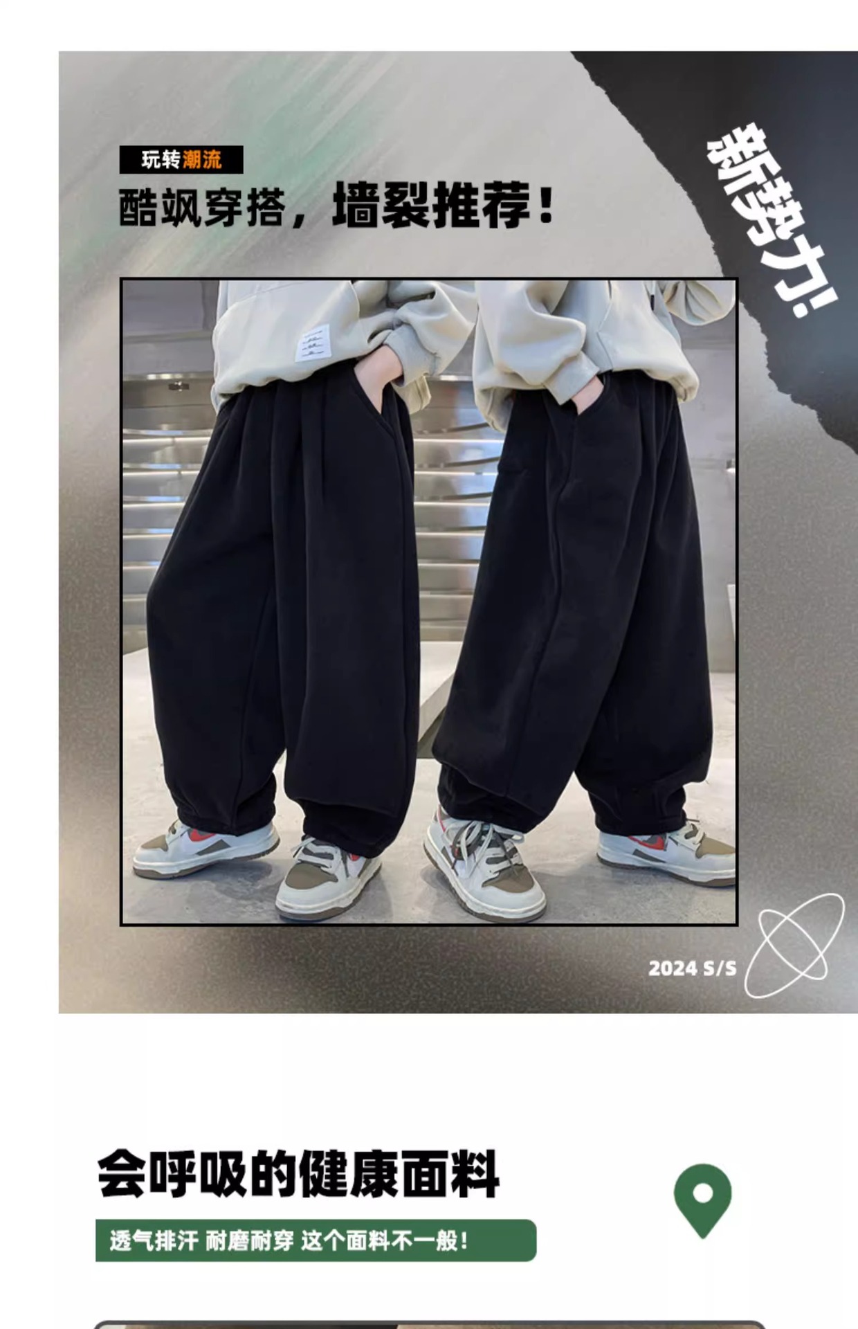소년 바지 봄과 가을 2024 새로운 어린이 가을 운동복 큰 어린이 가을 스포츠 바지 소년 캐주얼 바지스토어 가기