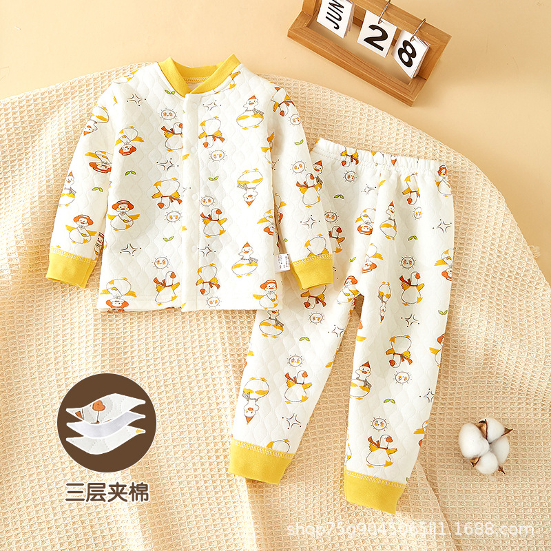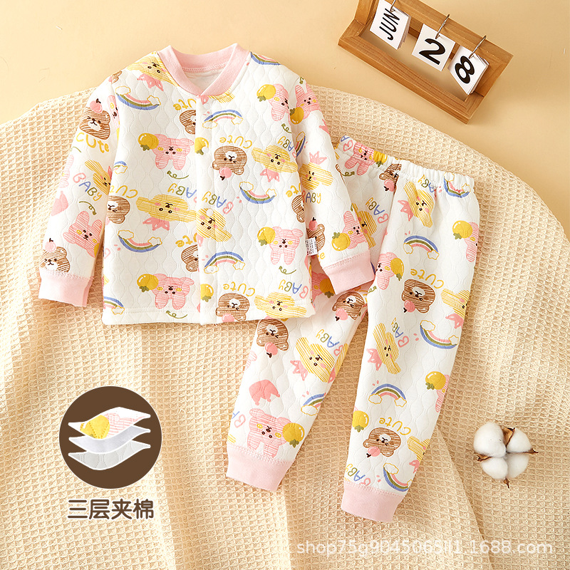 아기의 가을 옷과 바지 세트 남자 아기의 분할 속옷 풀오버 봄 가을과 겨울 따뜻한 면 어린이 홈 옷 여성