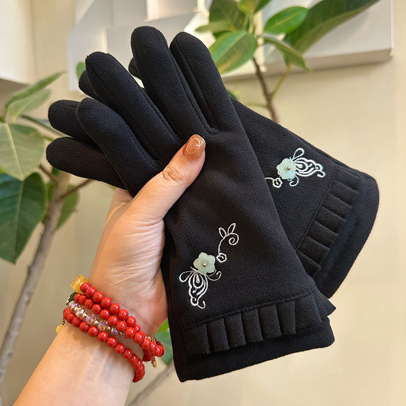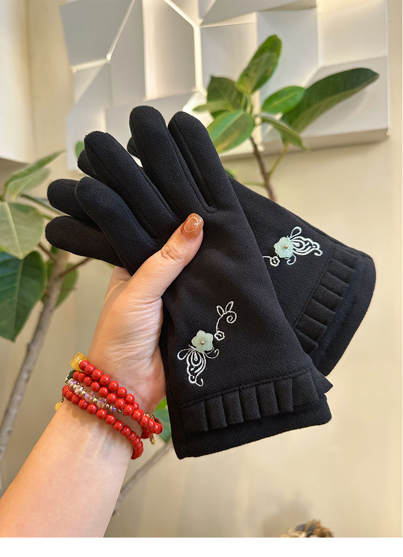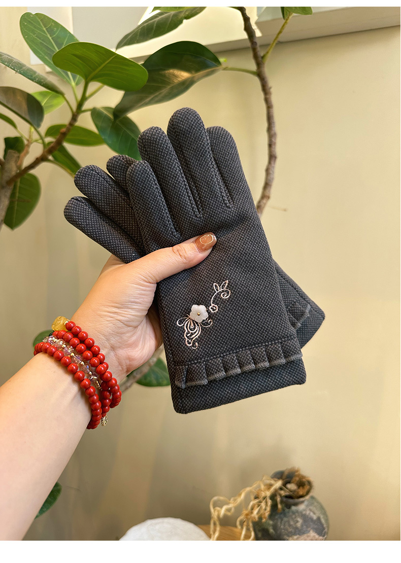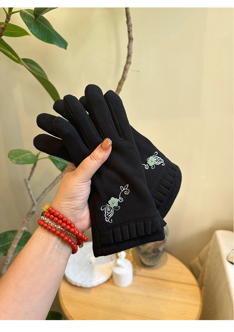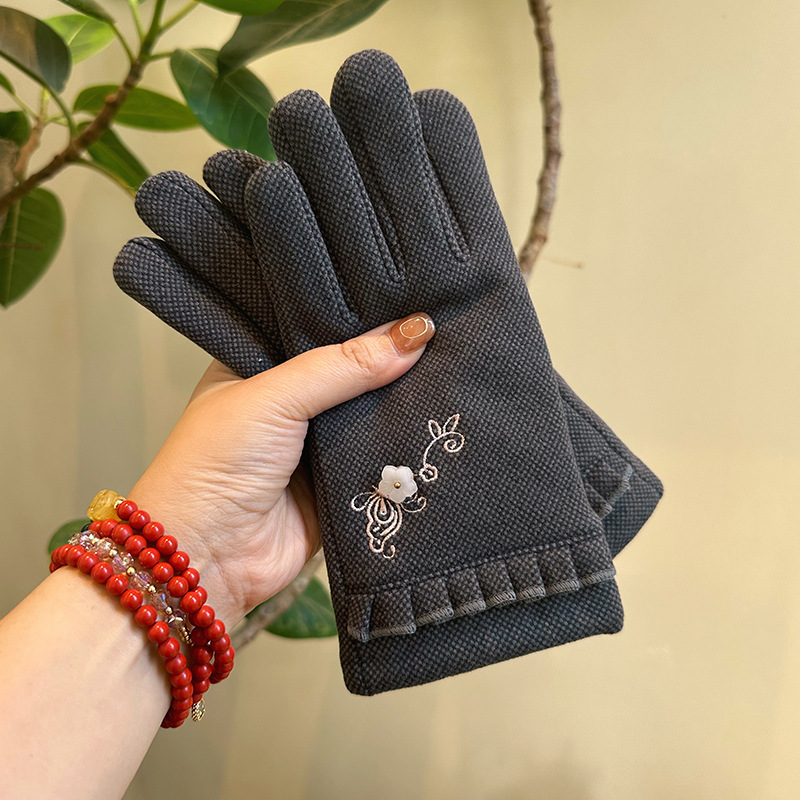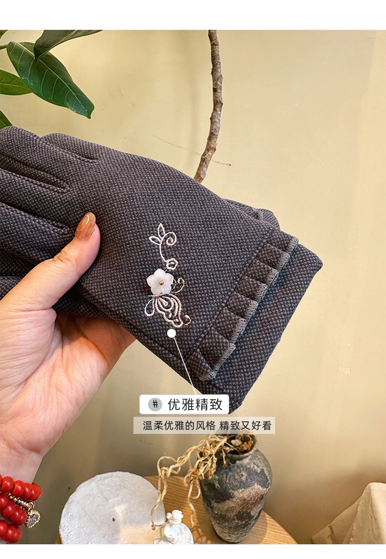 2024 새로운 가을과 겨울 따뜻한 국가 스타일 자수 장갑 기모 두꺼운 방풍 장갑 내부 봉제 기질 조커스토어 가기
