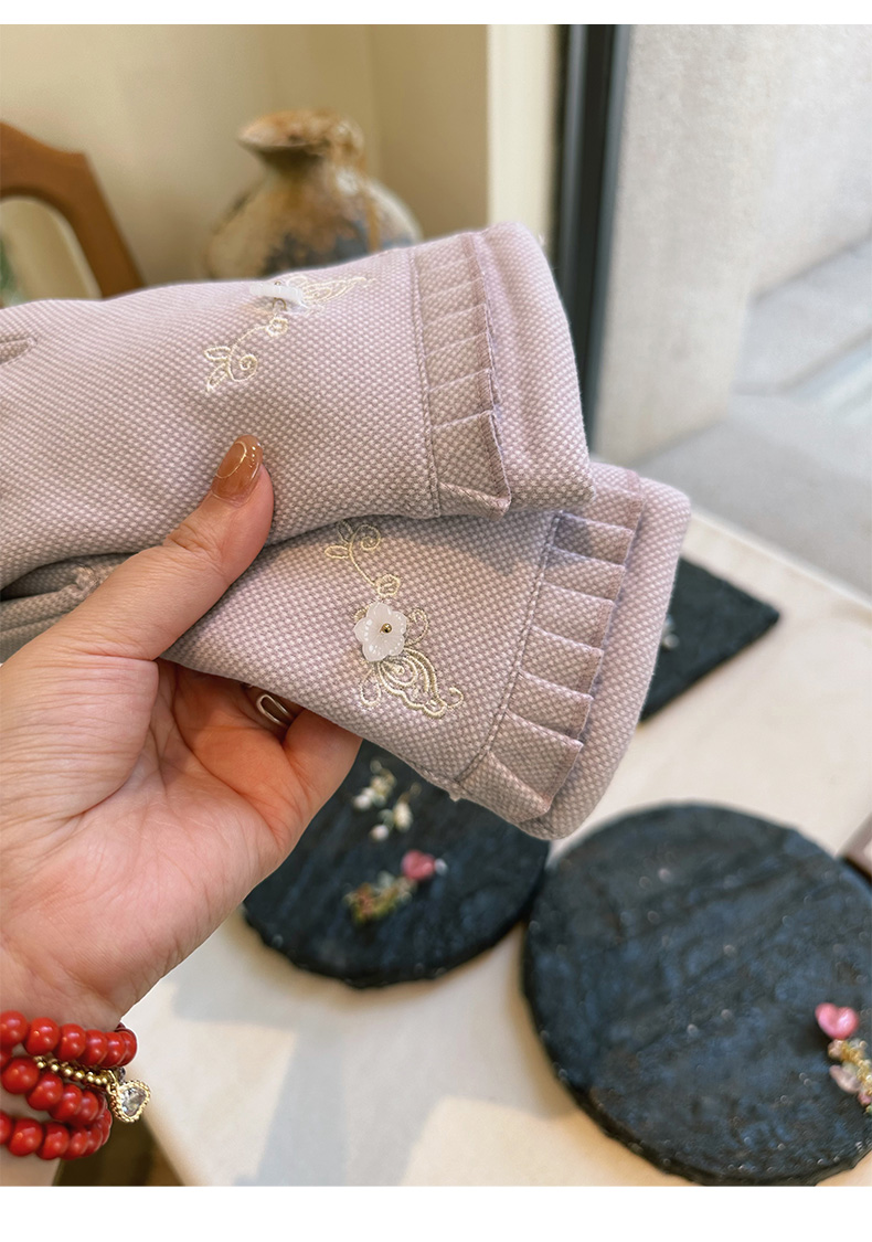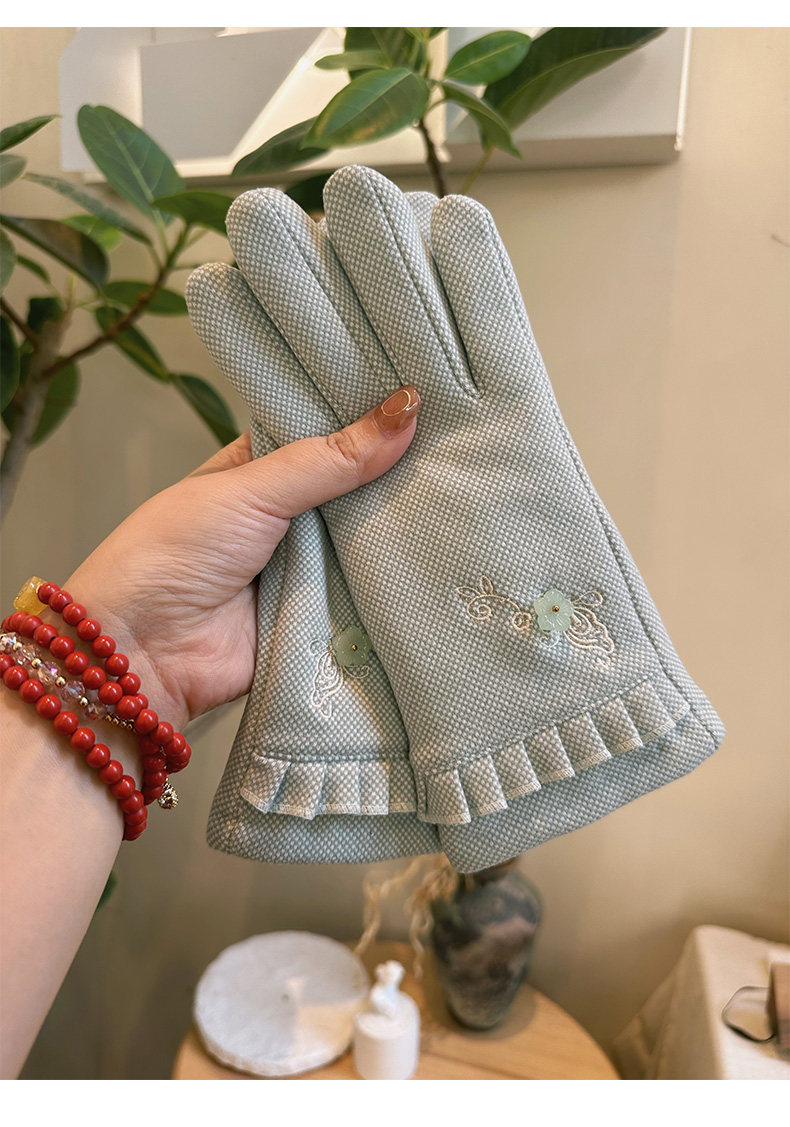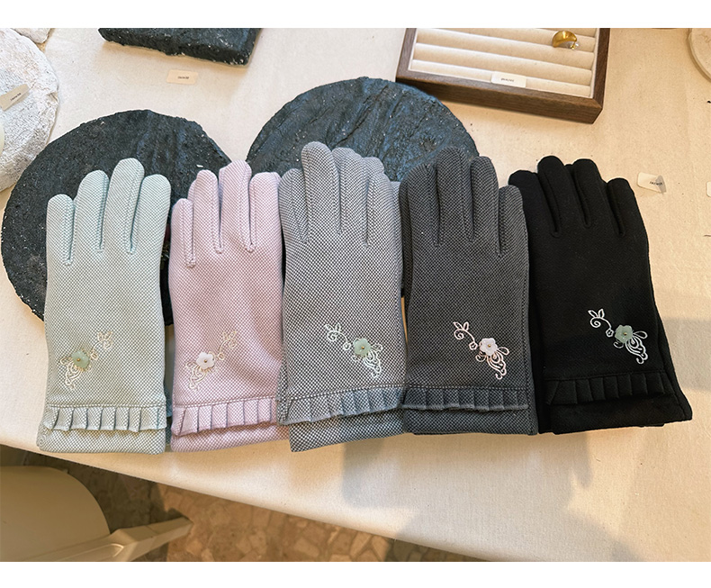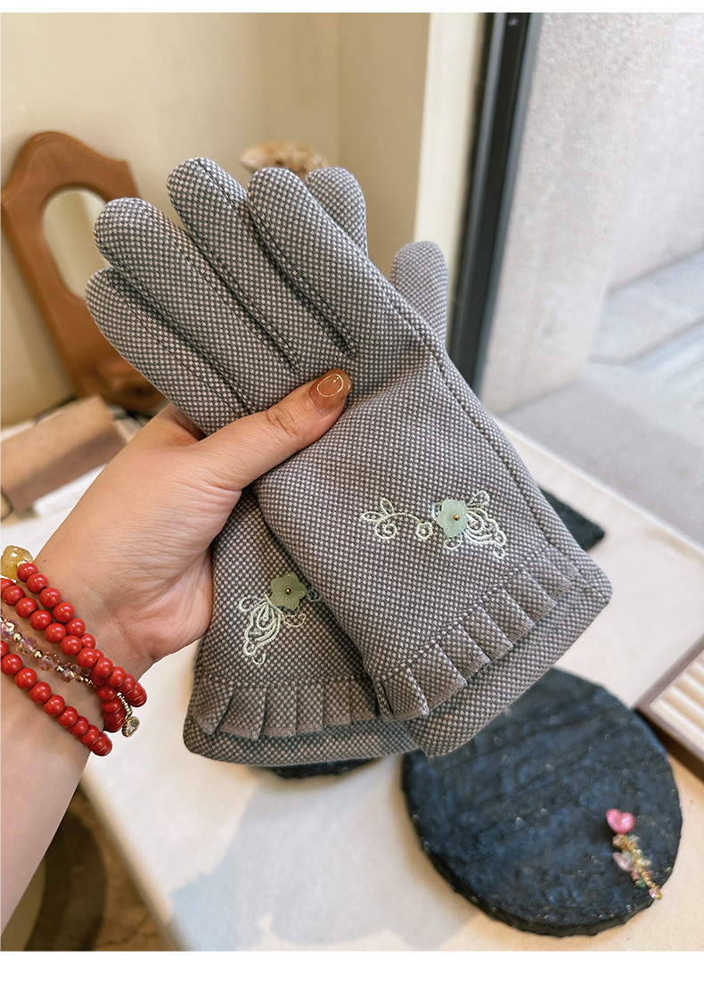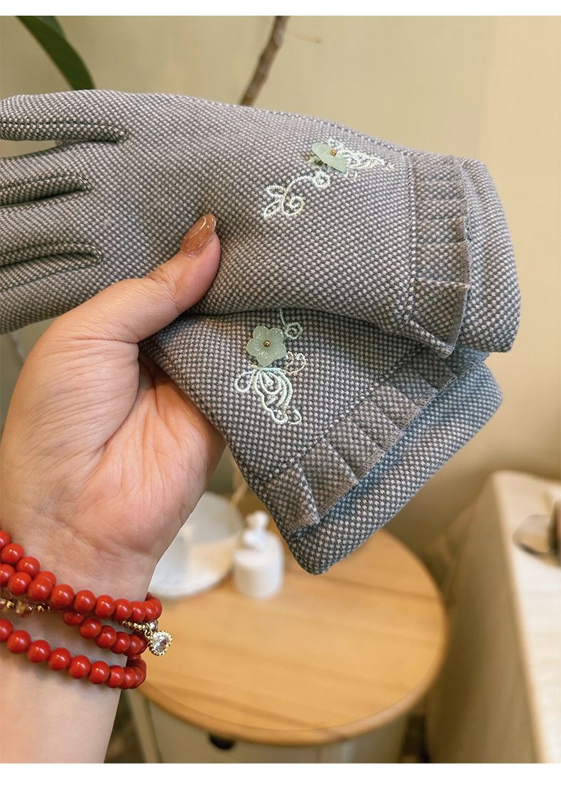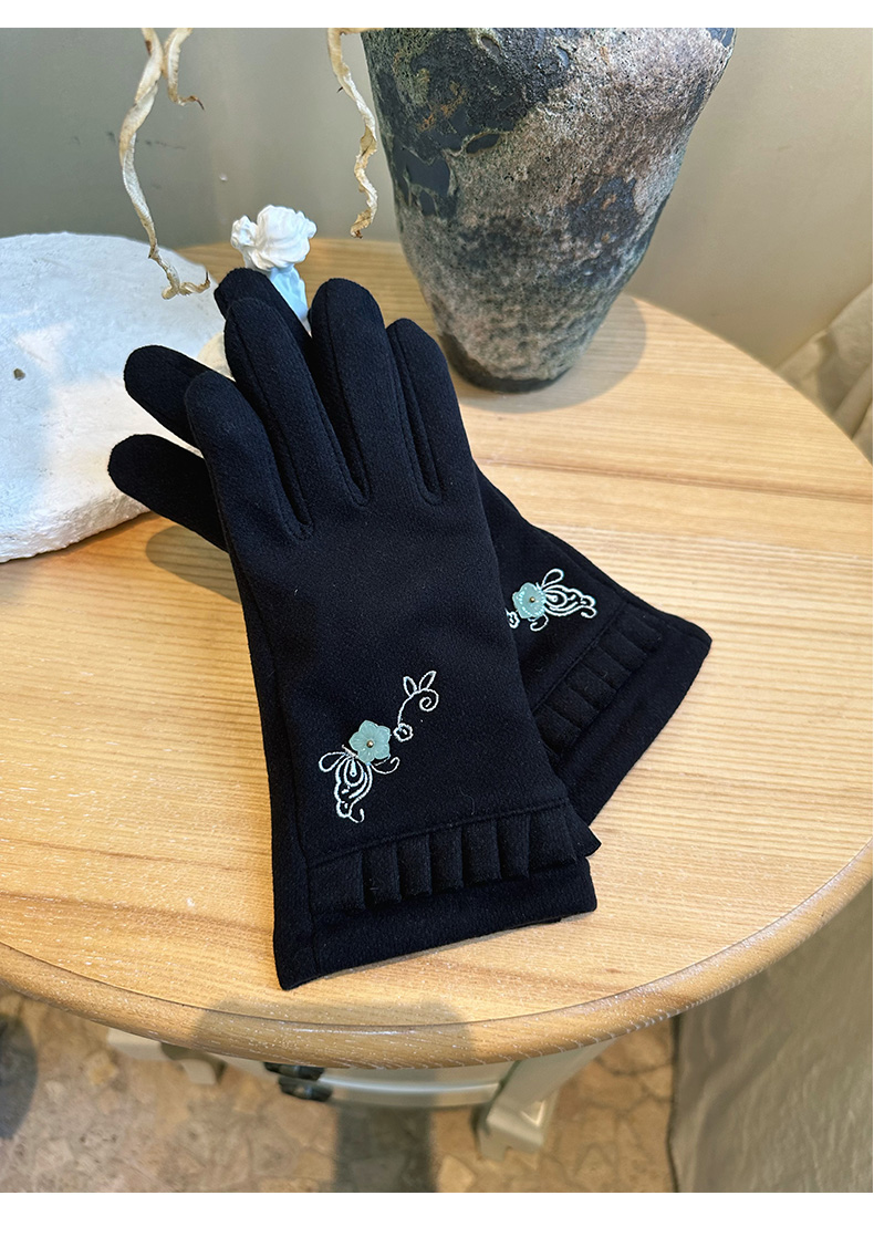 2024 새로운 가을과 겨울 따뜻한 국가 스타일 자수 장갑 기모 두꺼운 방풍 장갑 내부 봉제 기질 조커스토어 가기