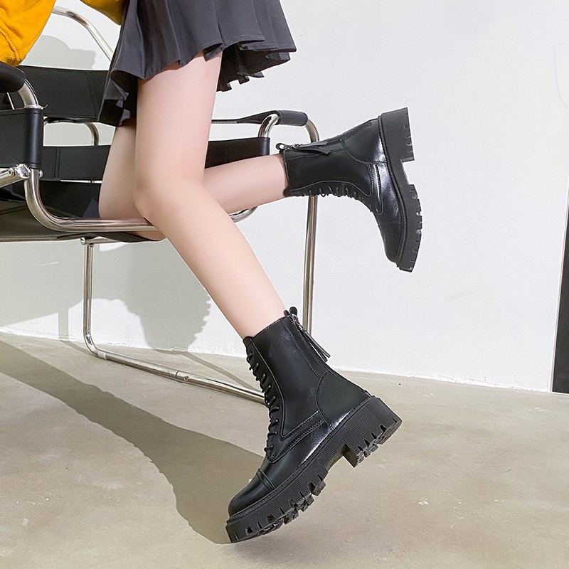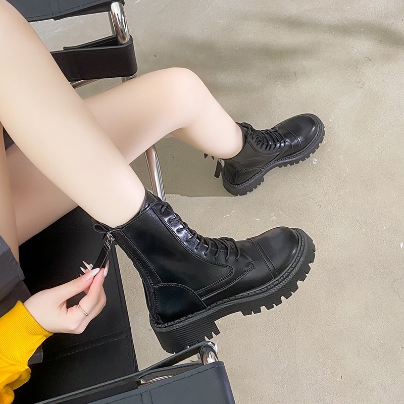 2025년 가을 겨울 신상 여성용 마틴 부츠, 끈 달린 짧은 부츠, 두꺼운 밑창, 키높이, 중간 길이 부츠 도매스토어 가기