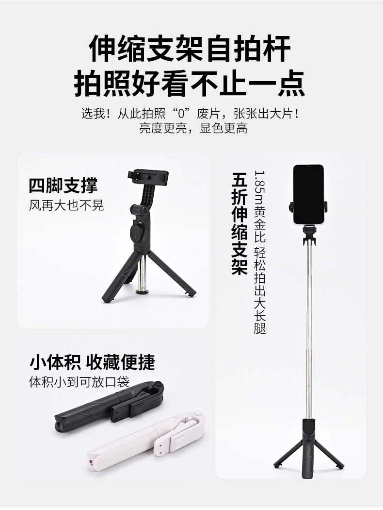 블루투스 셀카 스틱 길쭉한 빛 채우기 휴대 전화 라이브 방송 브래킷 삼각대 통합 사진 흔들림 방지 뷰티 스틱 제조 업체스토어 가기