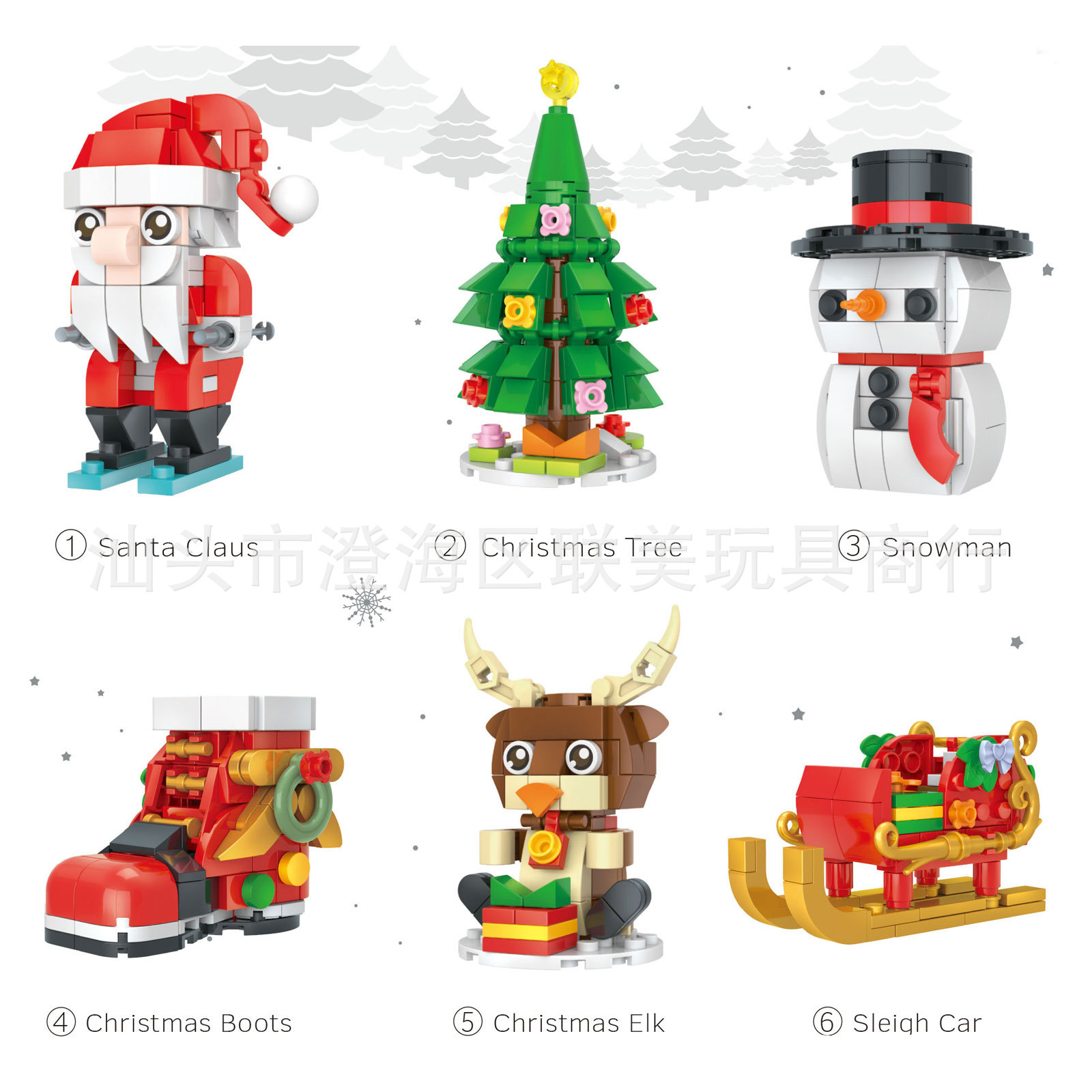 크리스마스 빌딩 블록 세트 퍼즐 빌딩 블록 산타 클로스 크리스마스 트리 눈사람 눈화 썰매 6 새로운 국경 제품스토어 가기