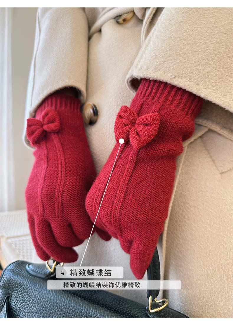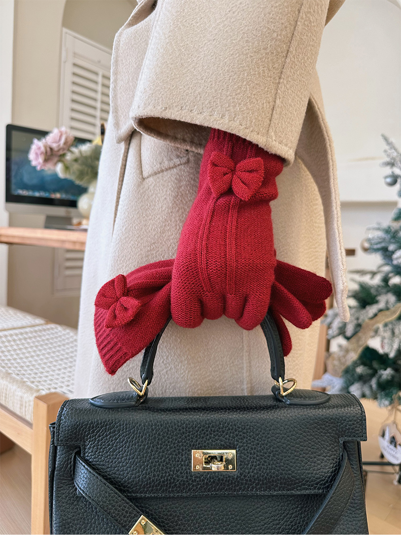 가을과 겨울에 휴대 전화를 가지고 노는 양모 활 양모 장갑을 포함하는 빨간 니트 따뜻한 장갑스토어 가기