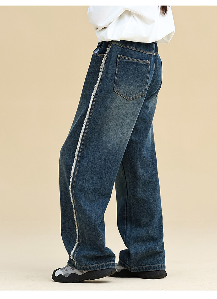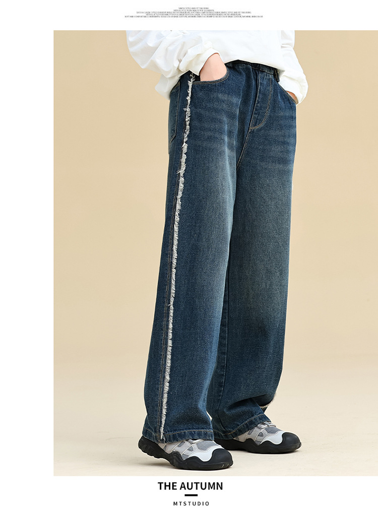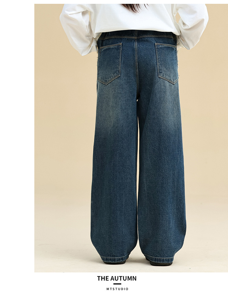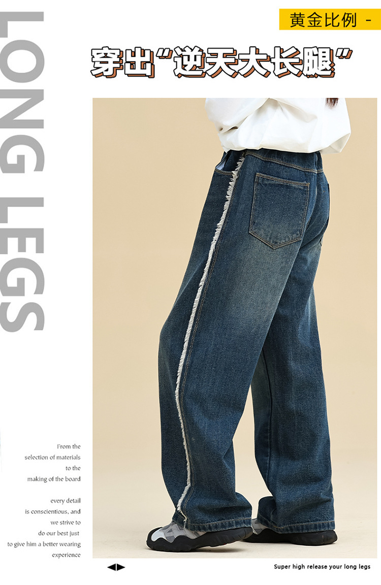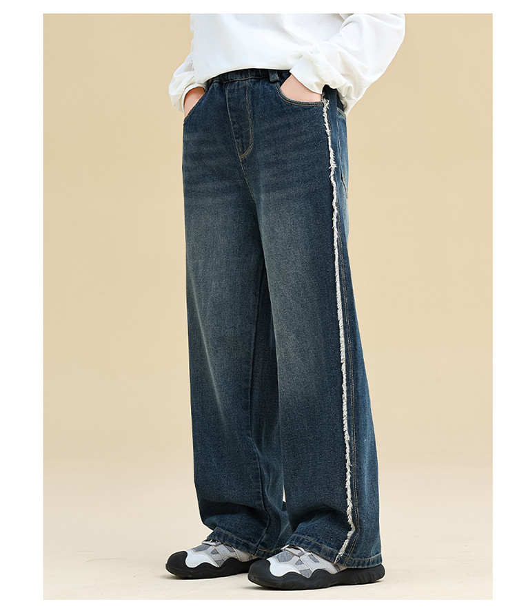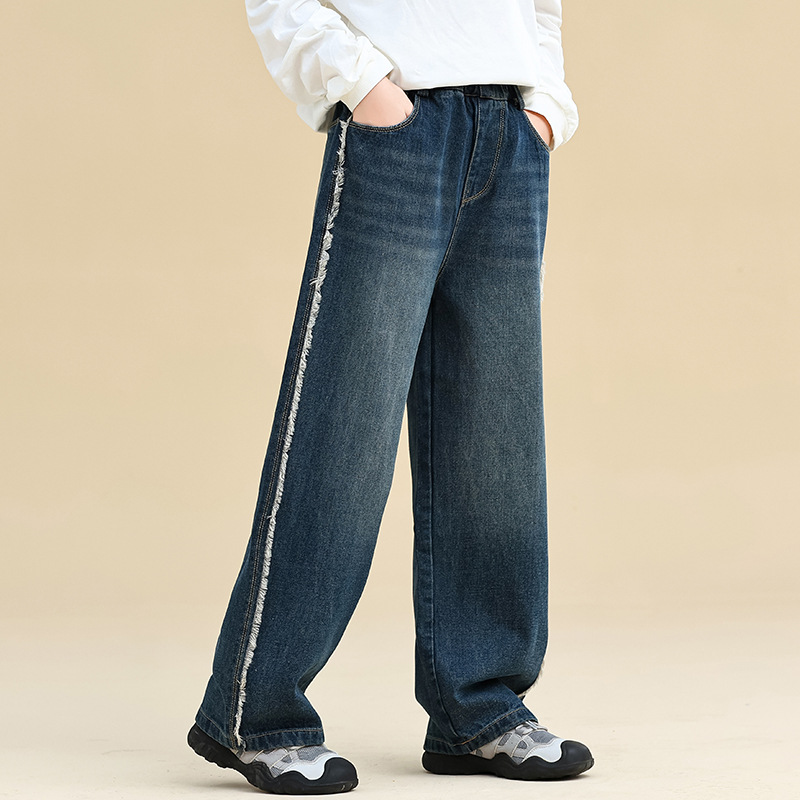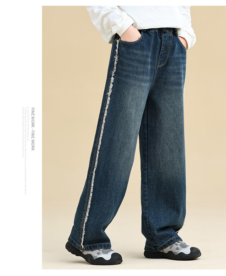 소녀 청바지 2024 봄 가을 새 어린이 한국 스타일 랩 바지 큰 어린이 스트레이트 바지 기모 겨울스토어 가기