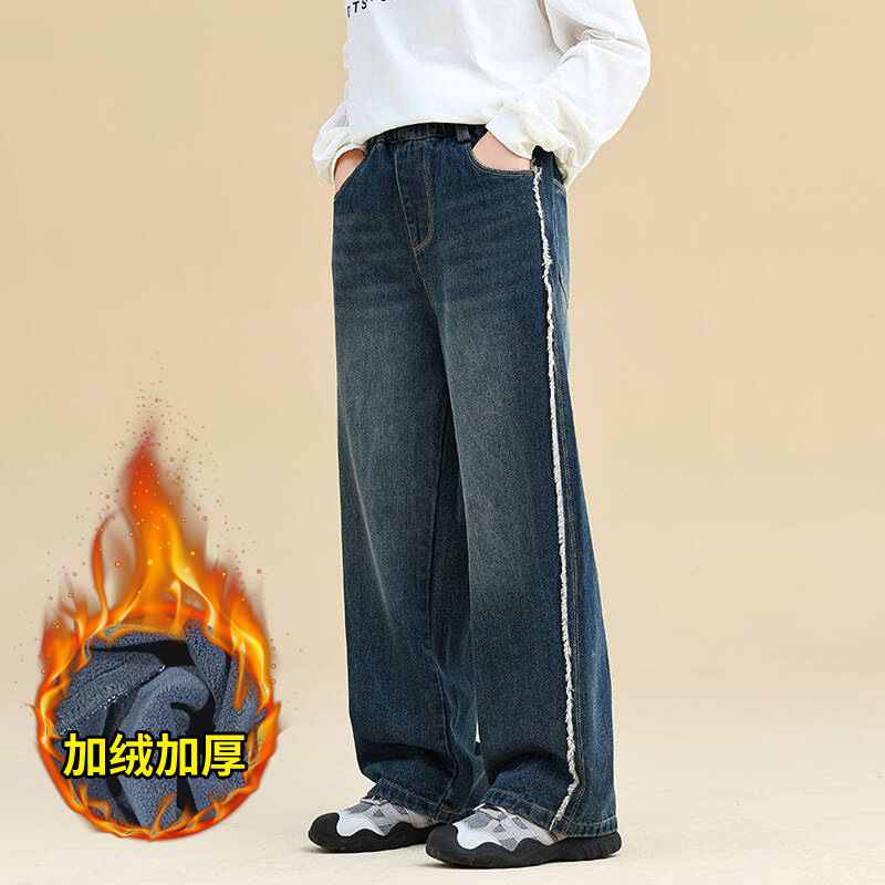 소녀 청바지 2024 봄 가을 새 어린이 한국 스타일 랩 바지 큰 어린이 스트레이트 바지 기모 겨울