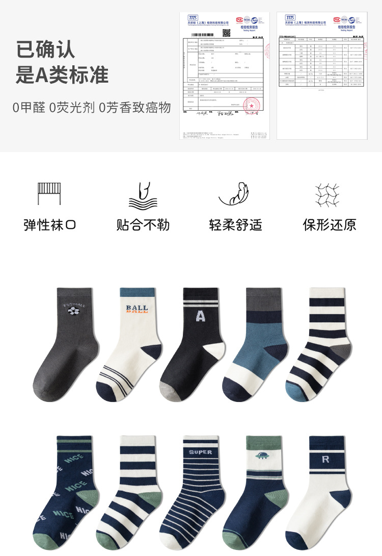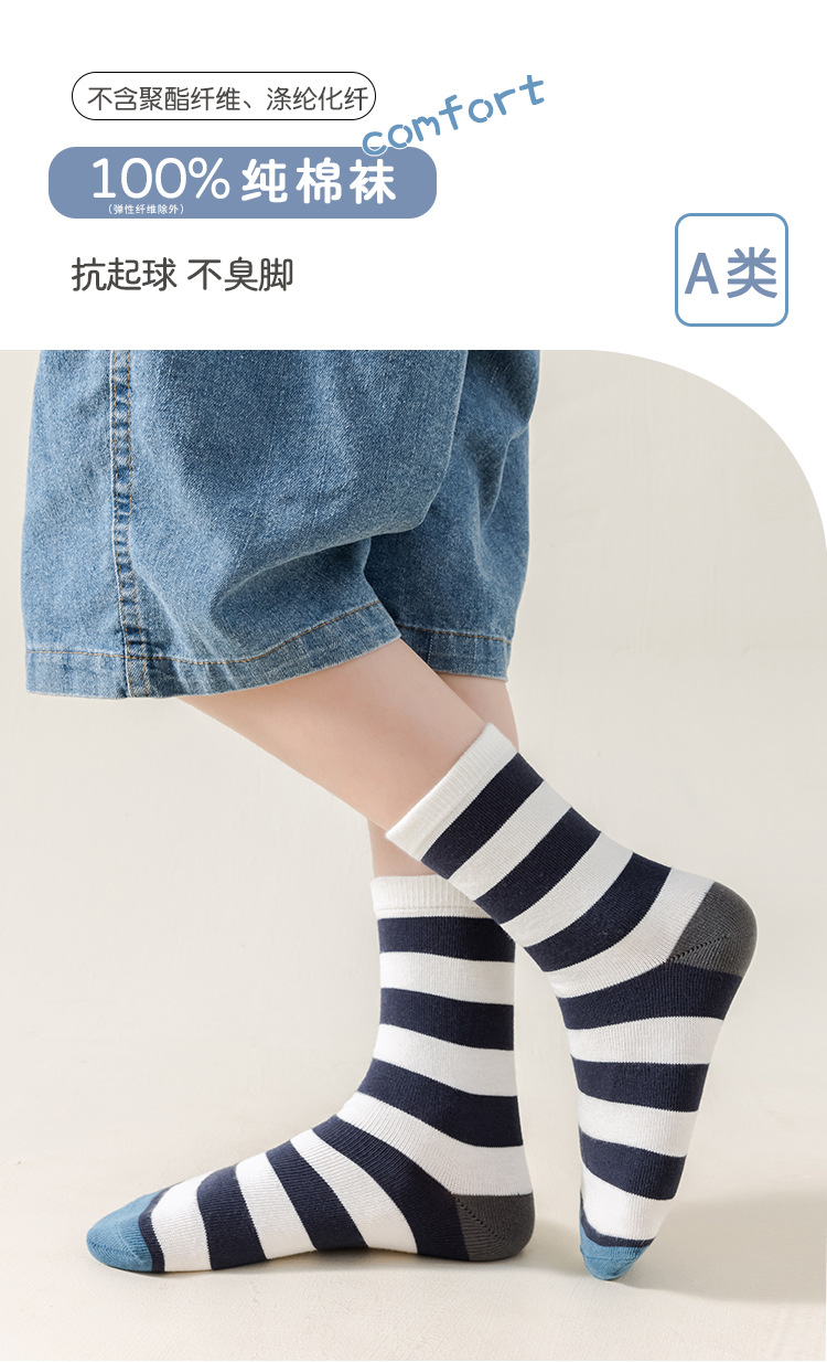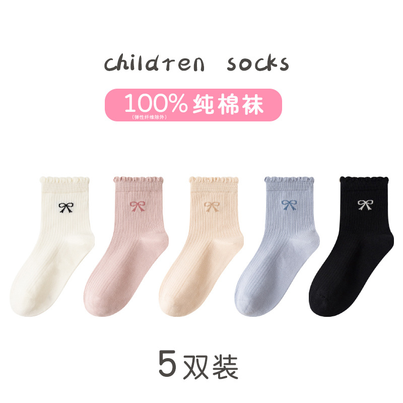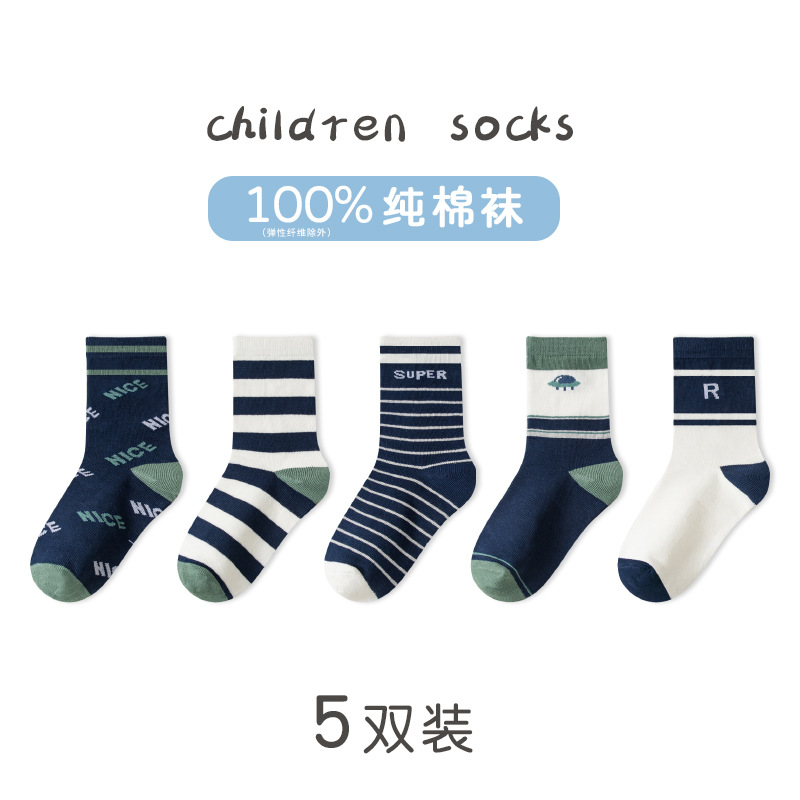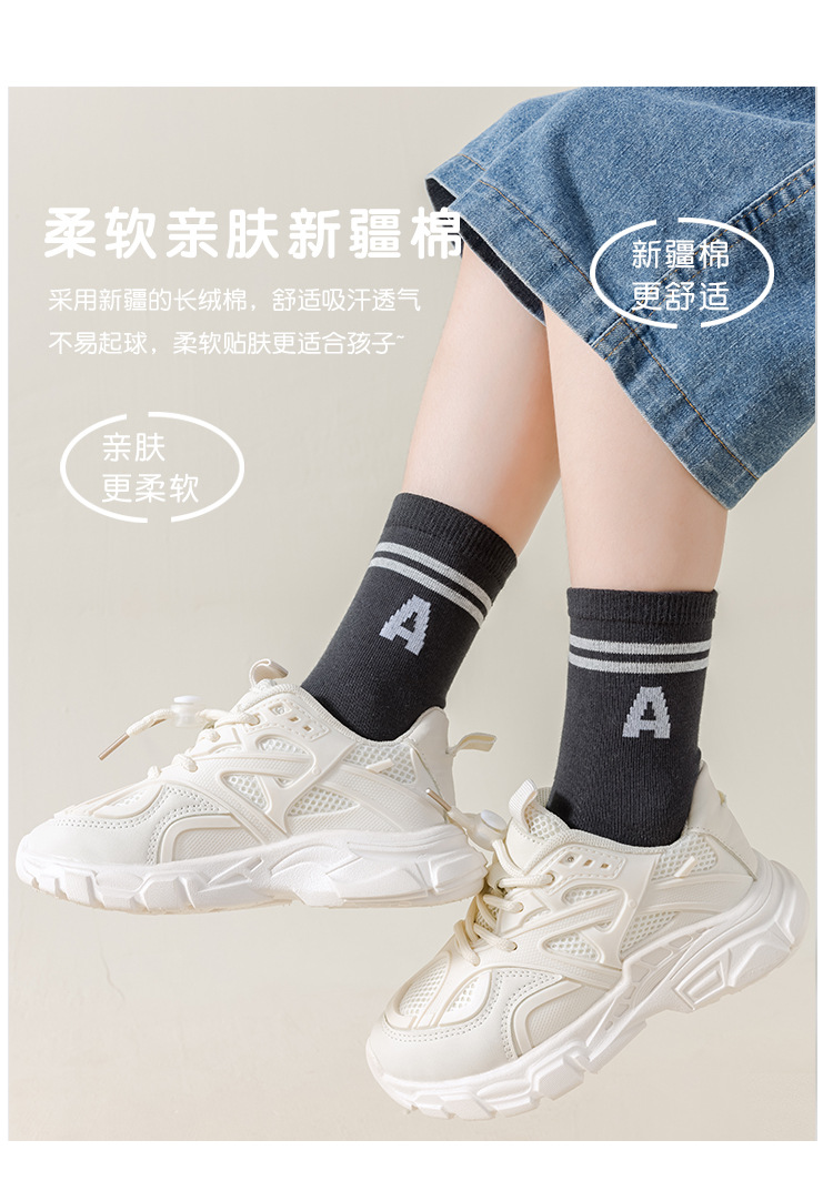 100% 순수 면 어린이 풋 업 양말 봄 가을 겨울 소년과 소녀 중형 튜브 통기성 땀 흡수 학생 중학교 어린이 순면