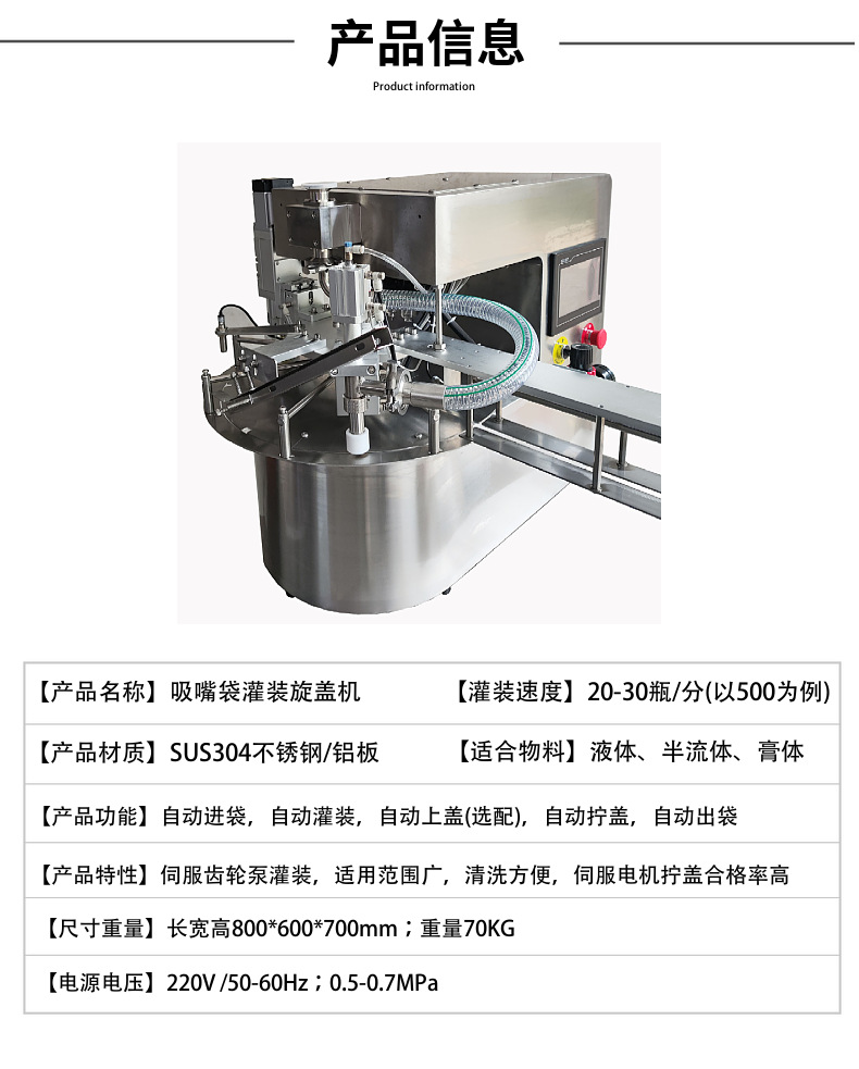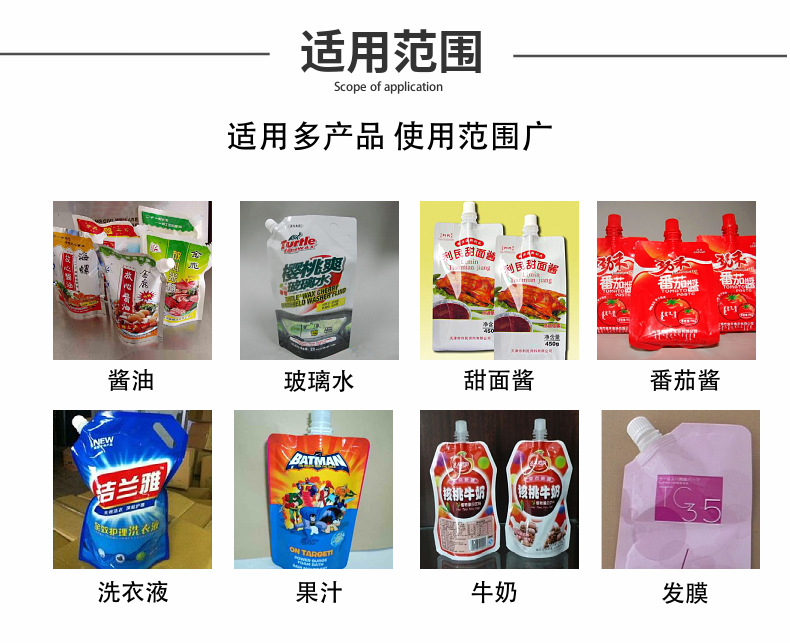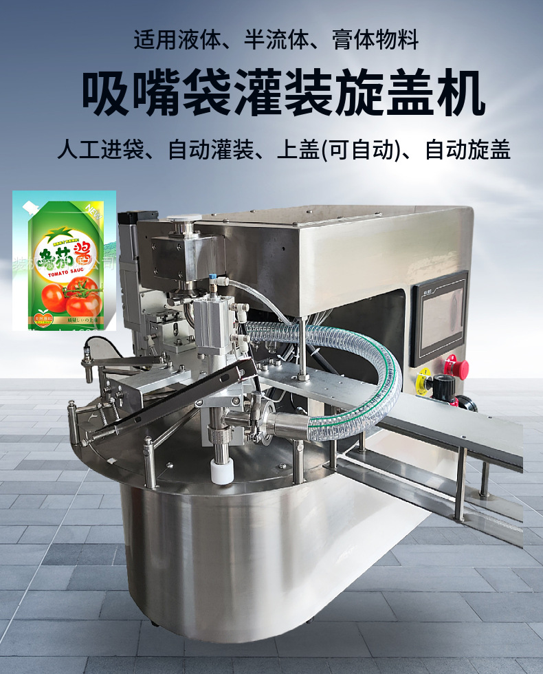 완전 자동 액체 페이스트 음료 젤리 두유 타이어 수리 액체 세탁 세제 자립형 노즐 백 충전 및 캡핑 기계