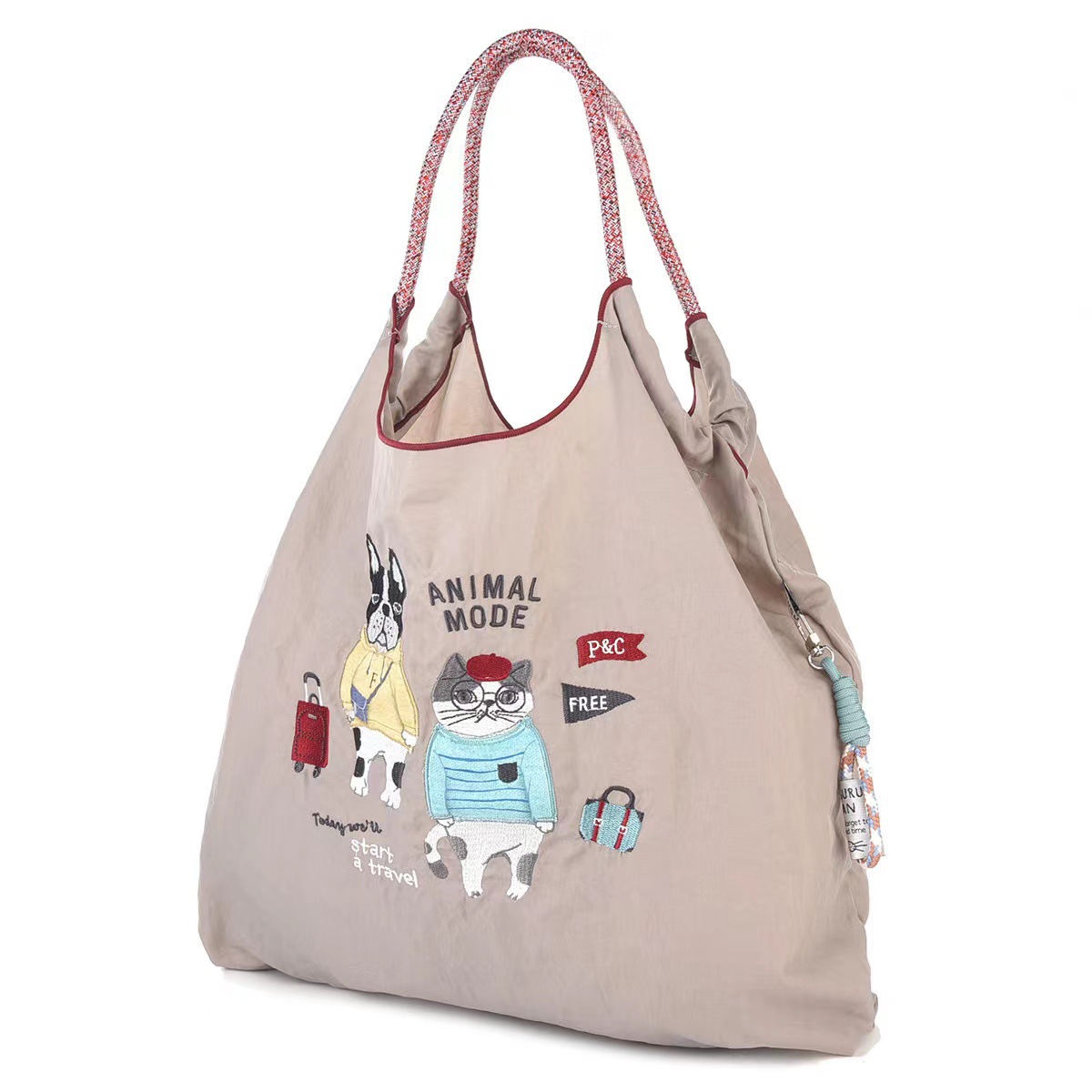 일본 kusuguru 중공업 수놓은 고양이 어깨 가방 핸드백 핸드백 쇼핑백 나일론 가방 219