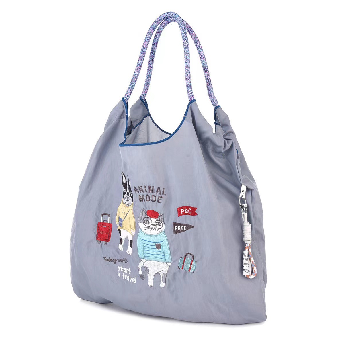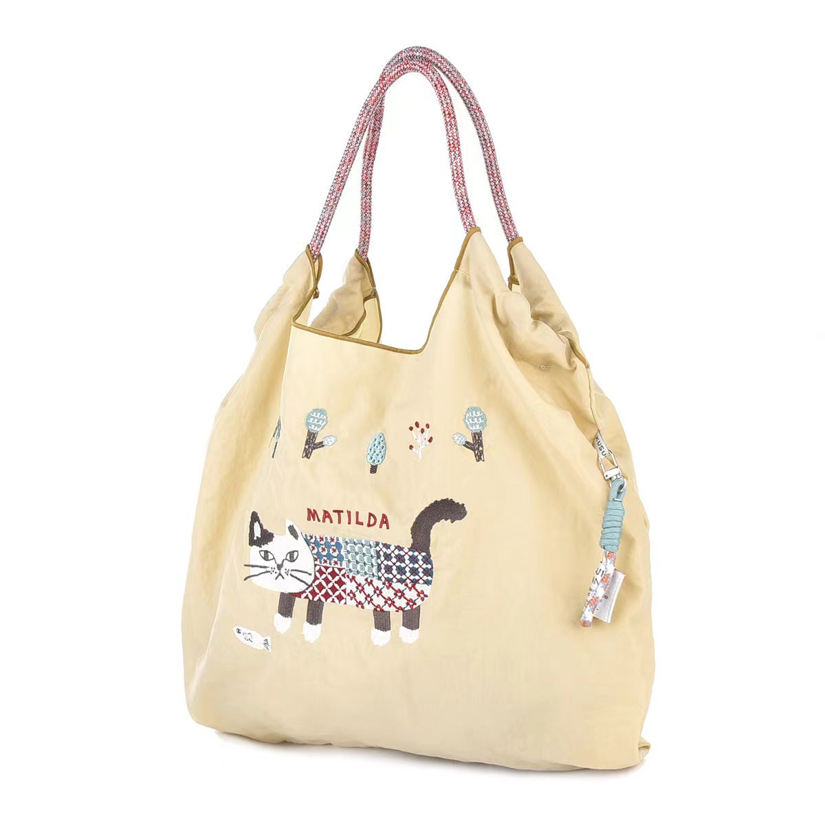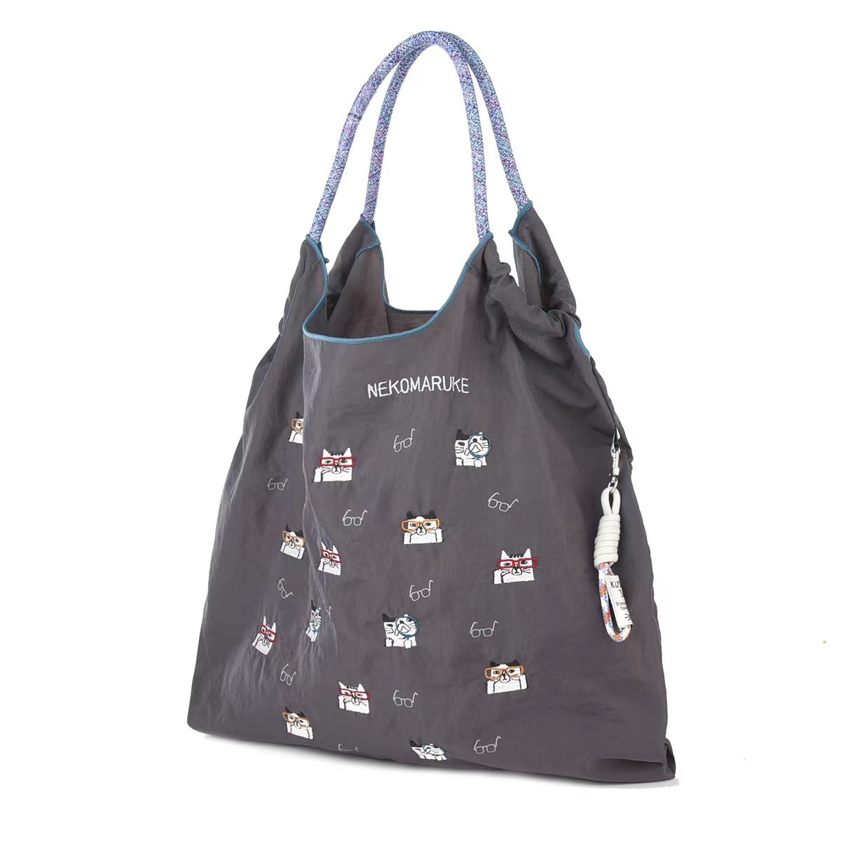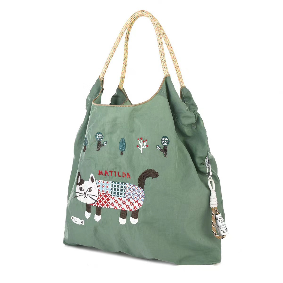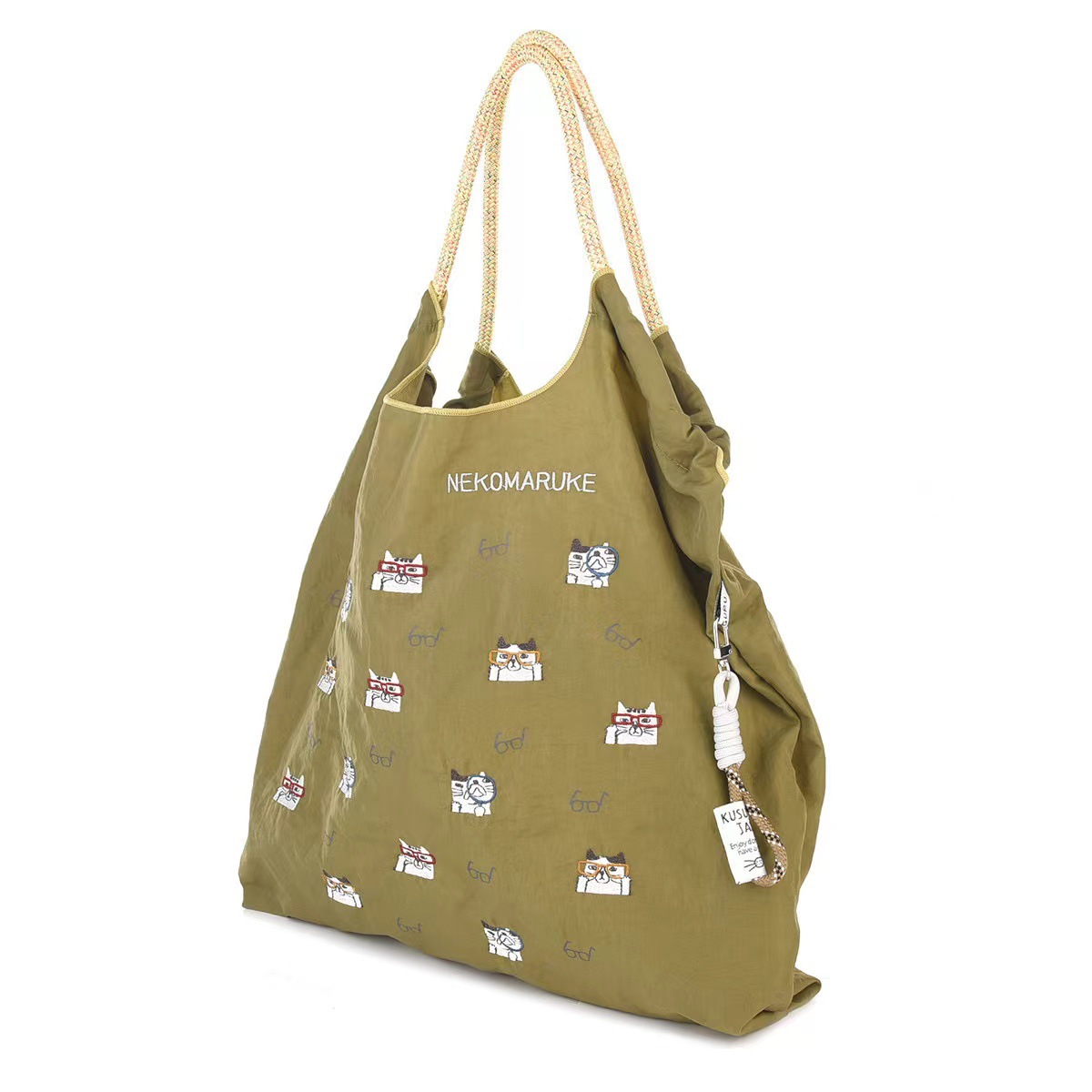 일본 kusuguru 중공업 수놓은 고양이 어깨 가방 핸드백 핸드백 쇼핑백 나일론 가방 219스토어 가기