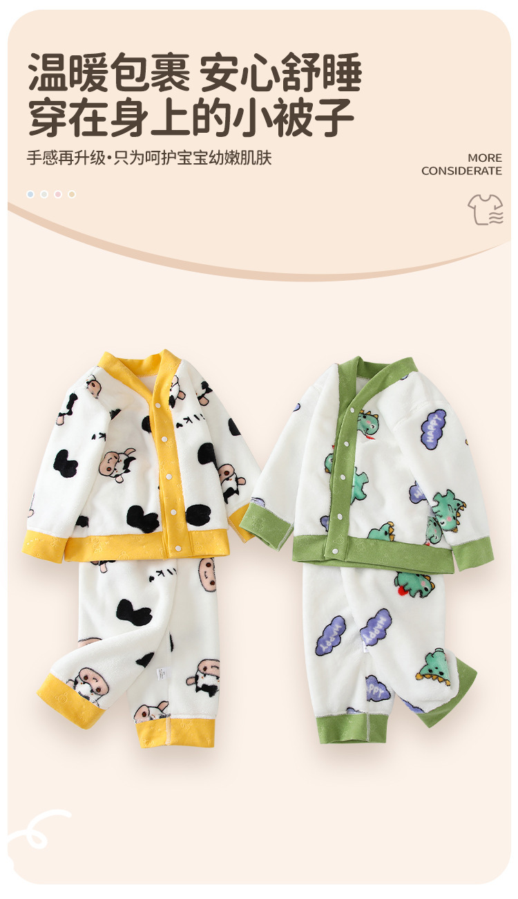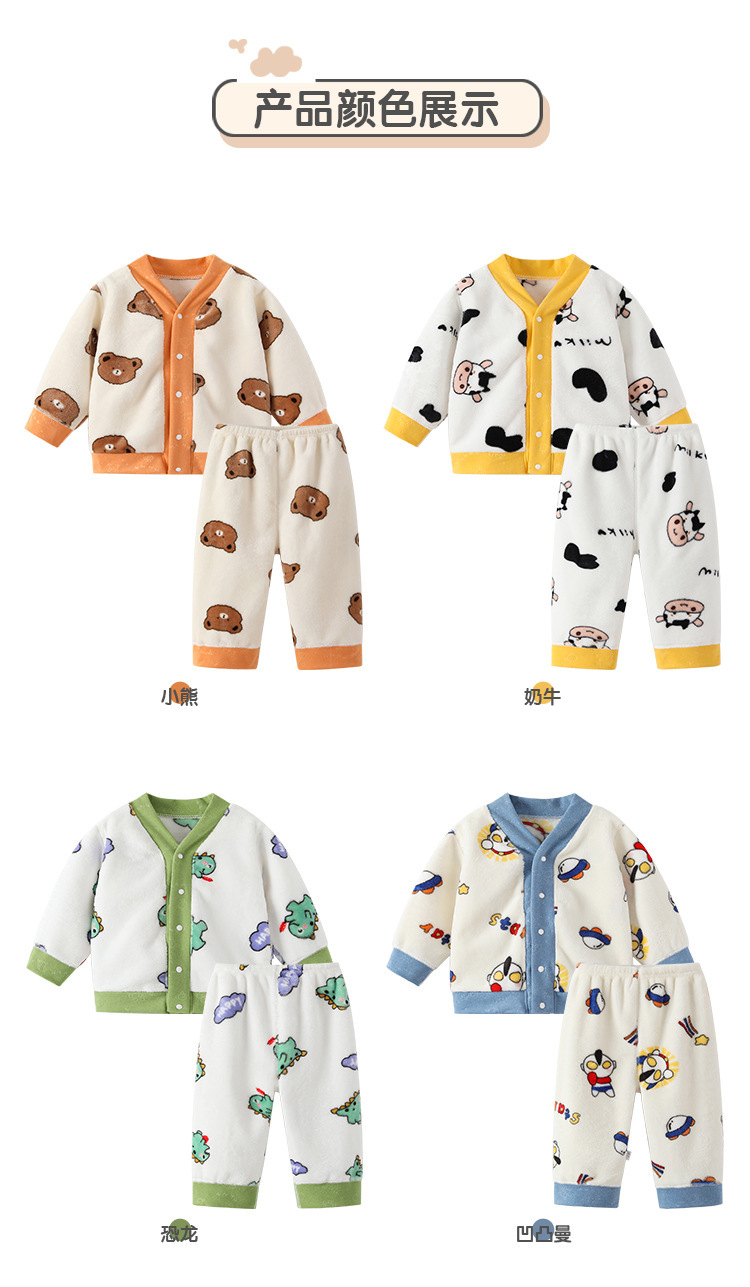 어린이 잠옷 플란넬 세트 홈 옷 따뜻한 가을과 겨울 소녀 소년의 유아용 두꺼운 아기 기모 옷스토어 가기