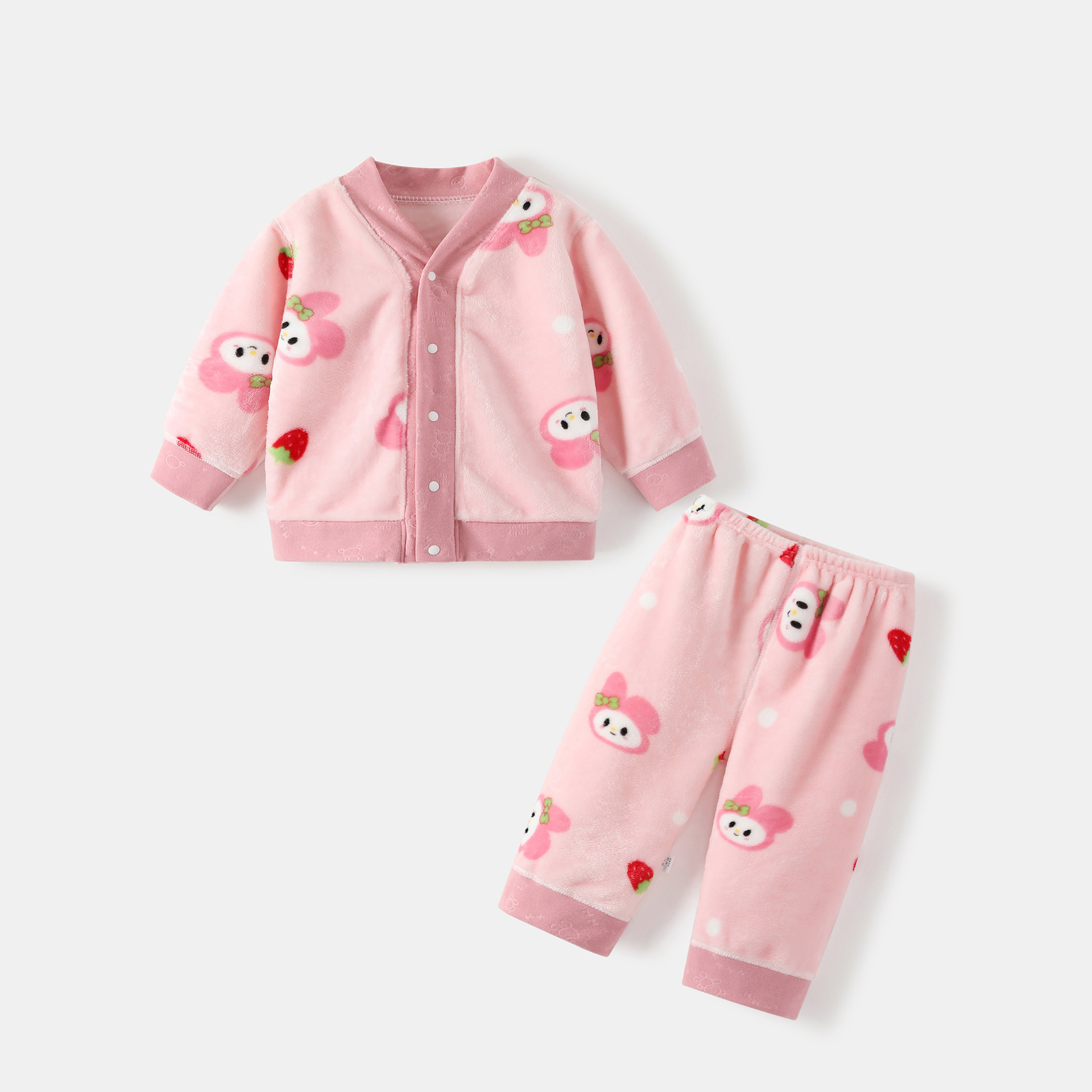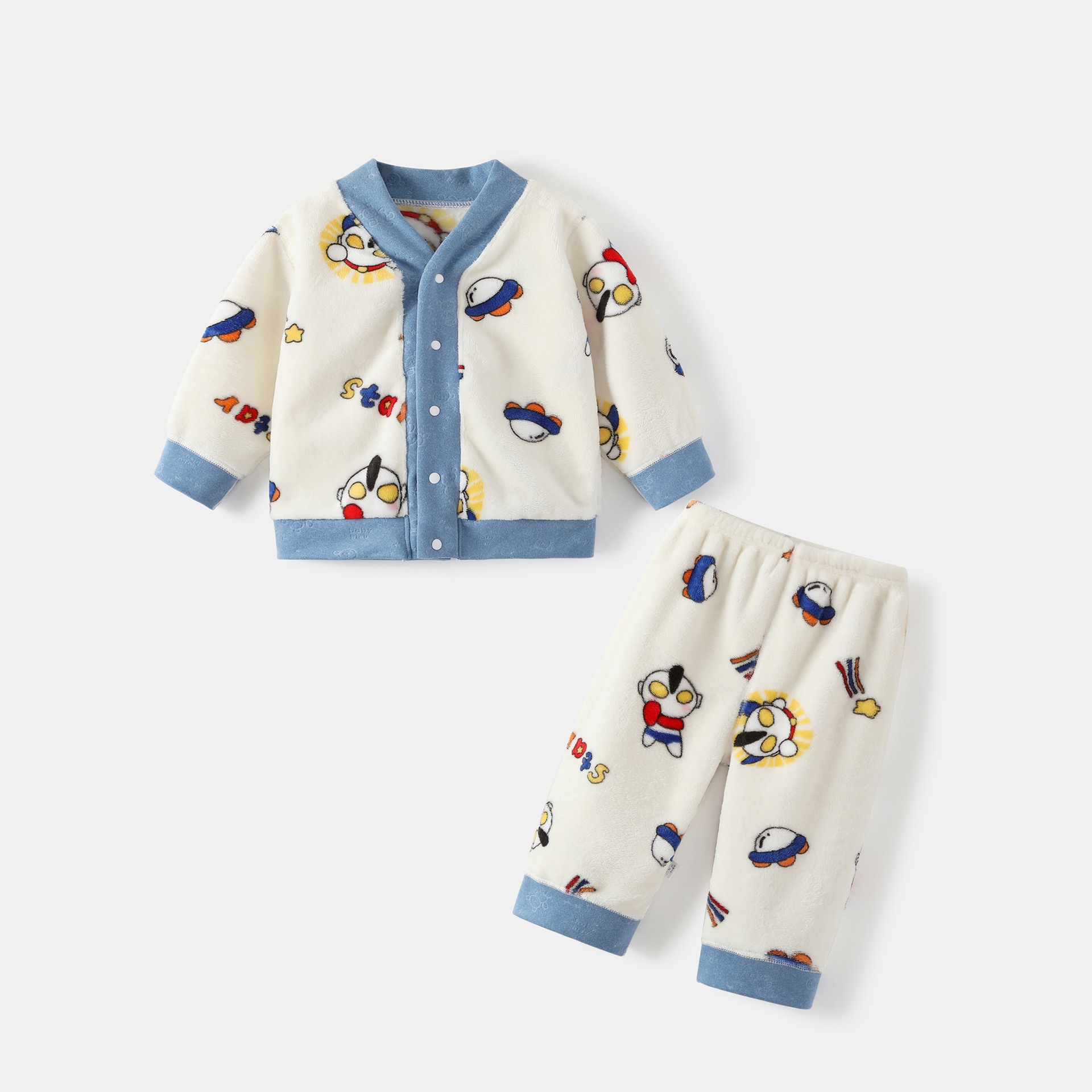 어린이 잠옷 플란넬 세트 홈 옷 따뜻한 가을과 겨울 소녀 소년의 유아용 두꺼운 아기 기모 옷
