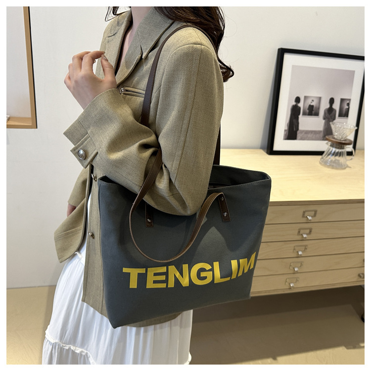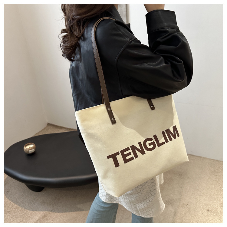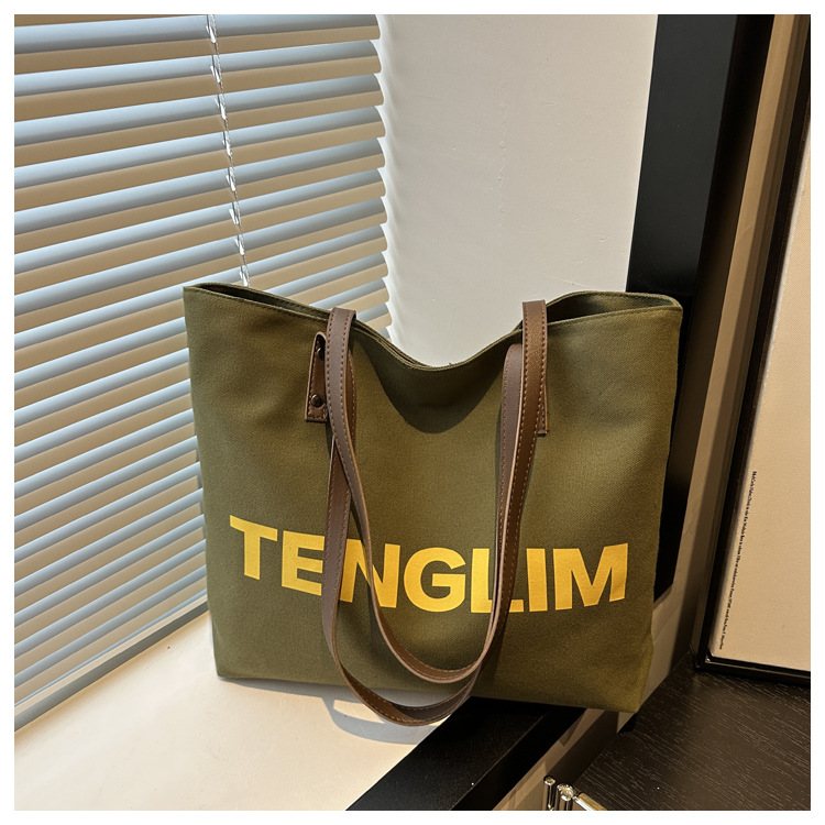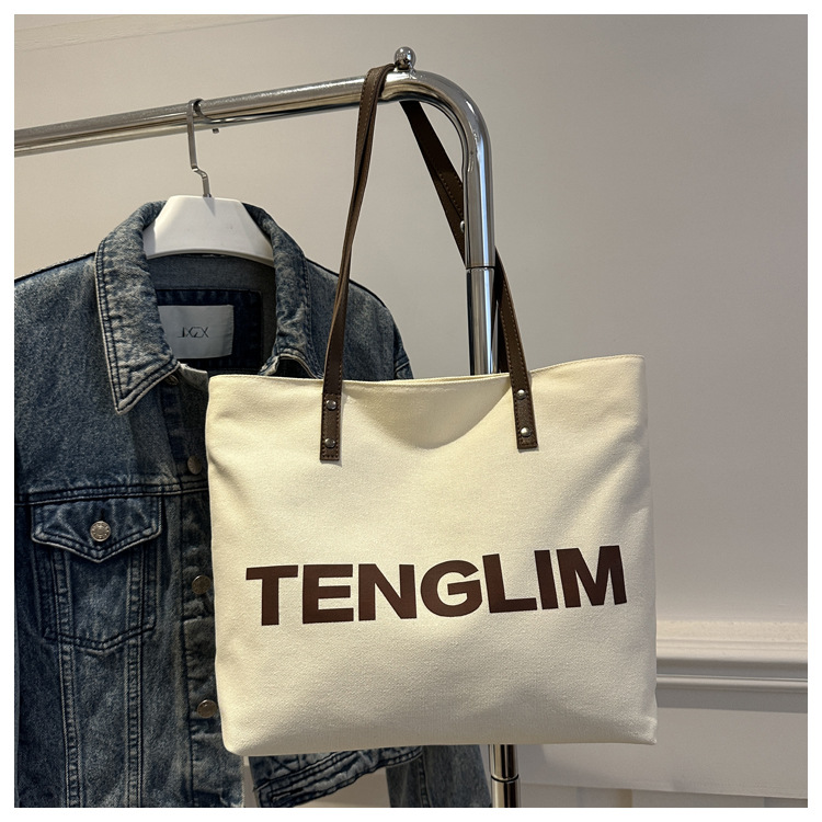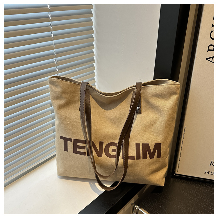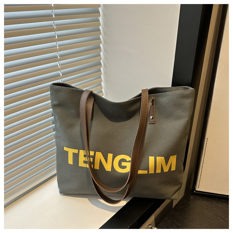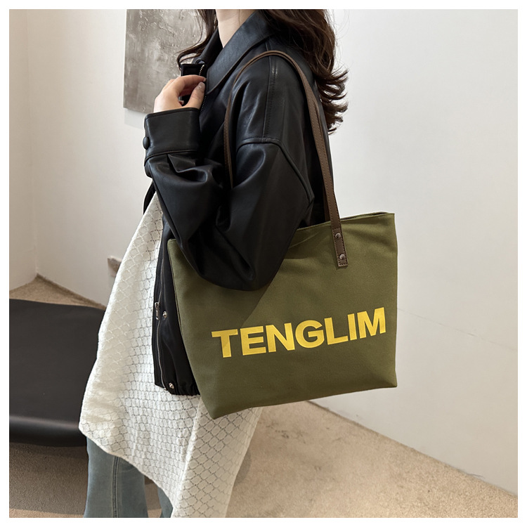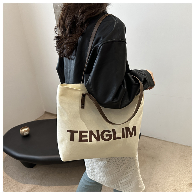 인쇄 된 편지 대용량 캔버스 2024 가을 새로운 캐주얼 간단한 서양 스타일 어깨 언더 암 토트 백스토어 가기