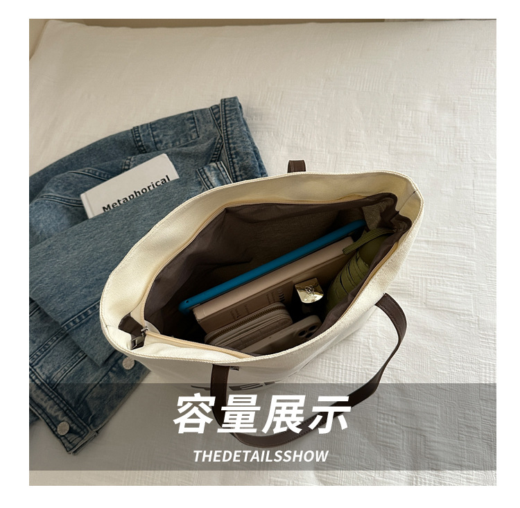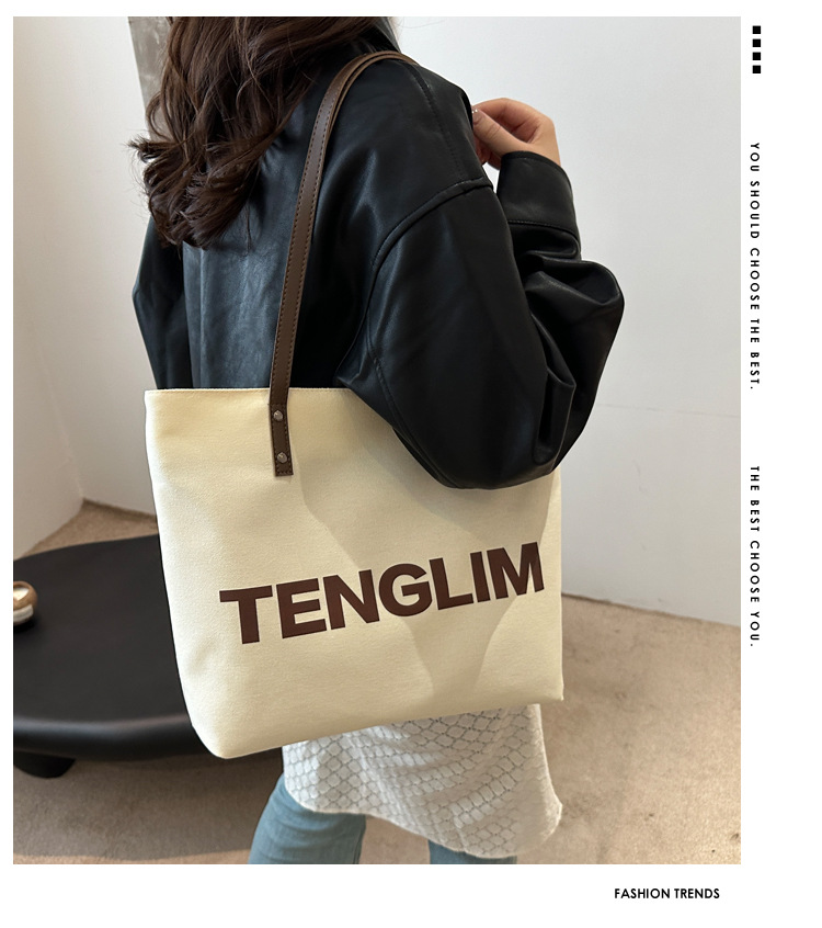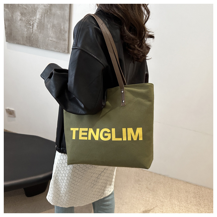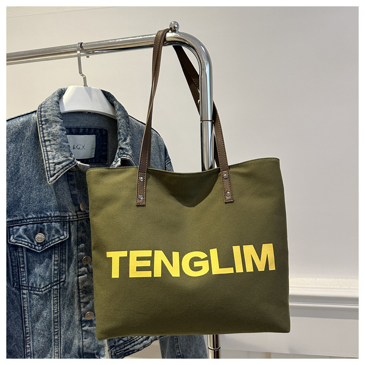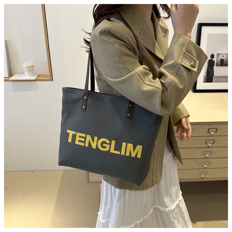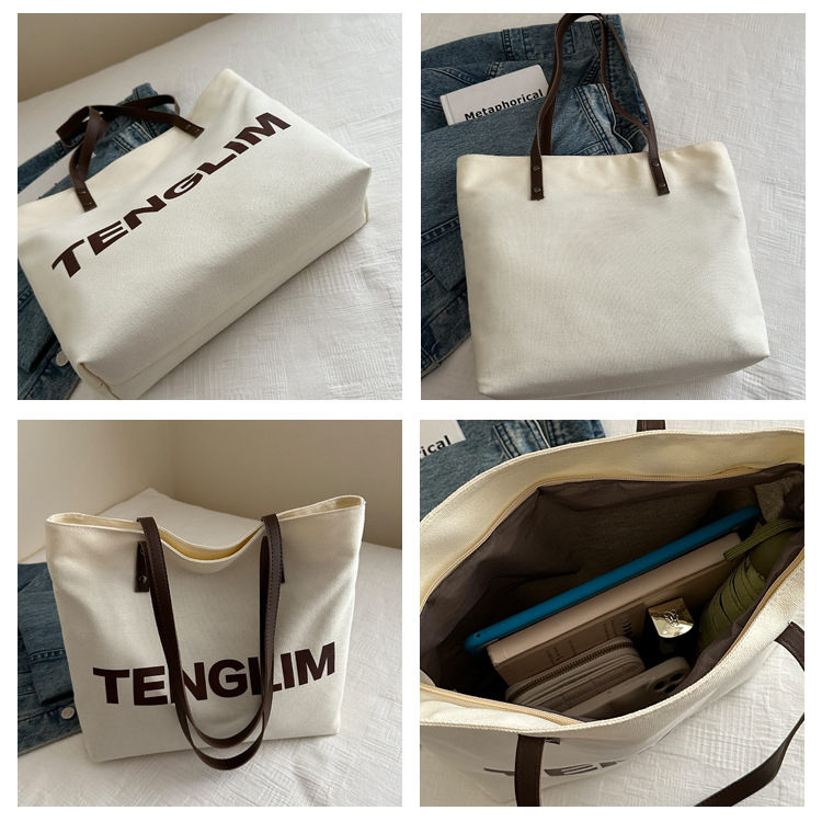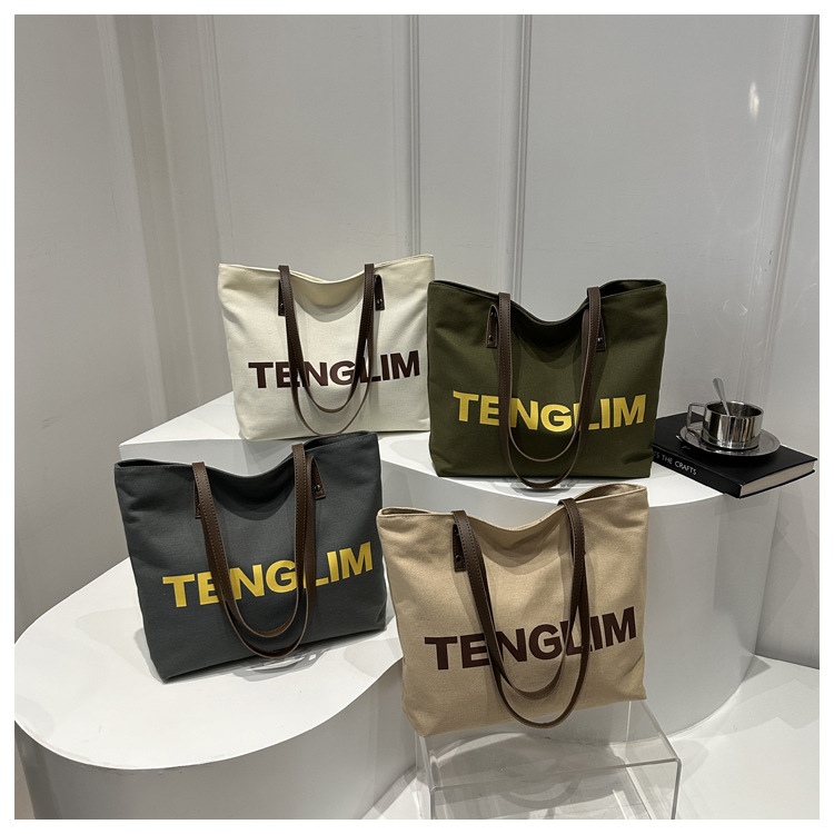인쇄 된 편지 대용량 캔버스 2024 가을 새로운 캐주얼 간단한 서양 스타일 어깨 언더 암 토트 백스토어 가기
