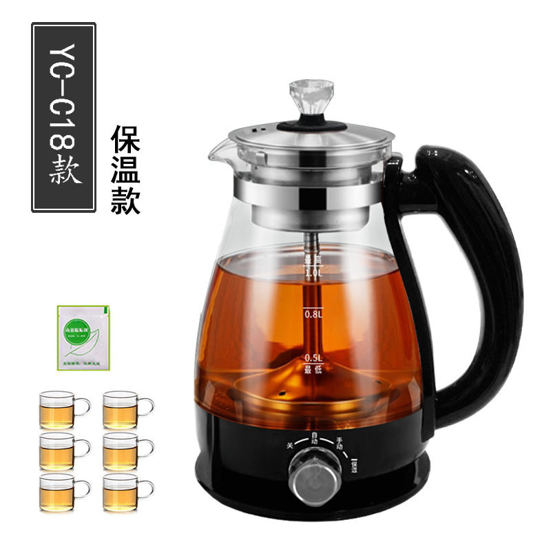 사무실 차 메이커 가정용 다기능 증기 주전자 홍차 김이 나는 차 메이커 건강 냄비 유리 자동