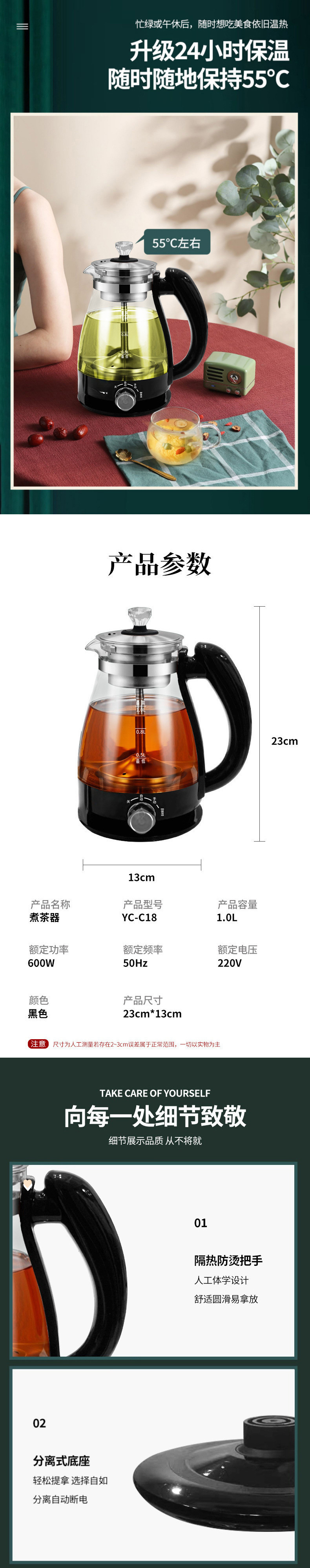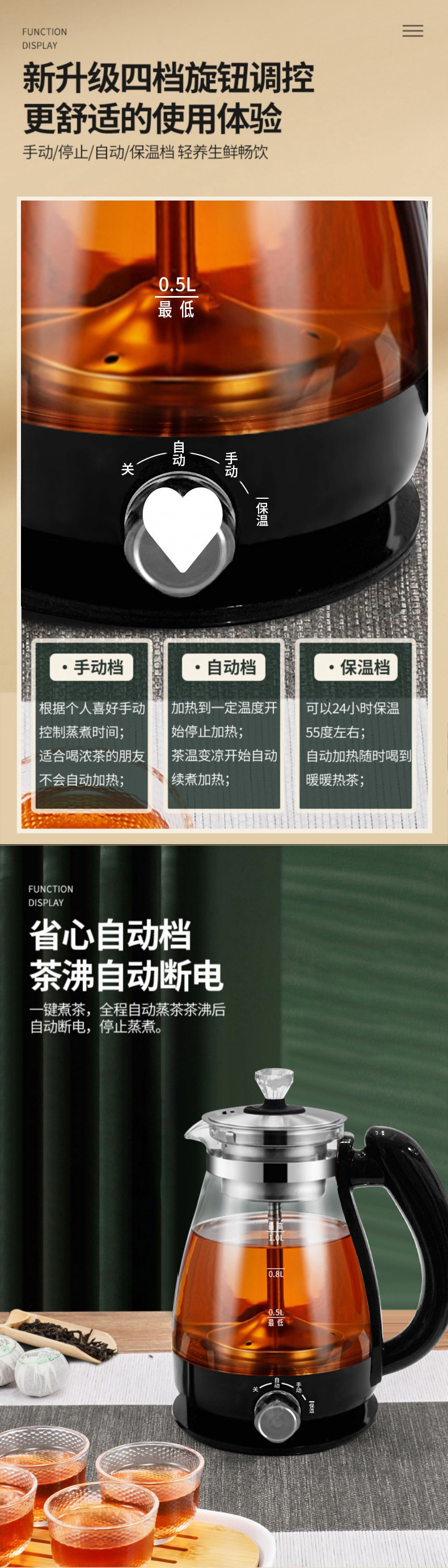 사무실 차 메이커 가정용 다기능 증기 주전자 홍차 김이 나는 차 메이커 건강 냄비 유리 자동스토어 가기