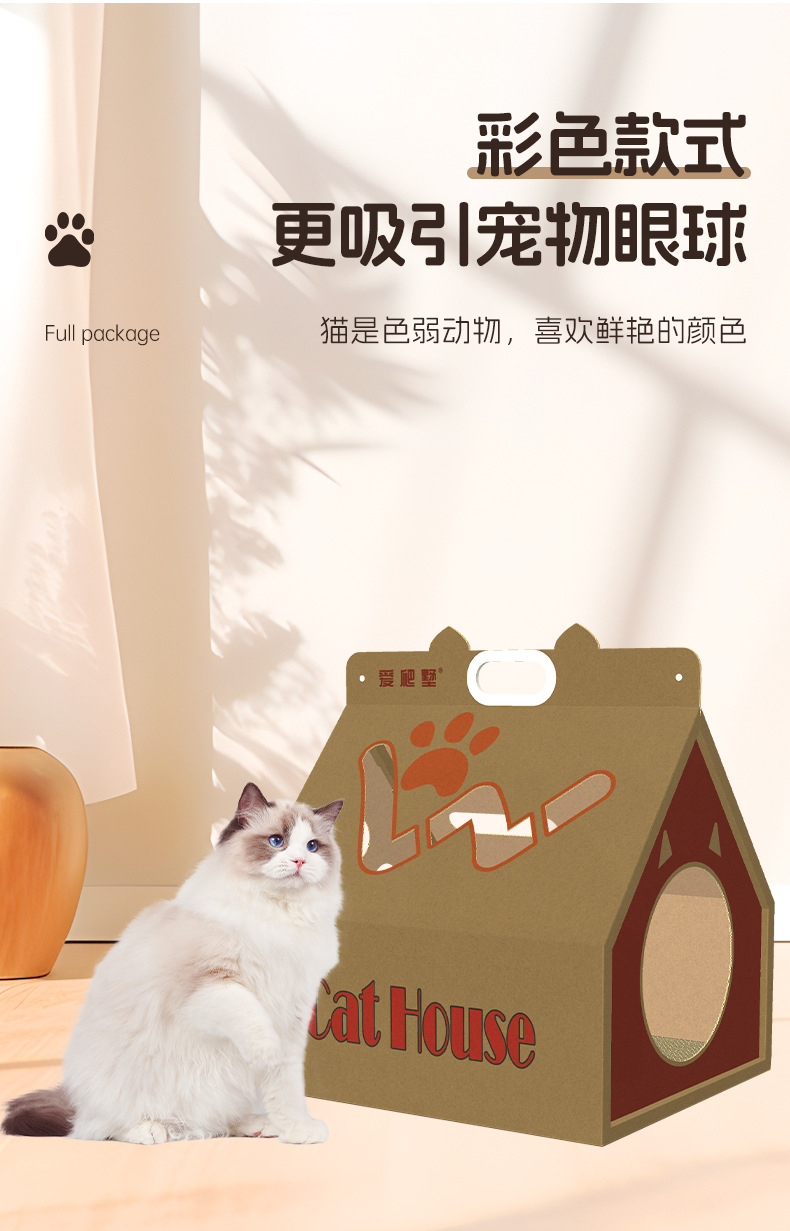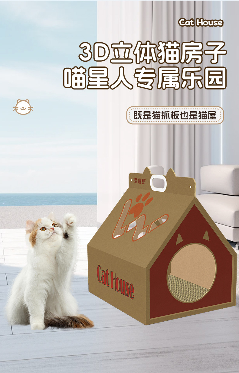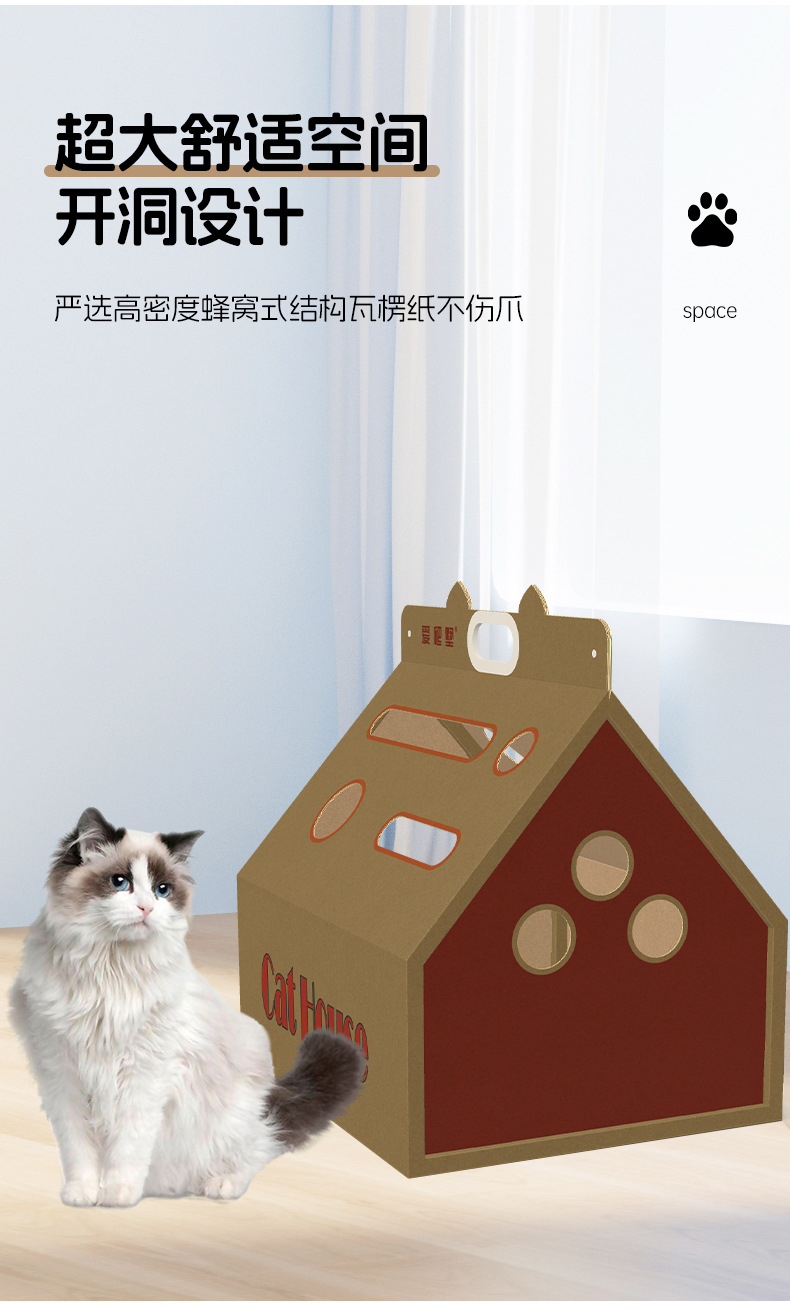 새로운 고양이 집, 만능 종이상자 고양이 집, 고양이 스크래치 보드 일체형 하우스, 골판지 고양이 상자, 고양이 집 도매, 애완 고양이 용품스토어 가기