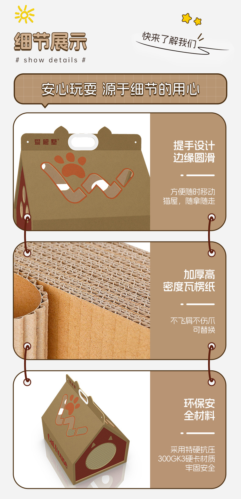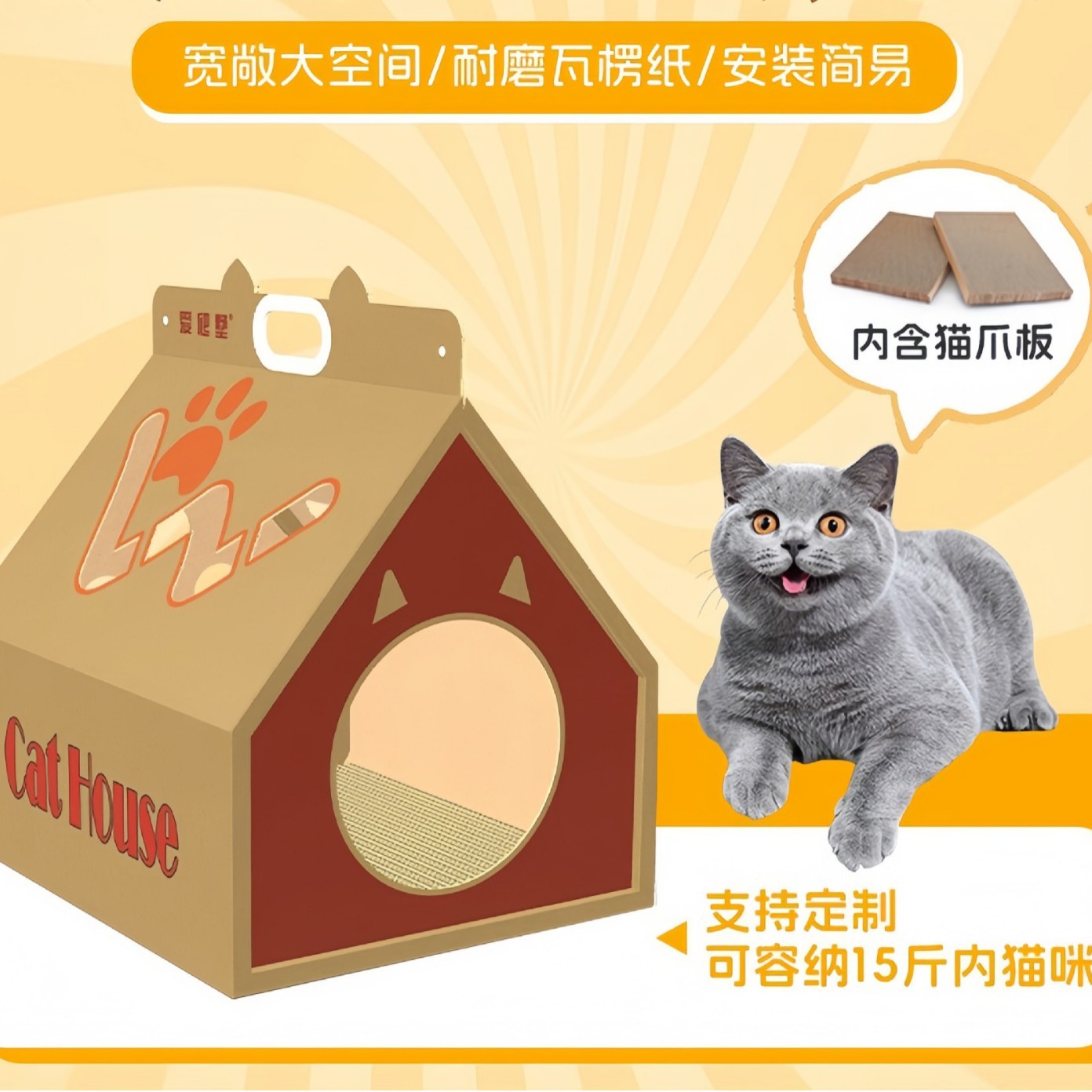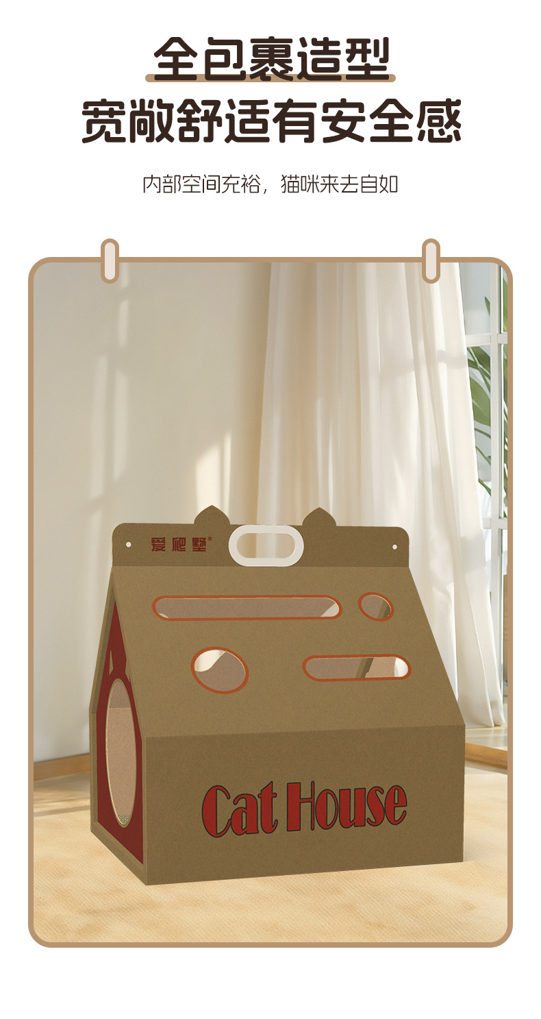 새로운 고양이 집, 만능 종이상자 고양이 집, 고양이 스크래치 보드 일체형 하우스, 골판지 고양이 상자, 고양이 집 도매, 애완 고양이 용품스토어 가기