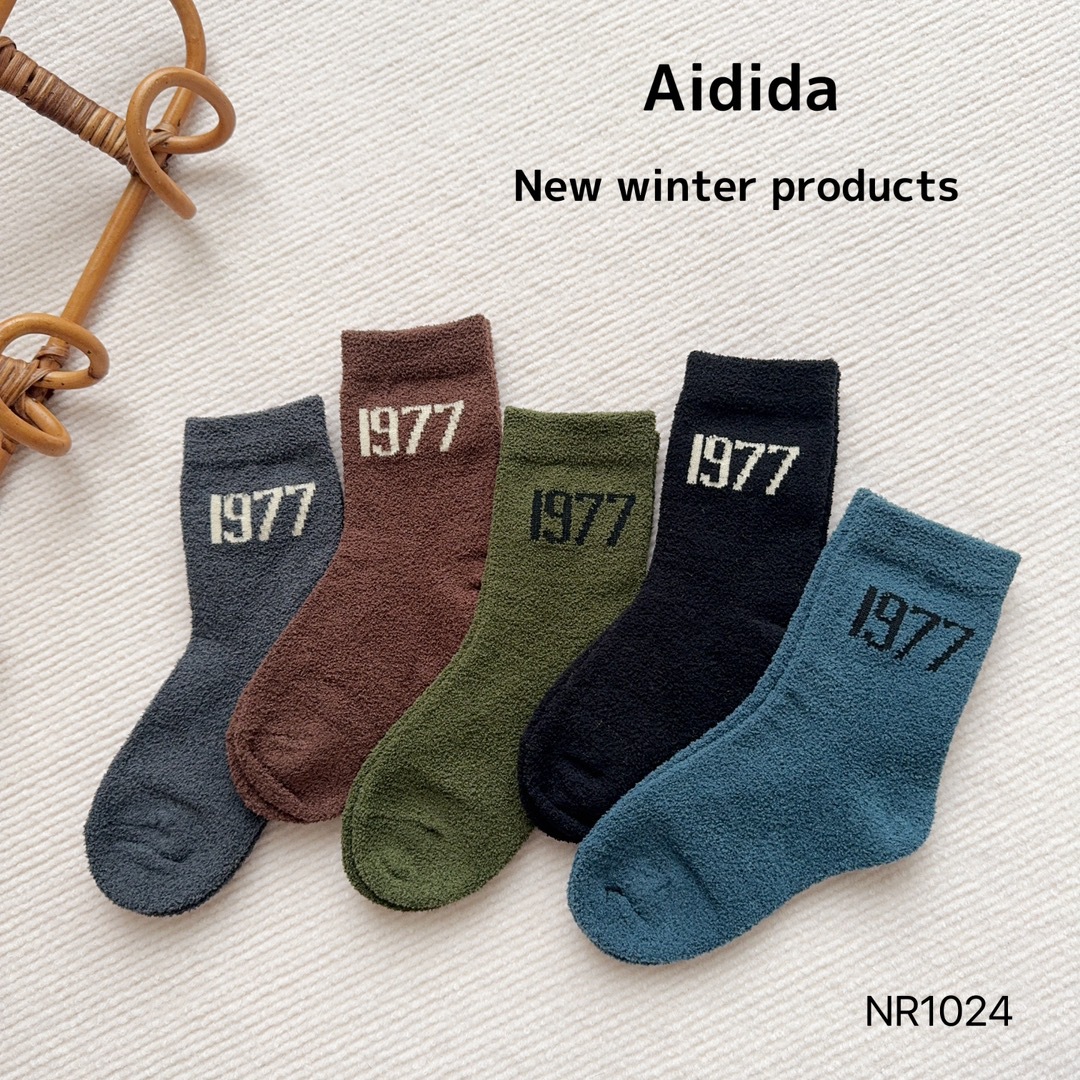 사랑의 진드기 산호 양털 어린이 겨울 스타킹 기모 따뜻한 바닥 양말 패션 1977 소년 소녀 양말