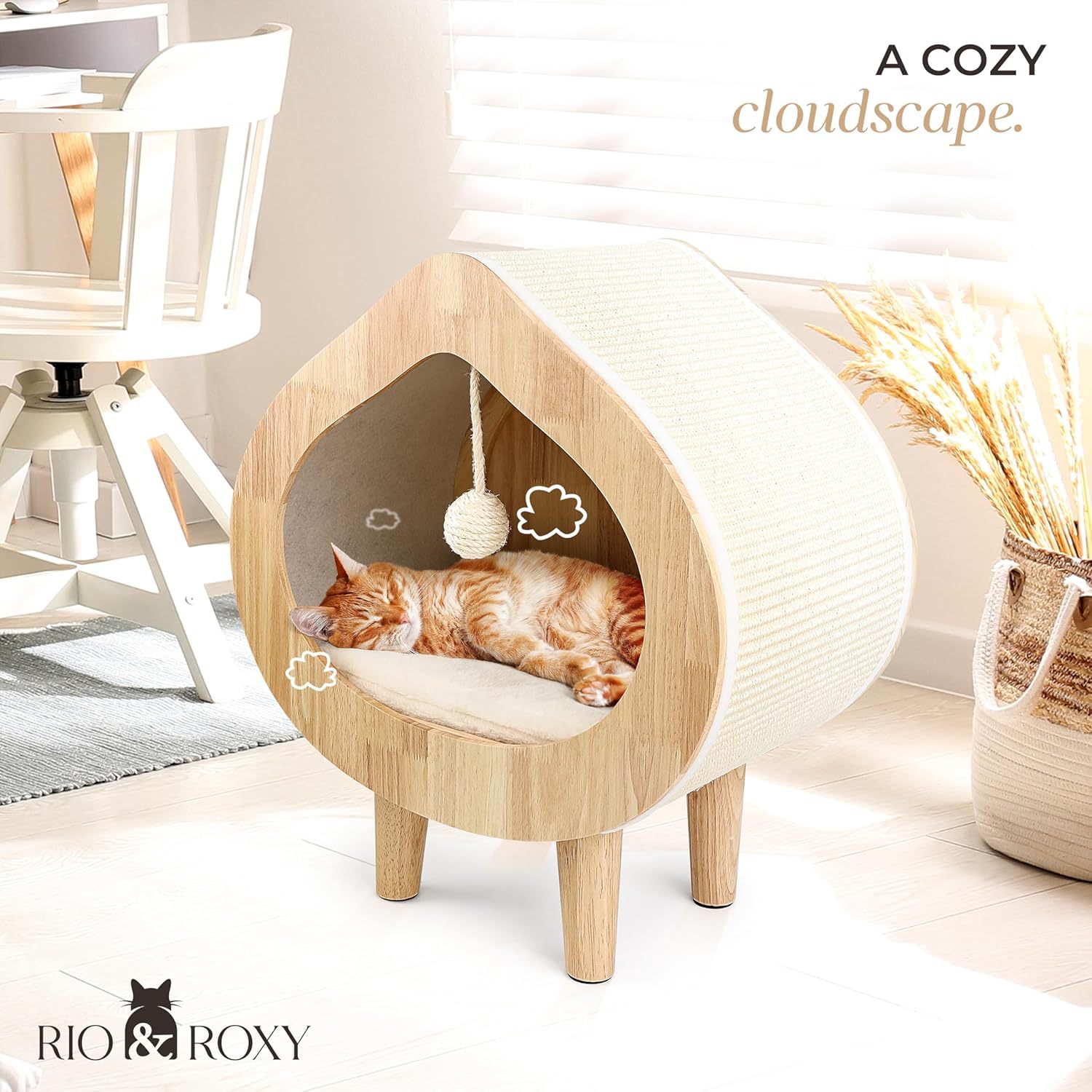 고급 실내 고양이 둥지 현대 나무 애완 동물 고양이 침대 창조적 인 모델링 사계절 유니버설 솔리드 우드 애완 동물 고양이 둥지