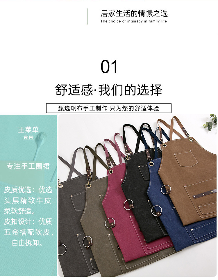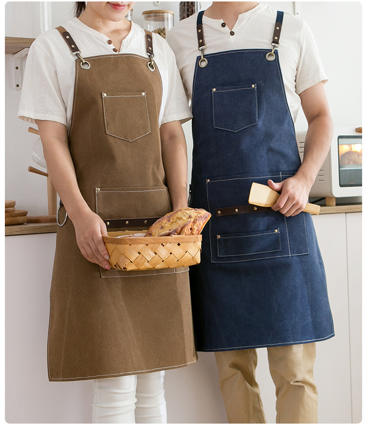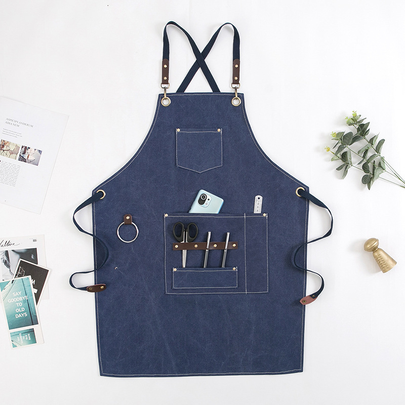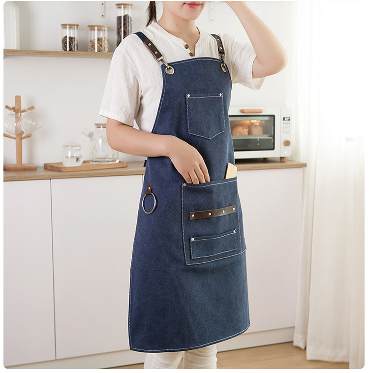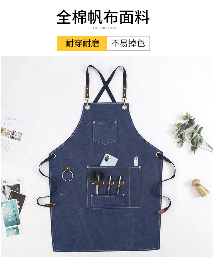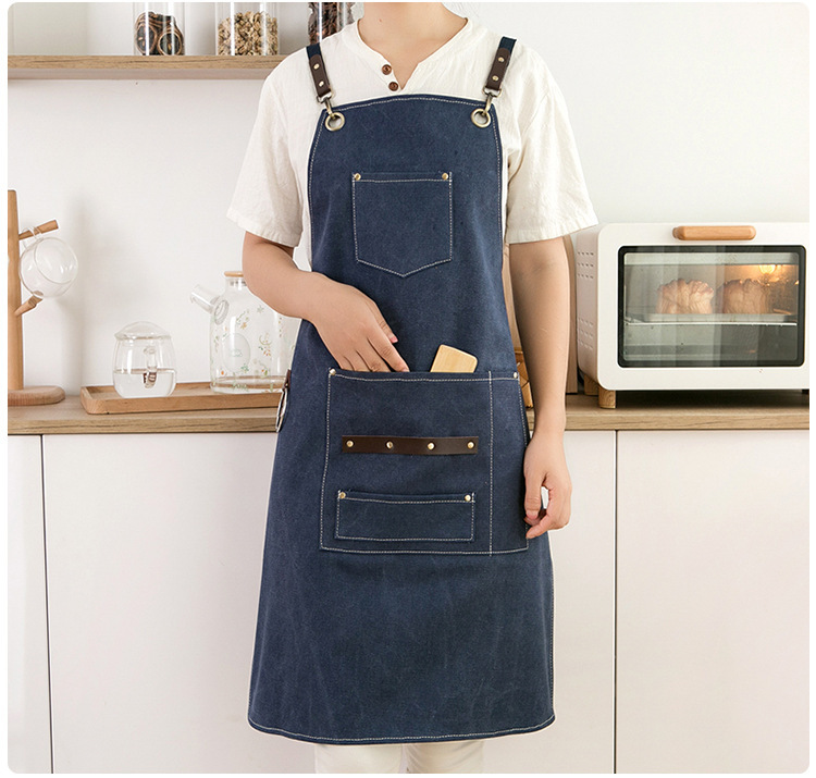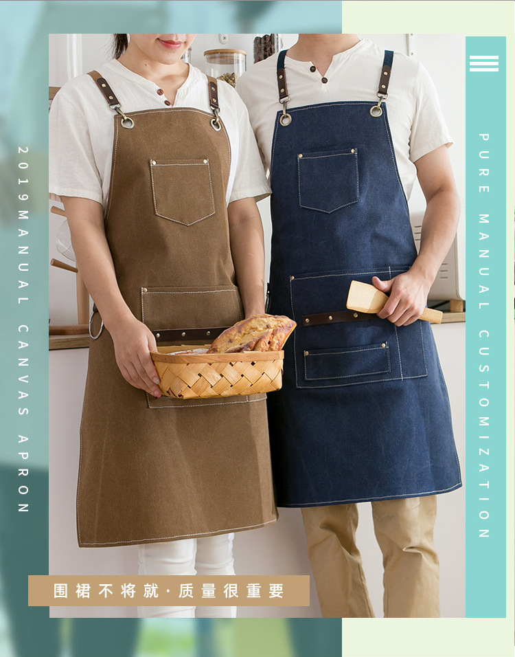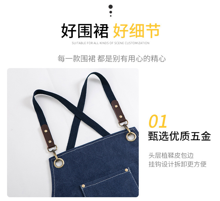 커피 중국 식당 데님 앞치마 꽃 밀크 티 베이킹 샵 작업 옷 일본 로고 인쇄 남녀 앞치마
