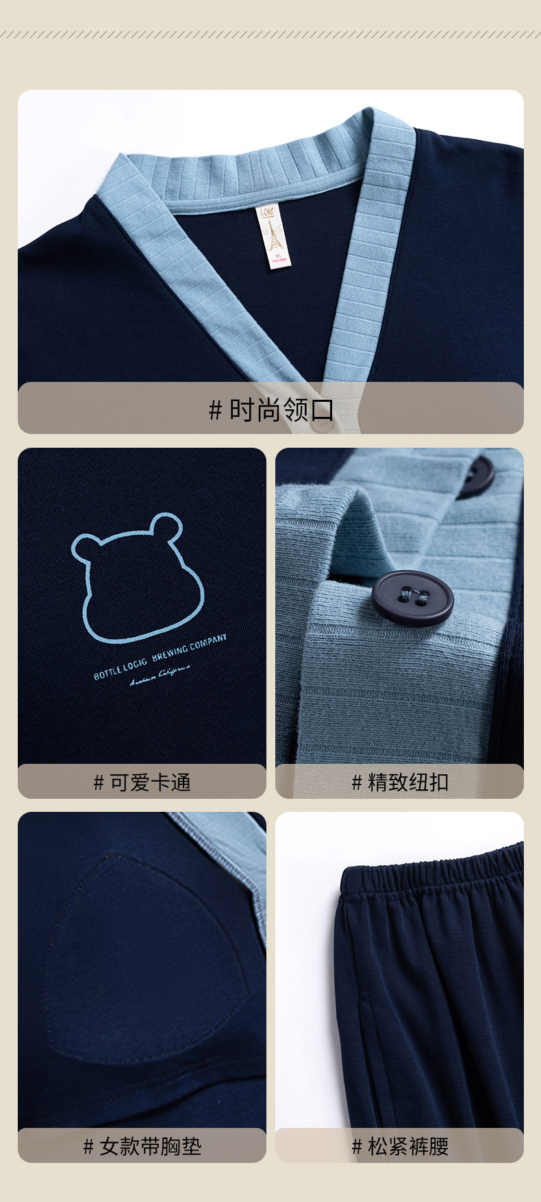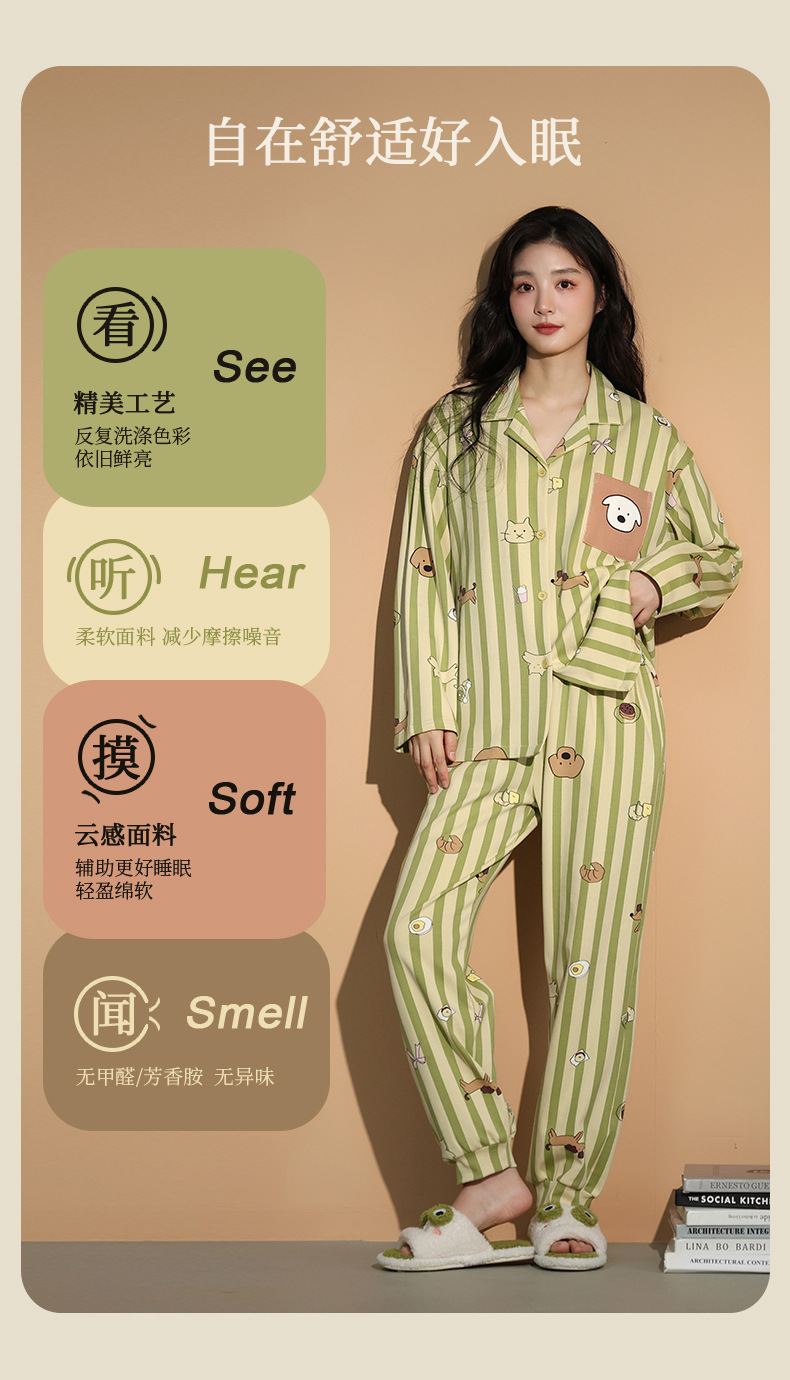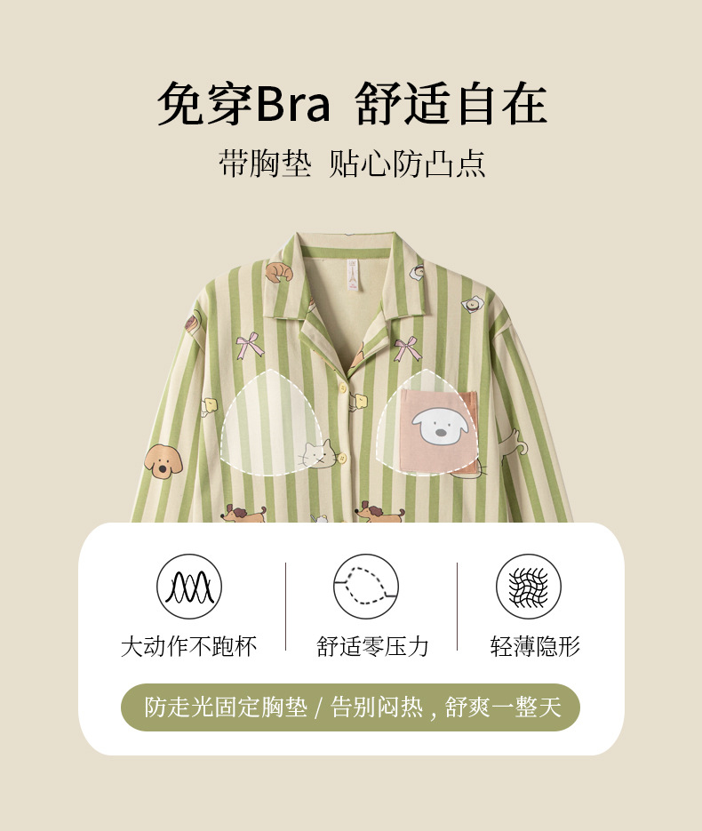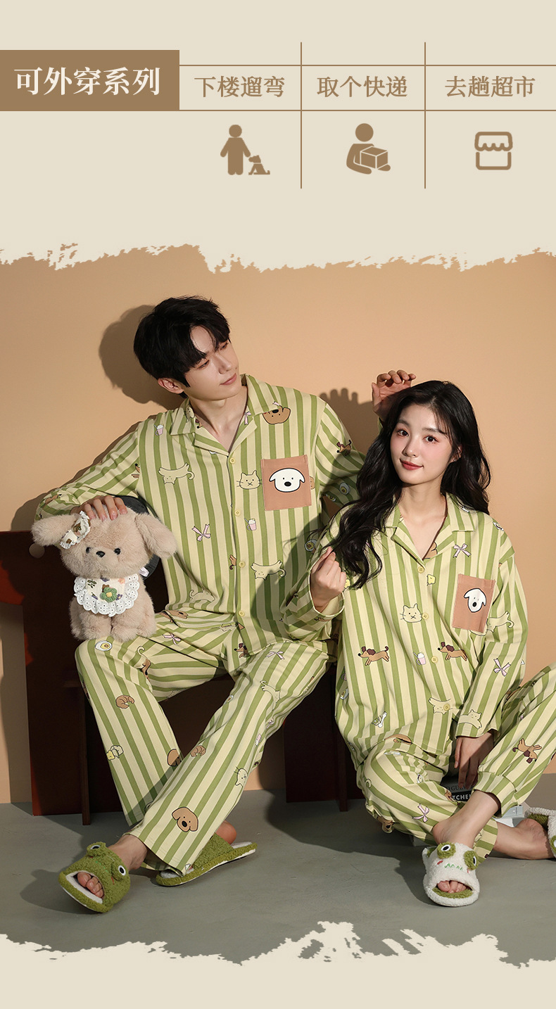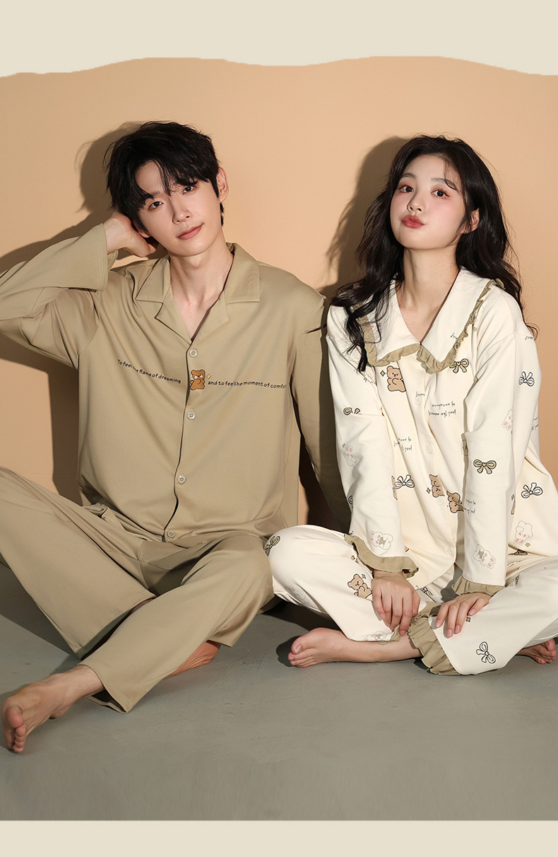 가을 패션 퓨어 코튼 커플 파자마 여성 가슴 패드 긴 소매 만화 인쇄 캐주얼 카디건 남성 홈 의류 세트스토어 가기