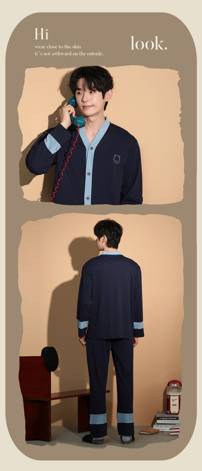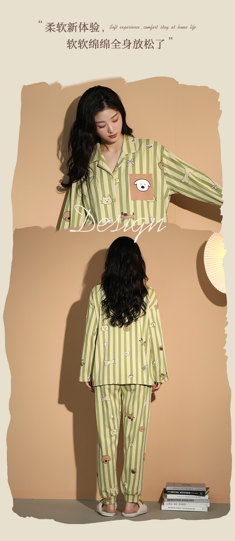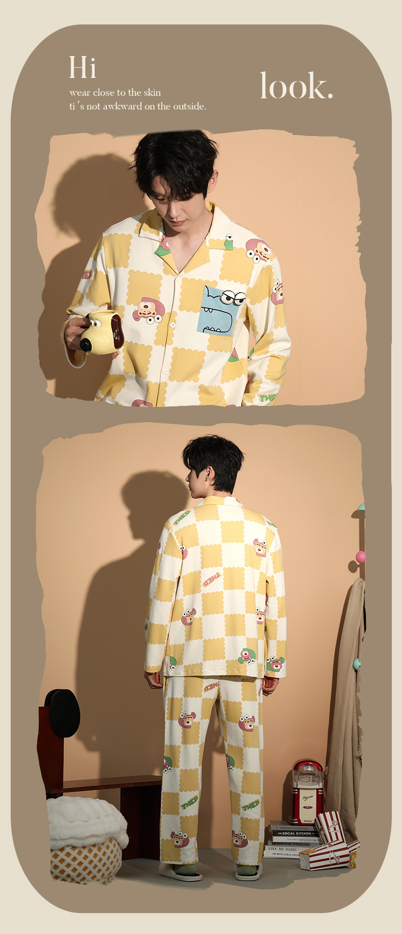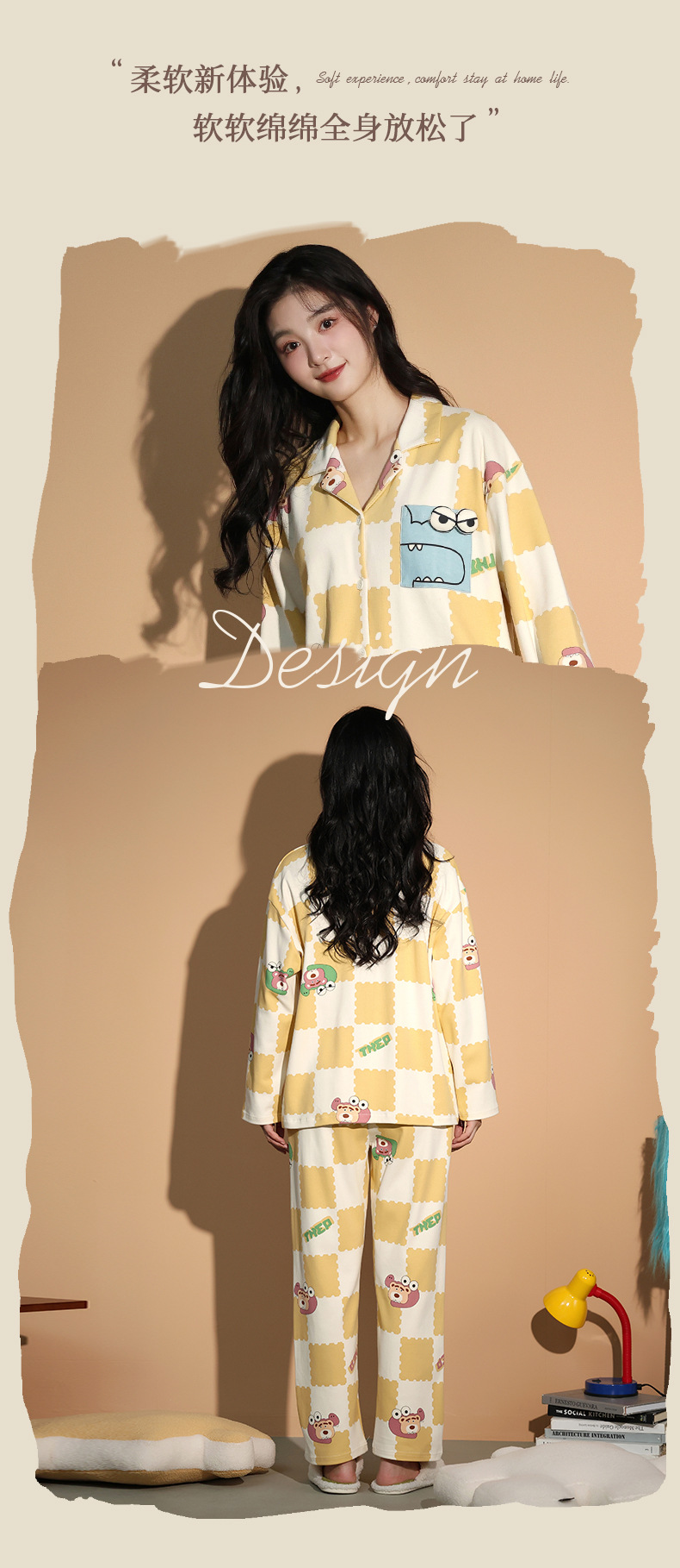 가을 패션 퓨어 코튼 커플 파자마 여성 가슴 패드 긴 소매 만화 인쇄 캐주얼 카디건 남성 홈 의류 세트스토어 가기