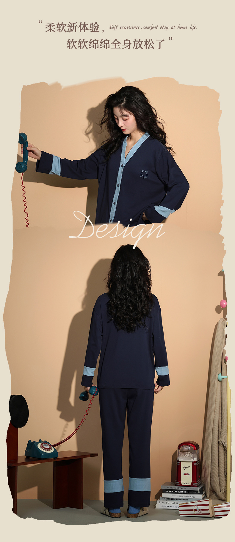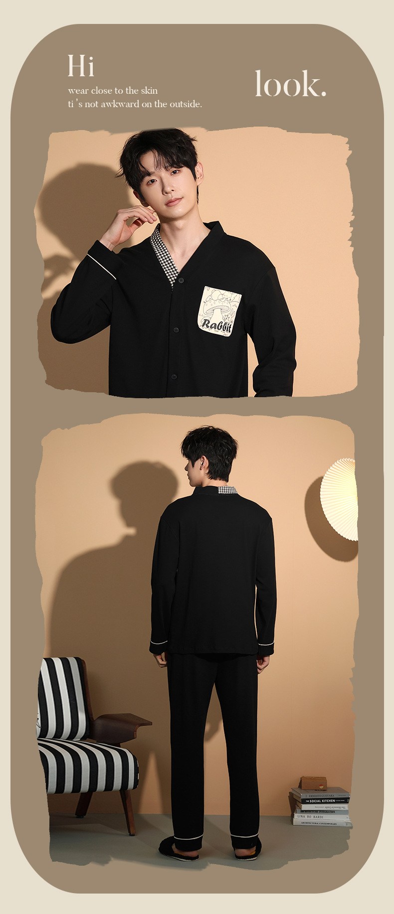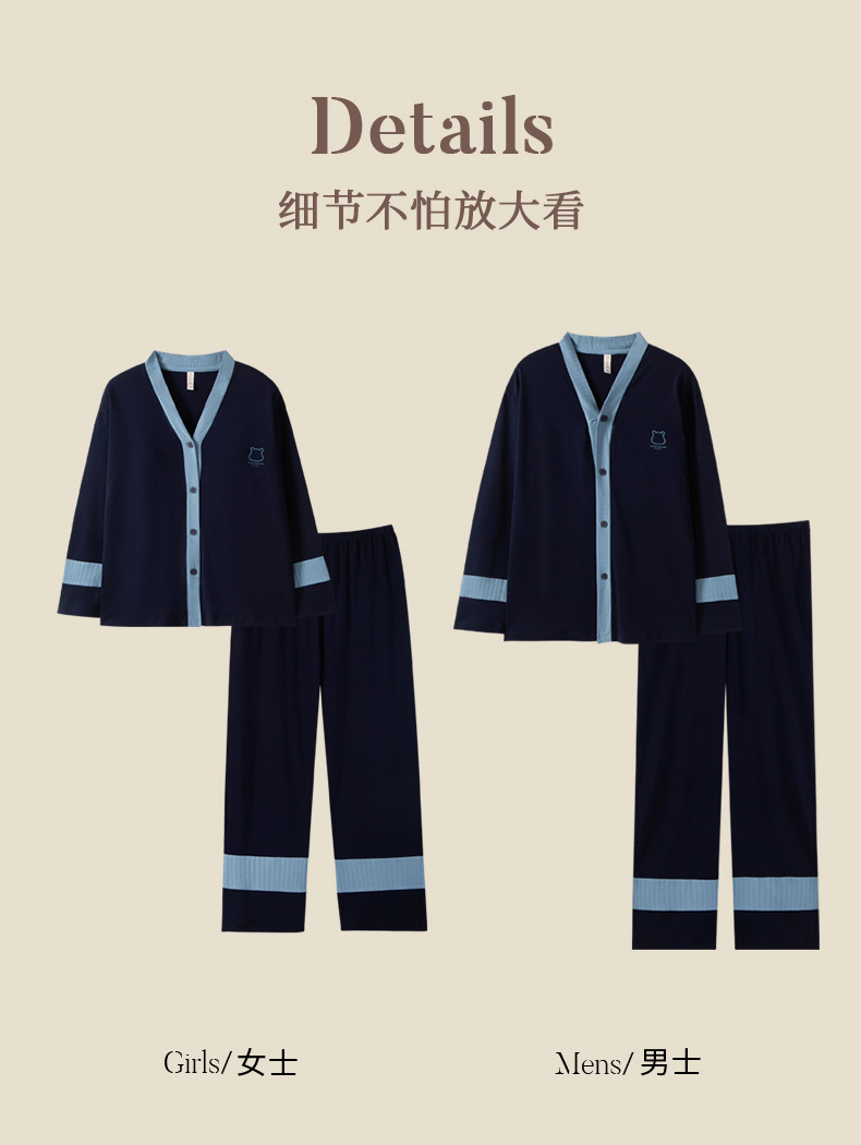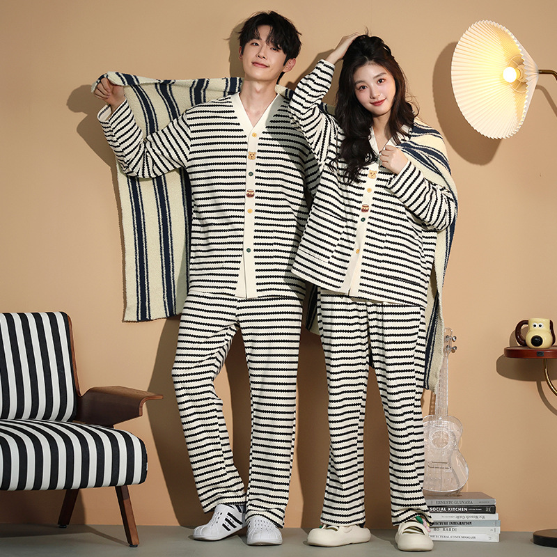 가을 패션 퓨어 코튼 커플 파자마 여성 가슴 패드 긴 소매 만화 인쇄 캐주얼 카디건 남성 홈 의류 세트
