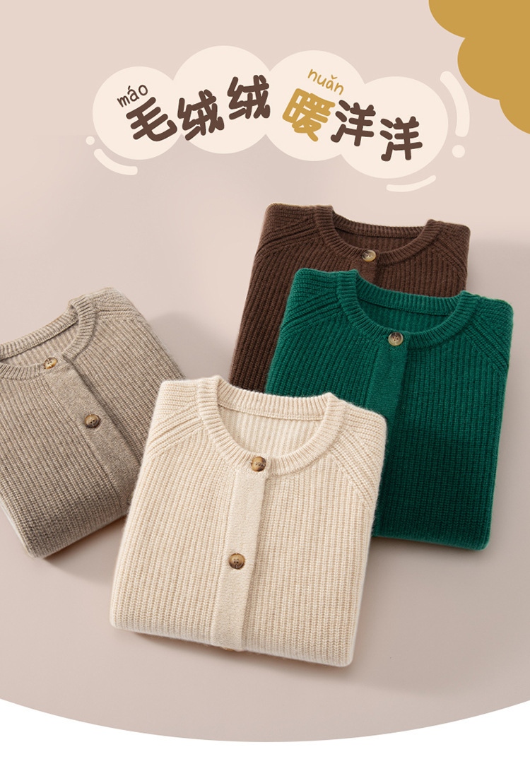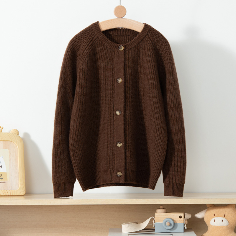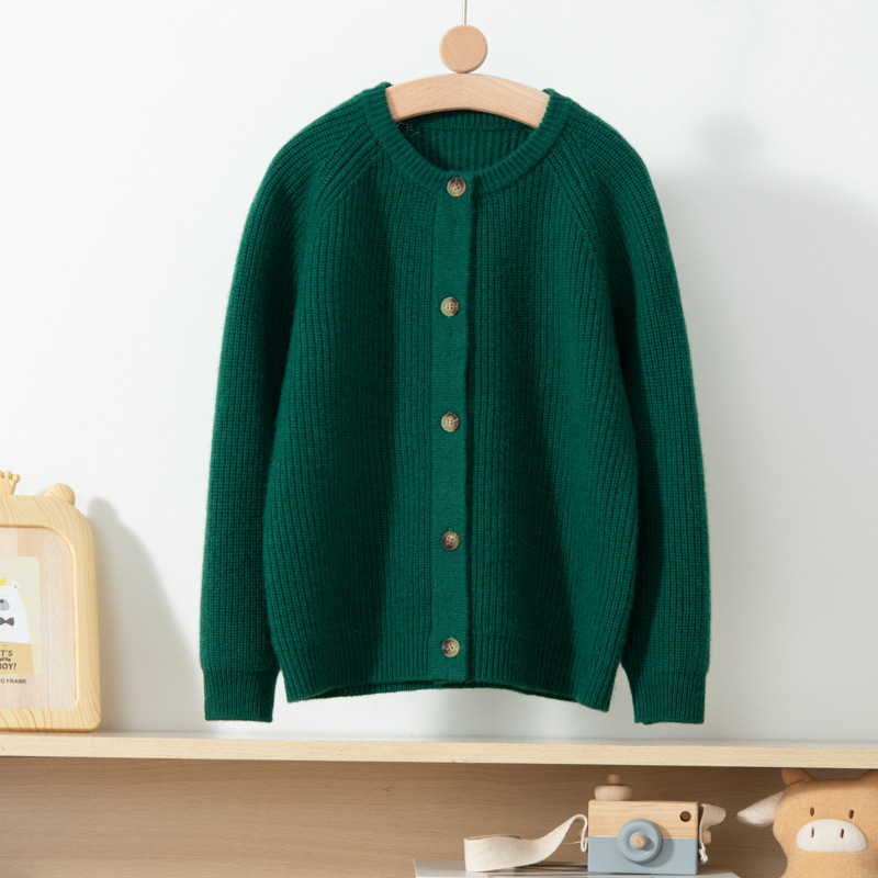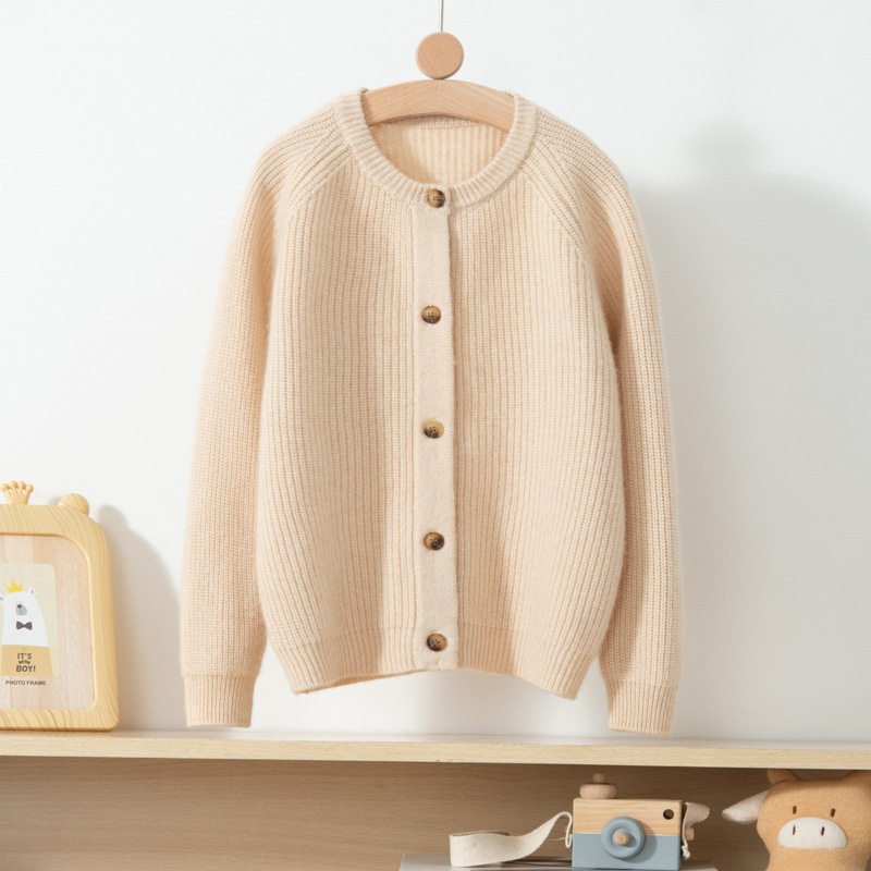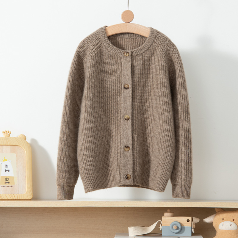 소년 소녀를위한 어린이 두꺼운 캐시미어 니트 카디건 솔리드 컬러 올 매치 라운드 넥 버클 캐시미어 재킷스토어 가기