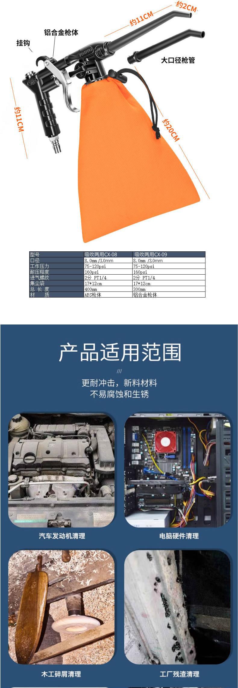 • 이중 구경 흡입 및 송풍 이중 목적 CX-08(플라스틱 건) + 6m 스프링 튜브 업그레이드 및 두꺼워짐