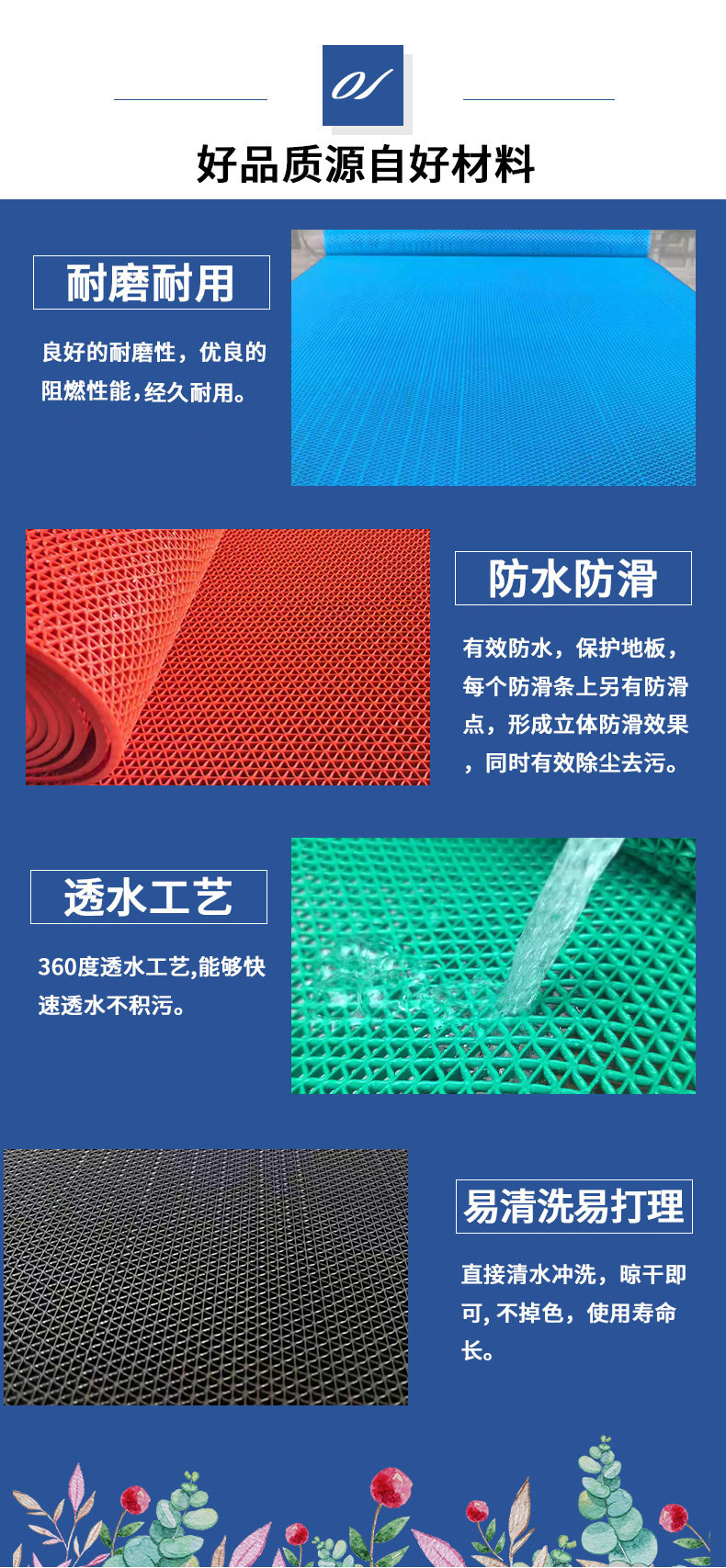 PVC 플라스틱 비 슬립 바닥 매트 할로우 발코니 안뜰 풀 샵 욕실 호텔 주방 화장실 방수 바닥 매트
