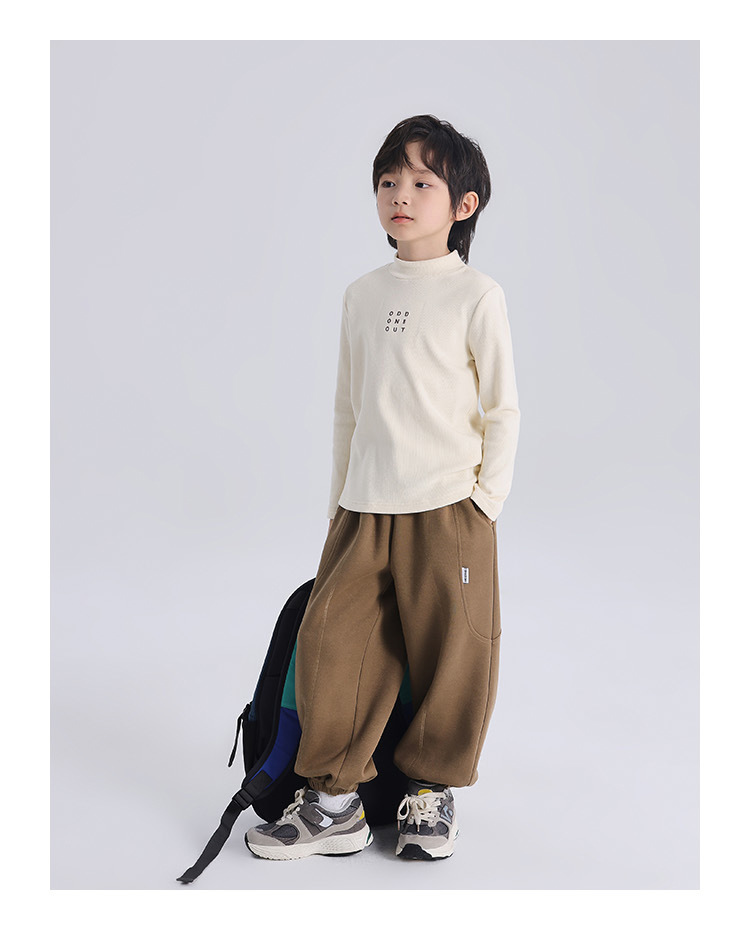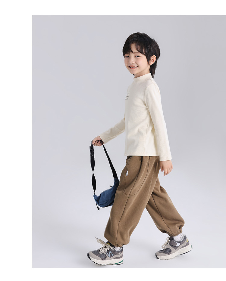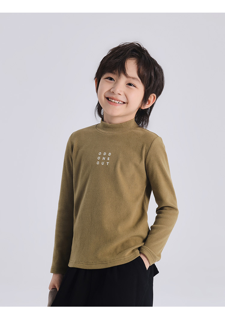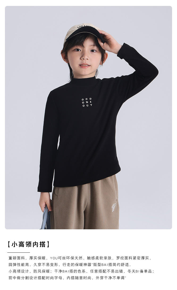 푸딩 하루 아동복 소년 작은 높은 칼라 간단한 내부 티셔츠 가을 2024 새로운 어린이 솔리드 컬러베이스 셔츠스토어 가기