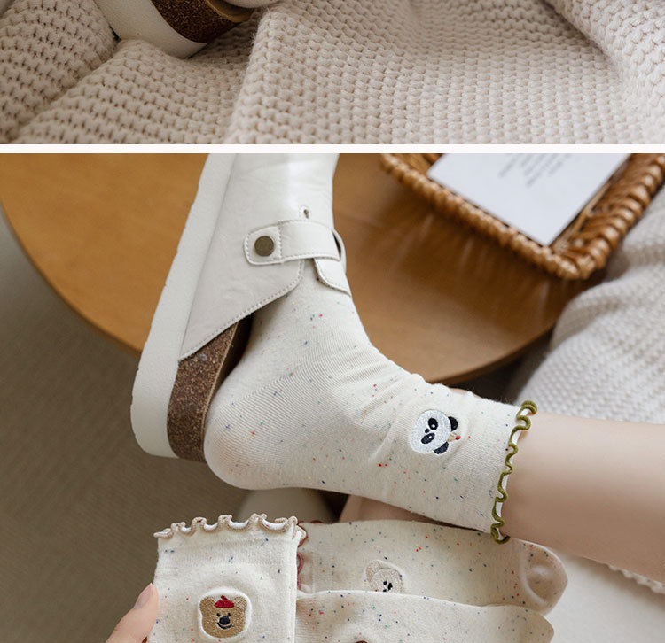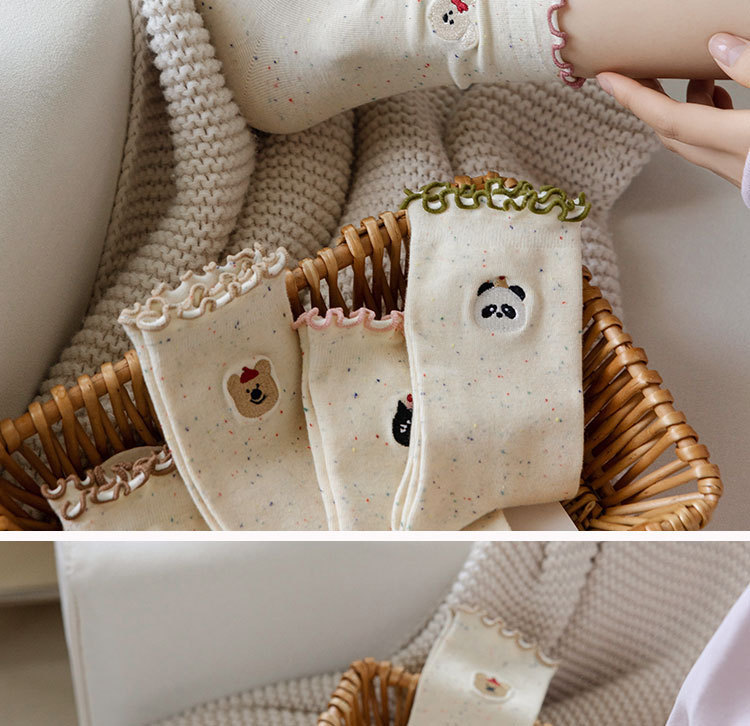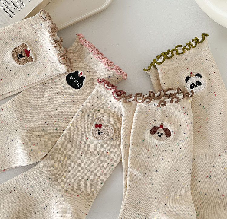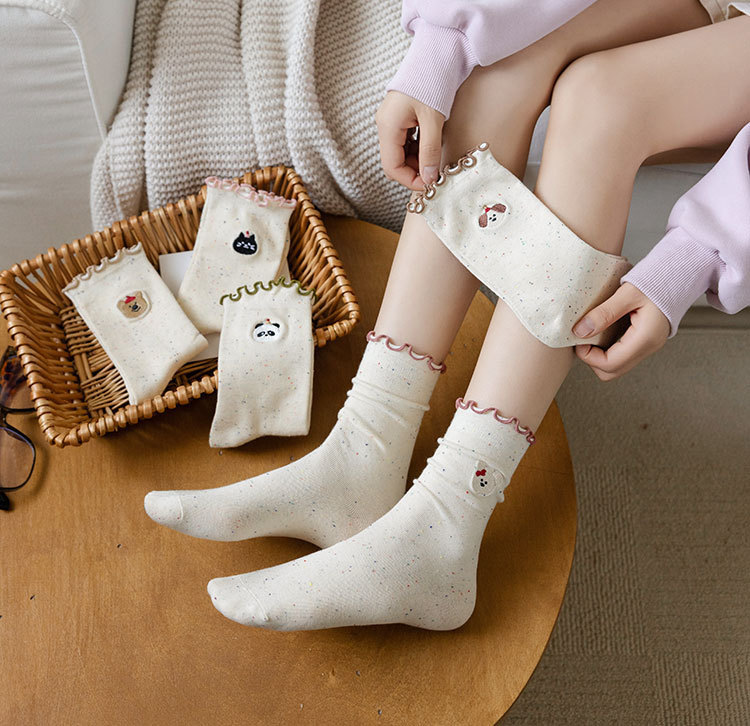양말 여성의 중간 튜브 양말 가을과 겨울 새로운 agaric 레이스 긴 튜브 스택 양말 만화 곰 강아지 귀여운 학생 양말