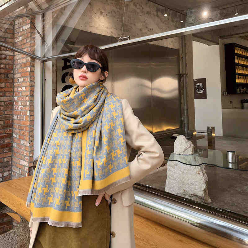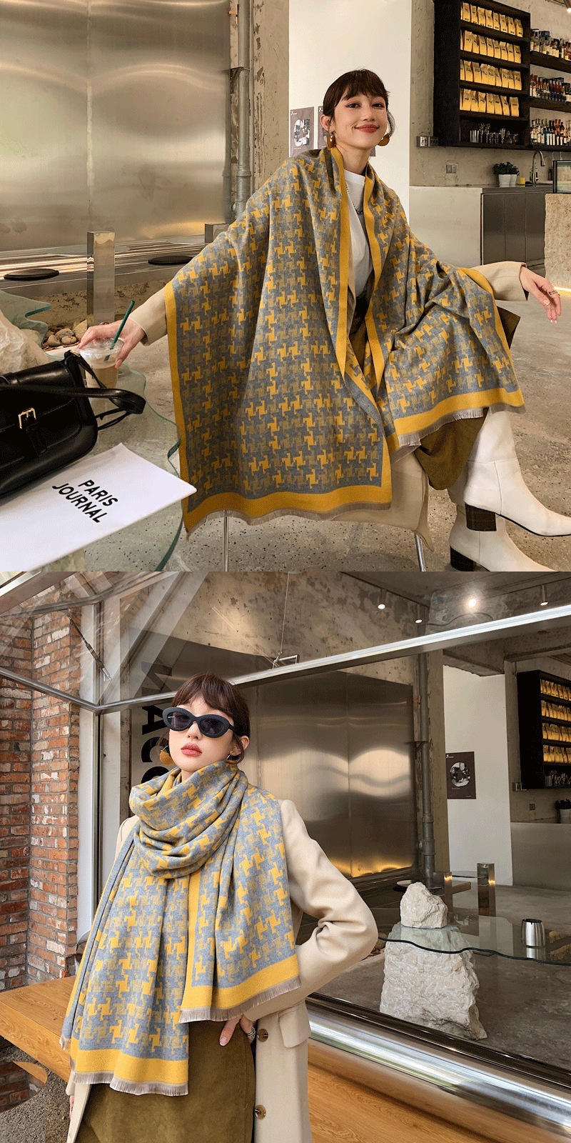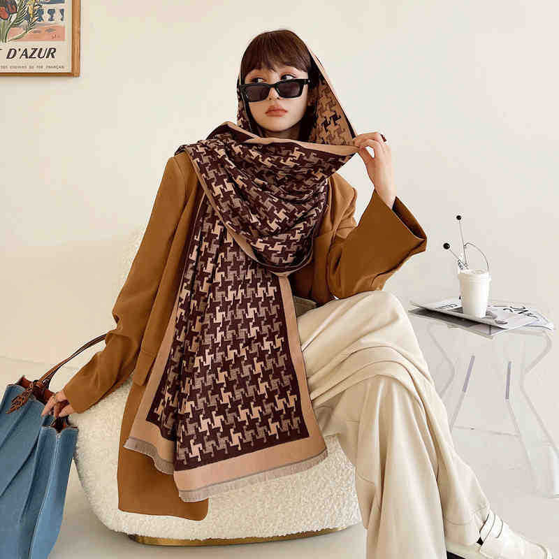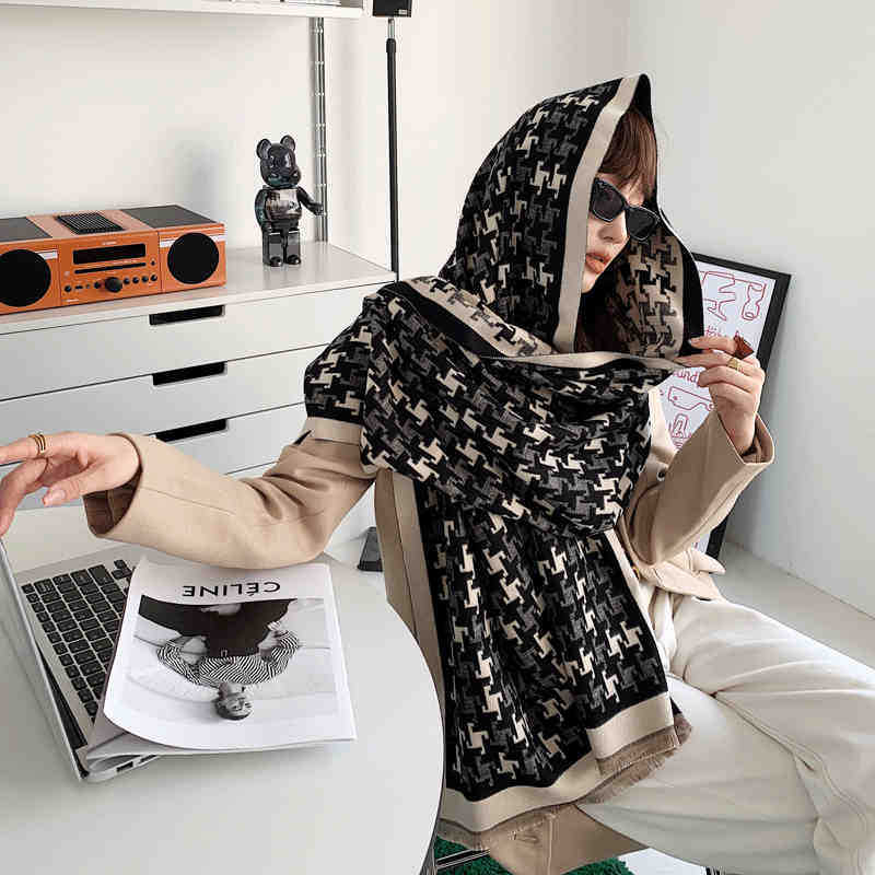 새로운 2024 가을과 겨울 Houndstooth 캐시미어 자카드 큰 목도리 여성 패션 클래식 올 매치 방풍 따뜻한 두껍게스토어 가기