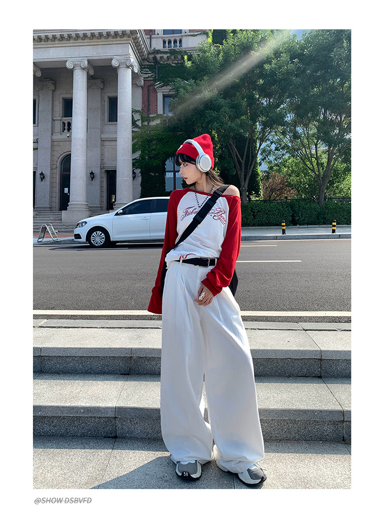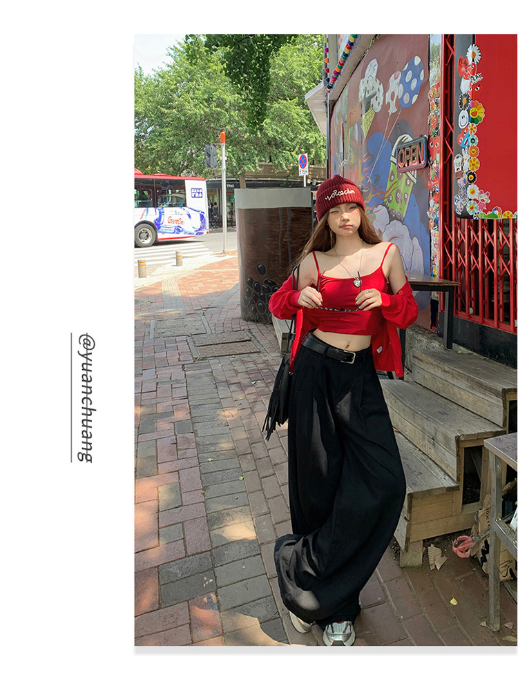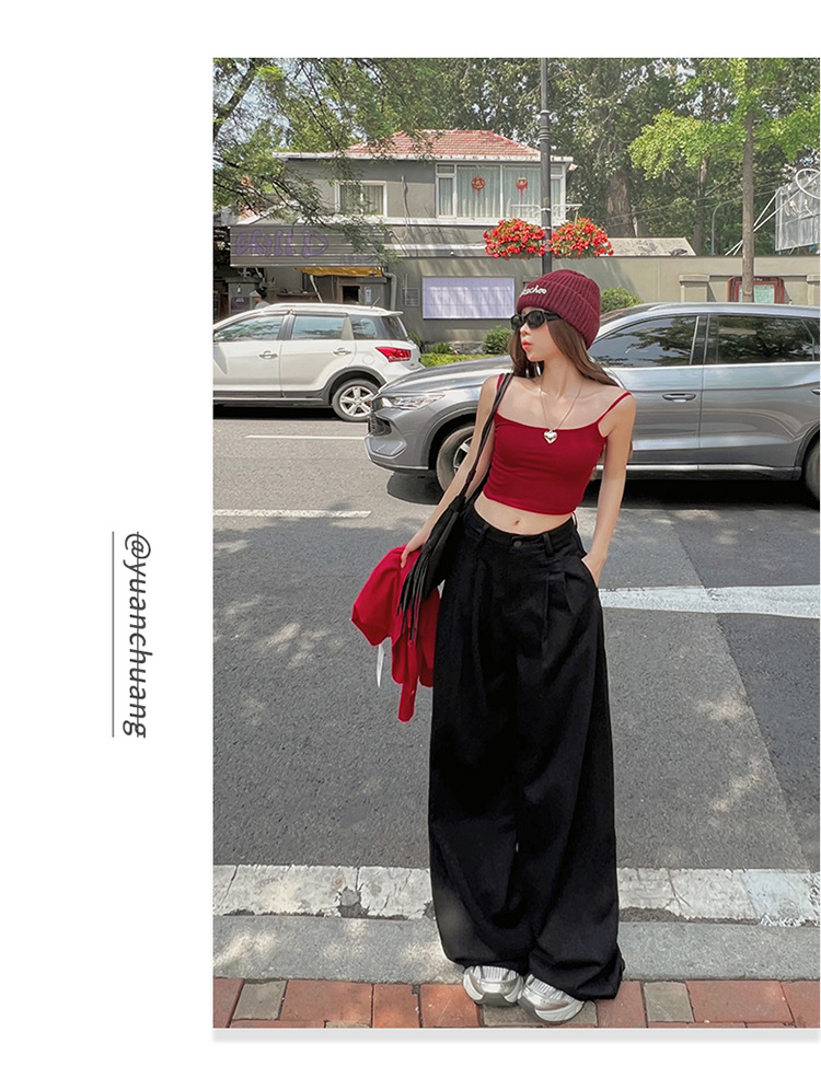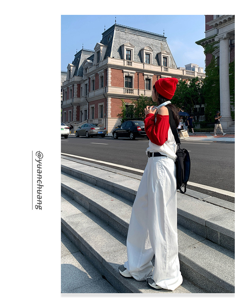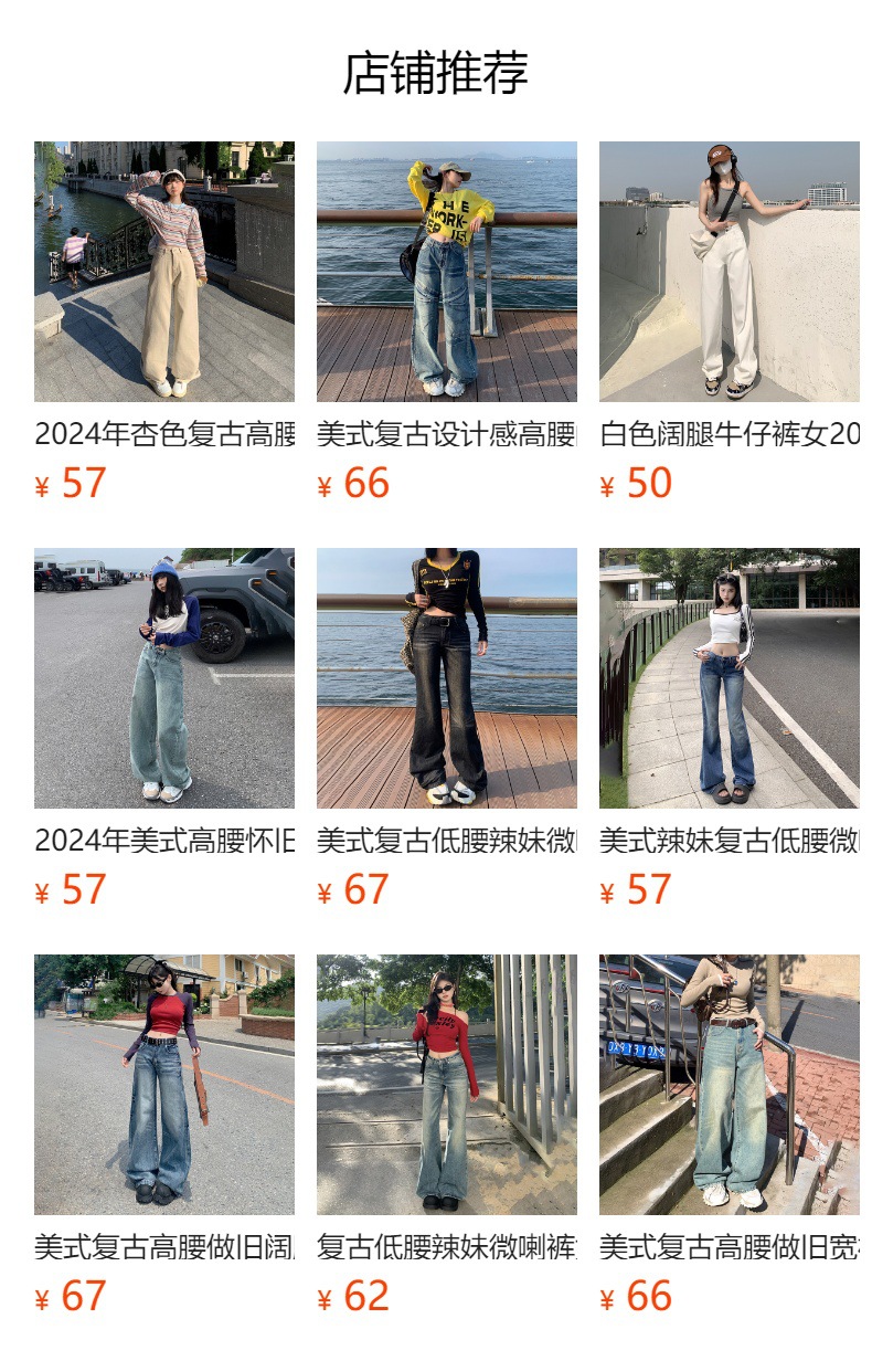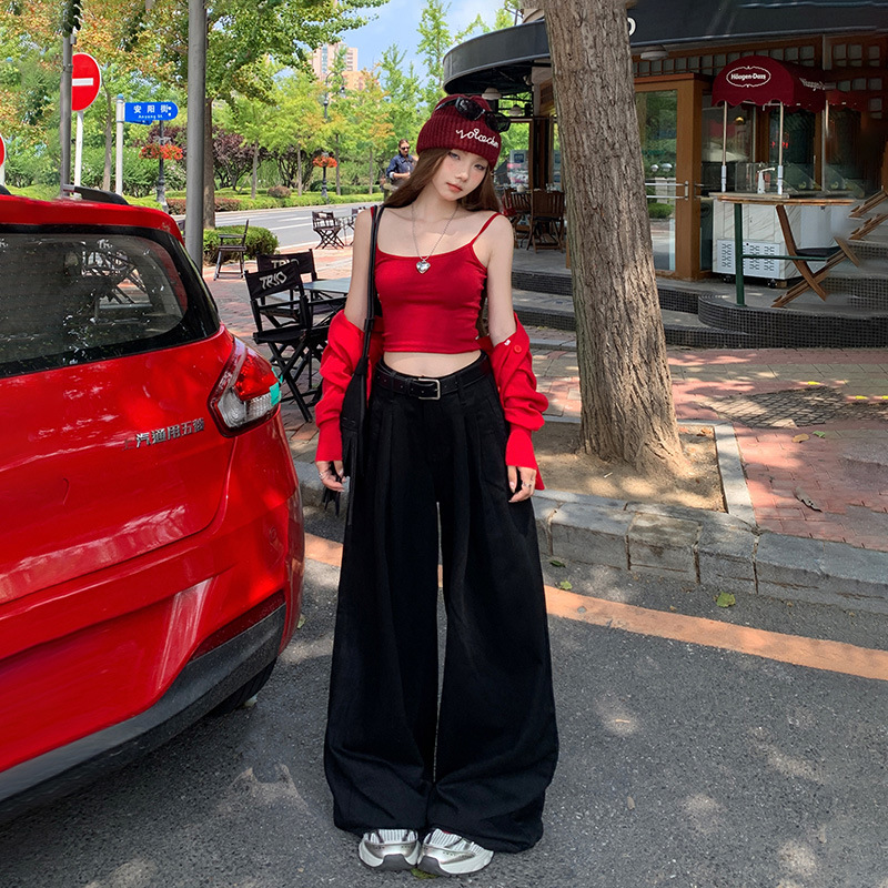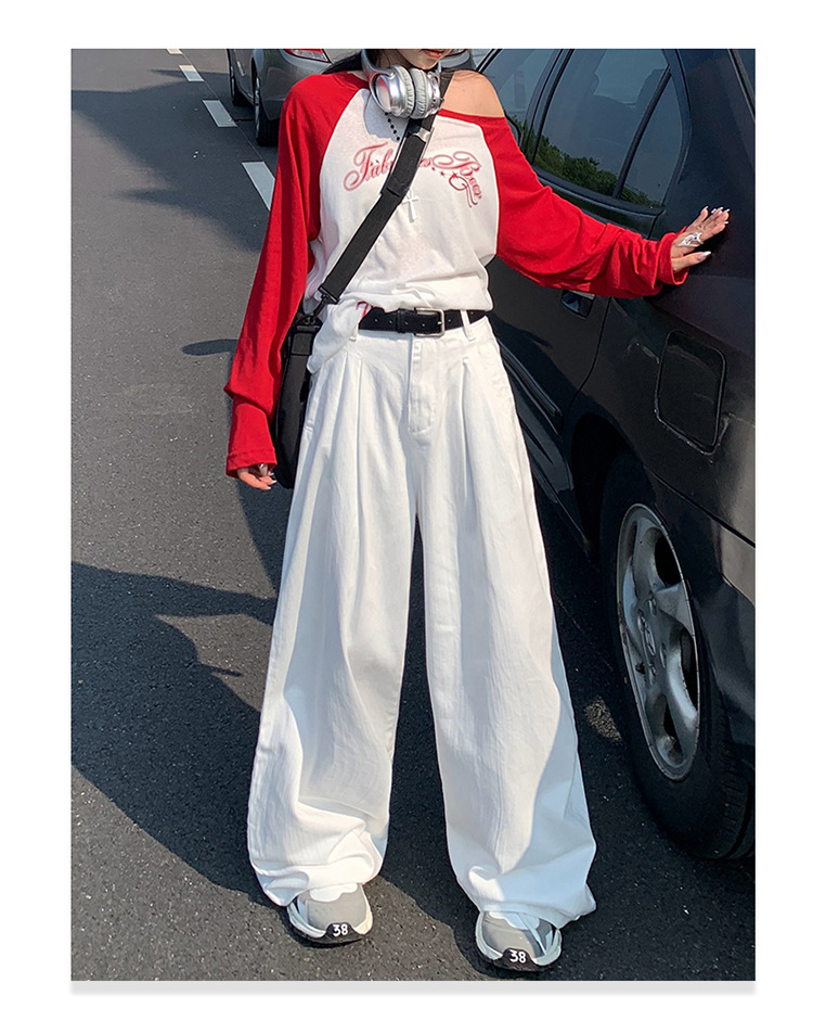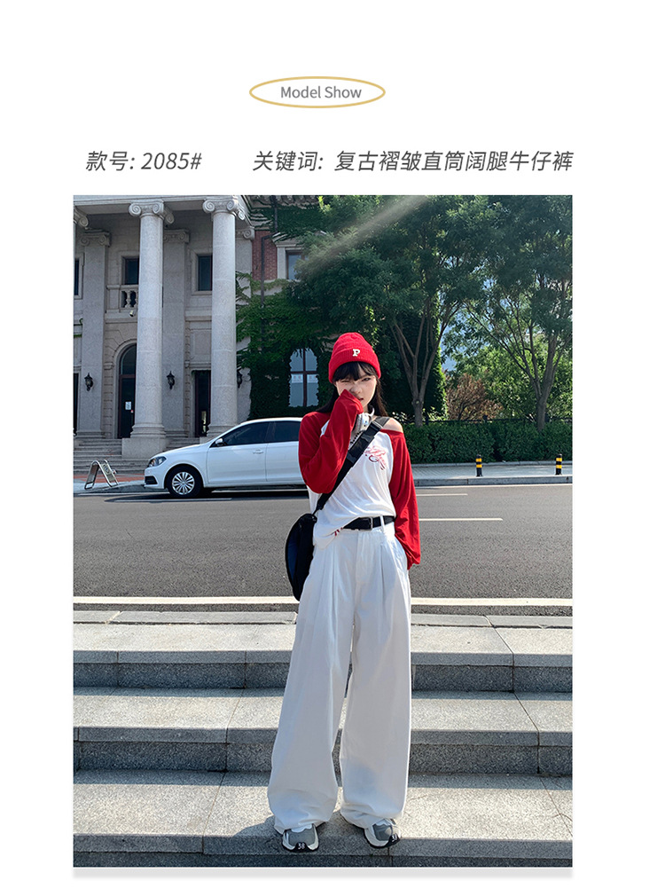 아메리칸 스타일 레트로 높은 허리 주름 넓은 다리 청바지 여성의 가을 새로운 2024 느슨한 슬림 핏 드래그 바지스토어 가기