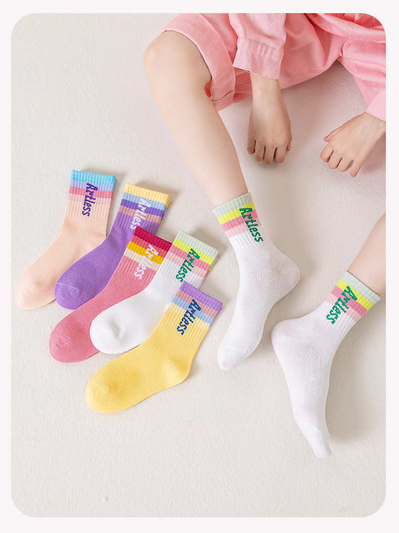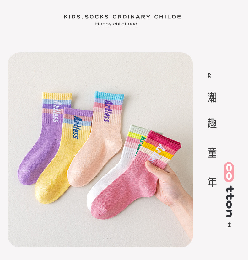 소녀 양말 면화 봄과 가을 얇은 튜브 양말 봄과 여름 도매 조수 어린이 스포츠 양말 가을과 겨울 줄무늬 양말