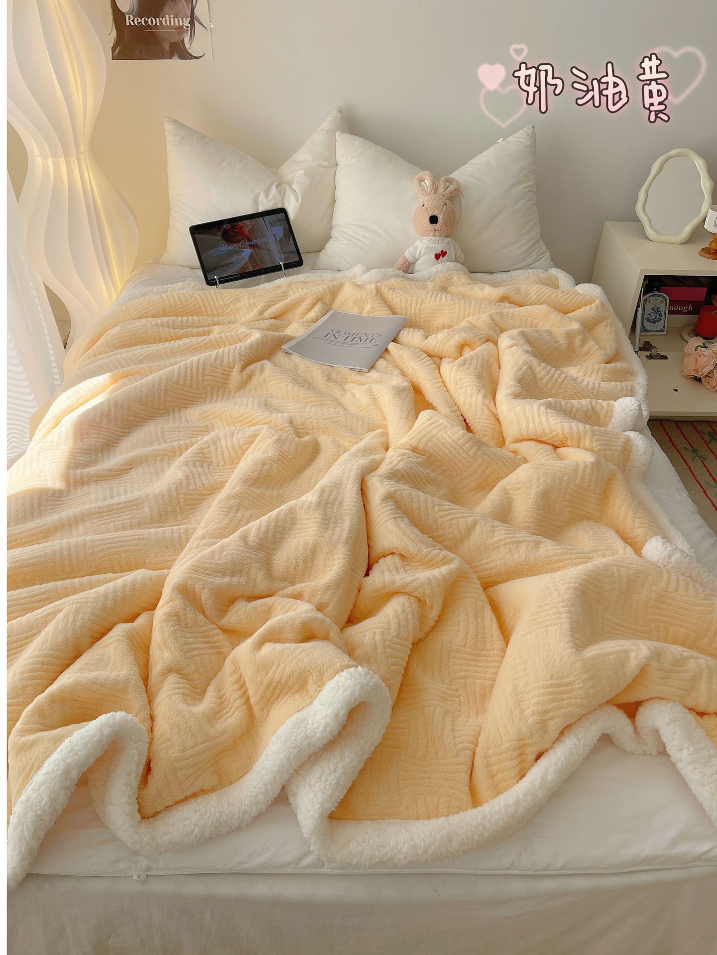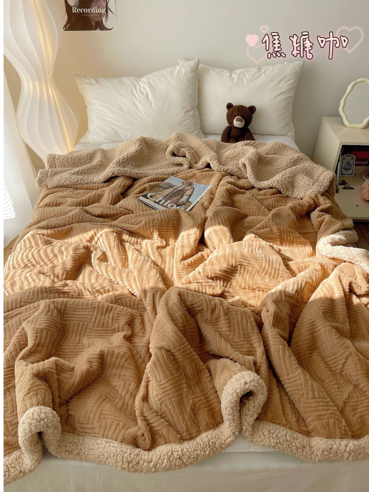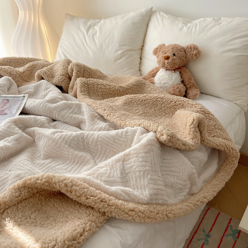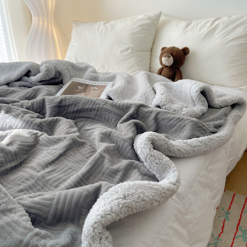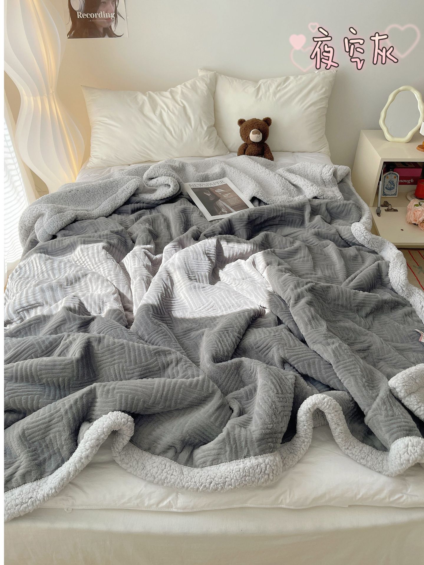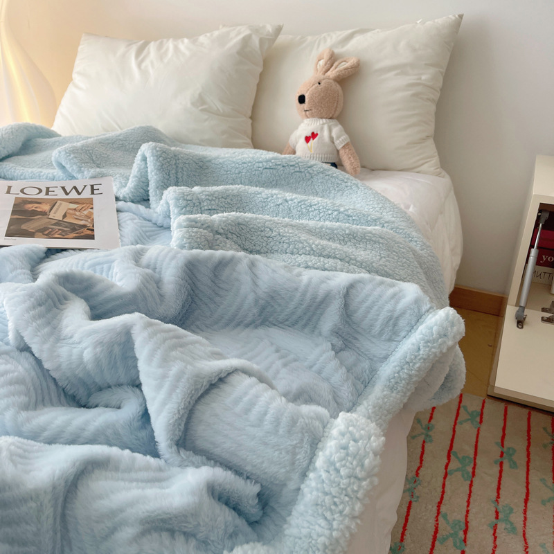Ins 간단한 단색 자카드 토끼 봉제 캐시미어 담요 캐주얼 낮잠 사무실 담요 싱글 더블 담요 4스토어 가기