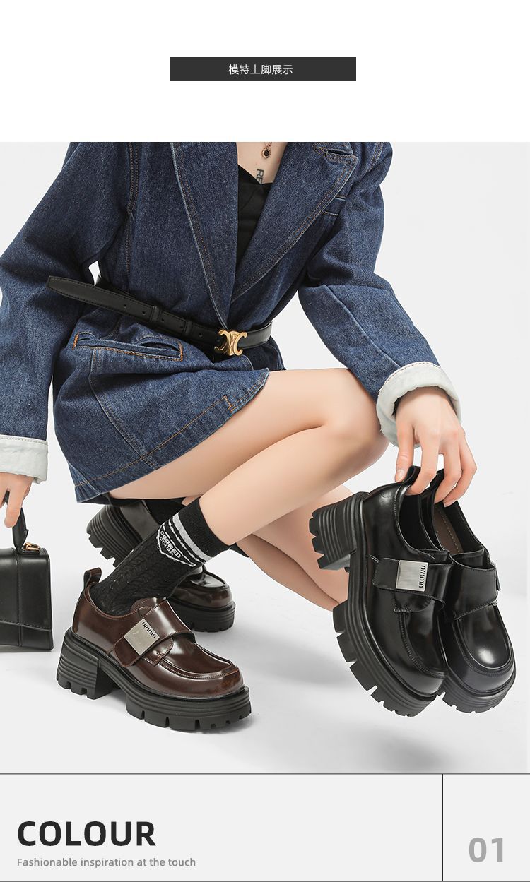 영국 스타일 두꺼운 두꺼운 바닥 메리 제인 신발 벨크로 작은 가죽 신발 JK 균일 한 싱글 레이어 신발 2024 가을 새로운 여성 신발스토어 가기