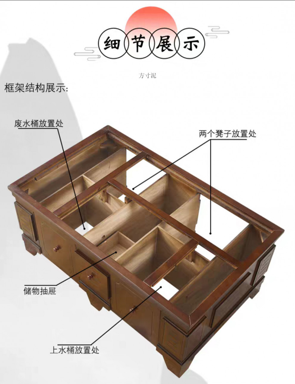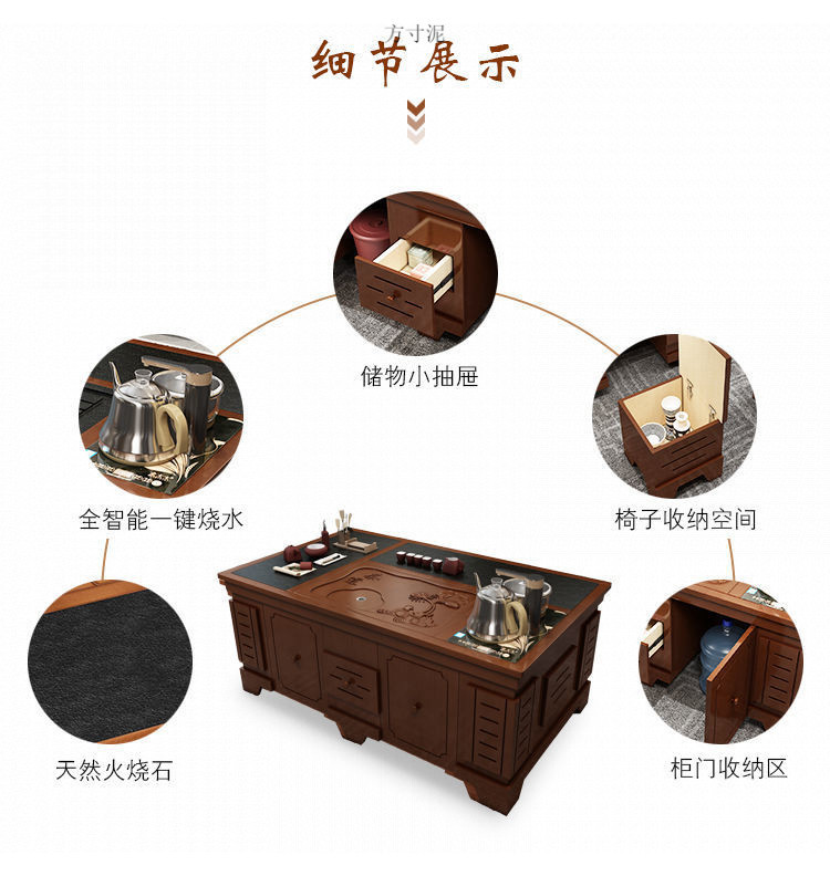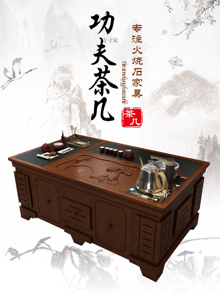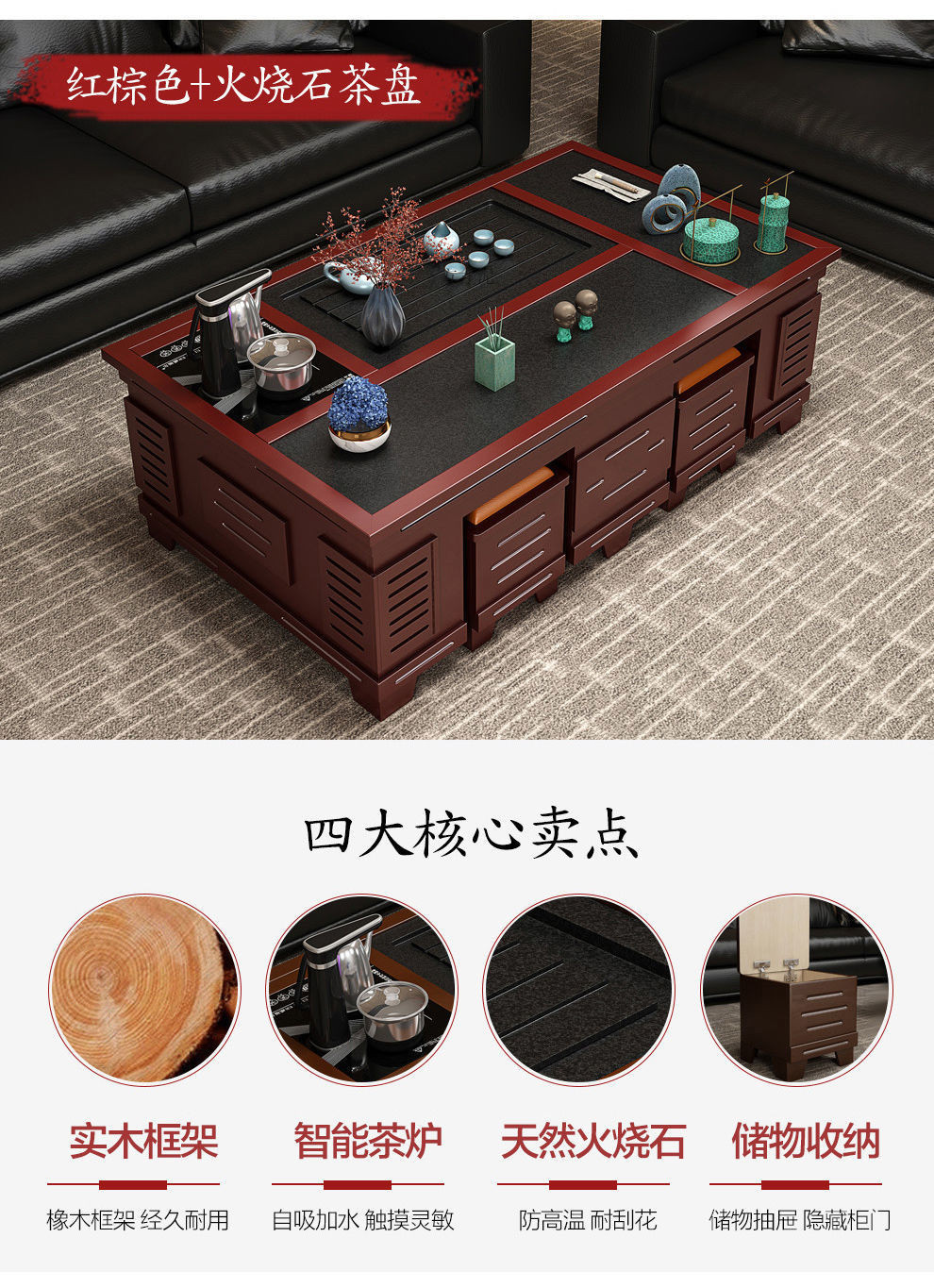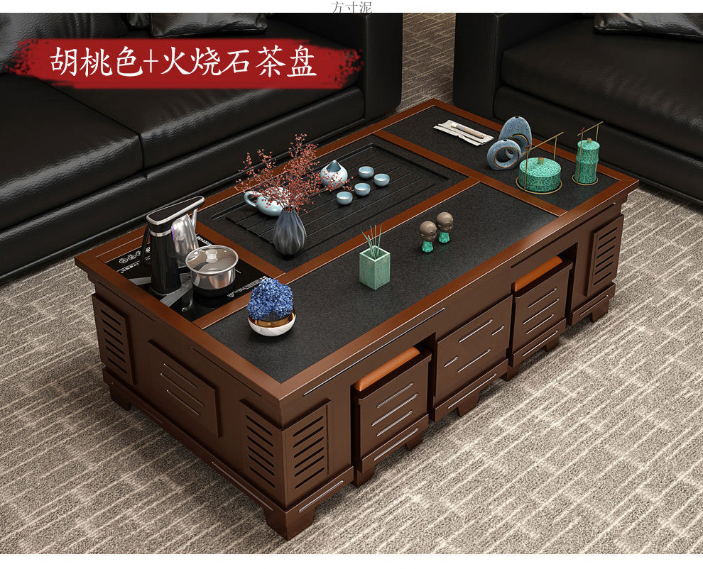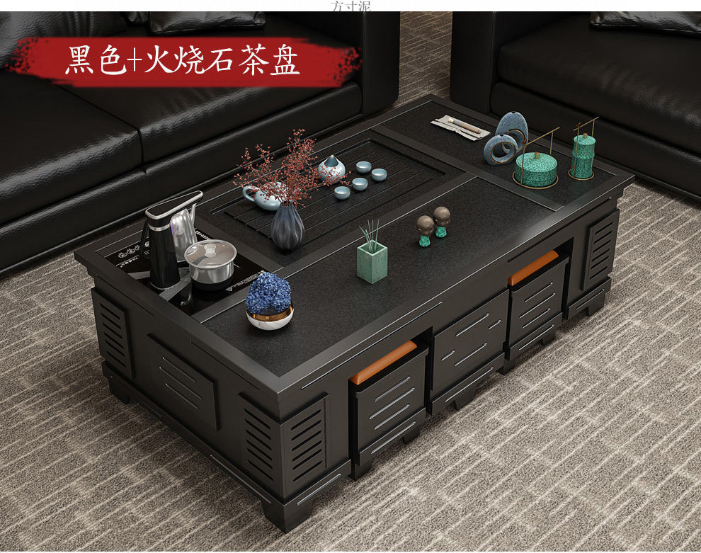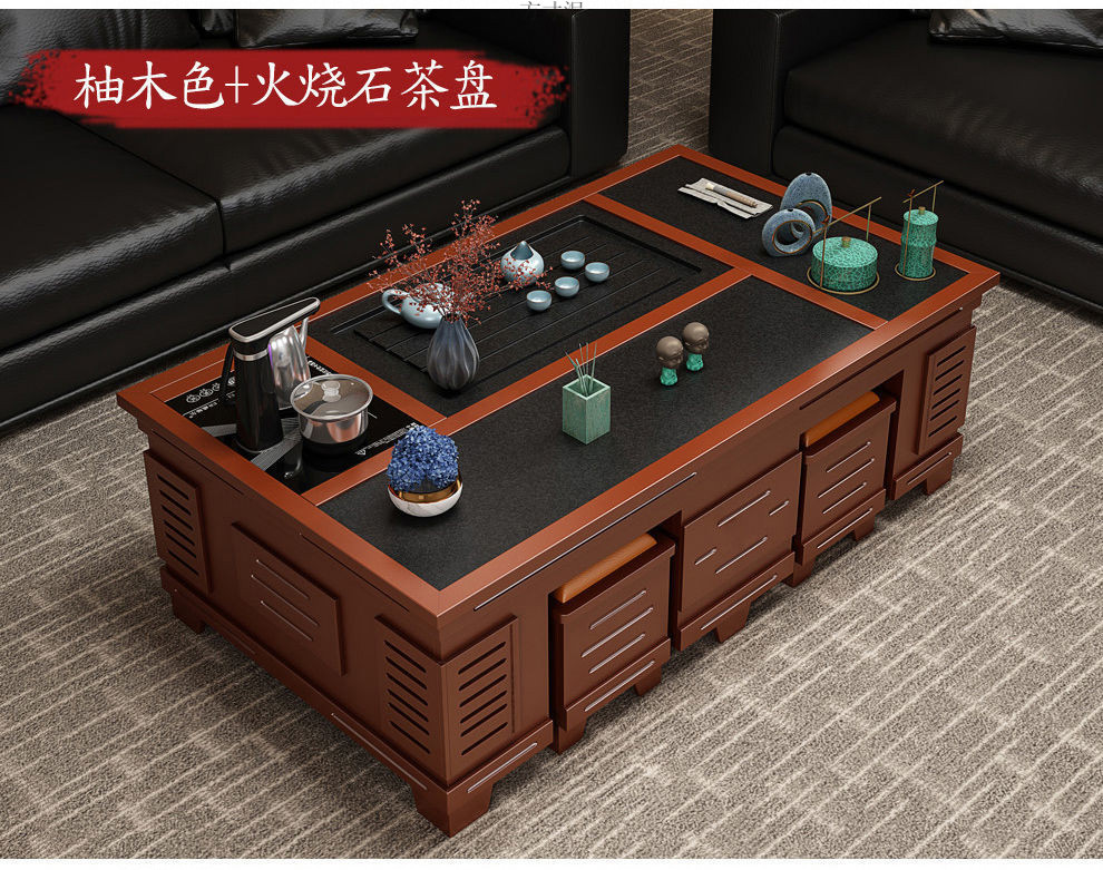 쿵푸 커피 테이블 현대 간단한 소나무 돌 다기능 차 테이블 조합 사무실 홈 차 트레이 거실 단단한 나무 차 테이블스토어 가기
