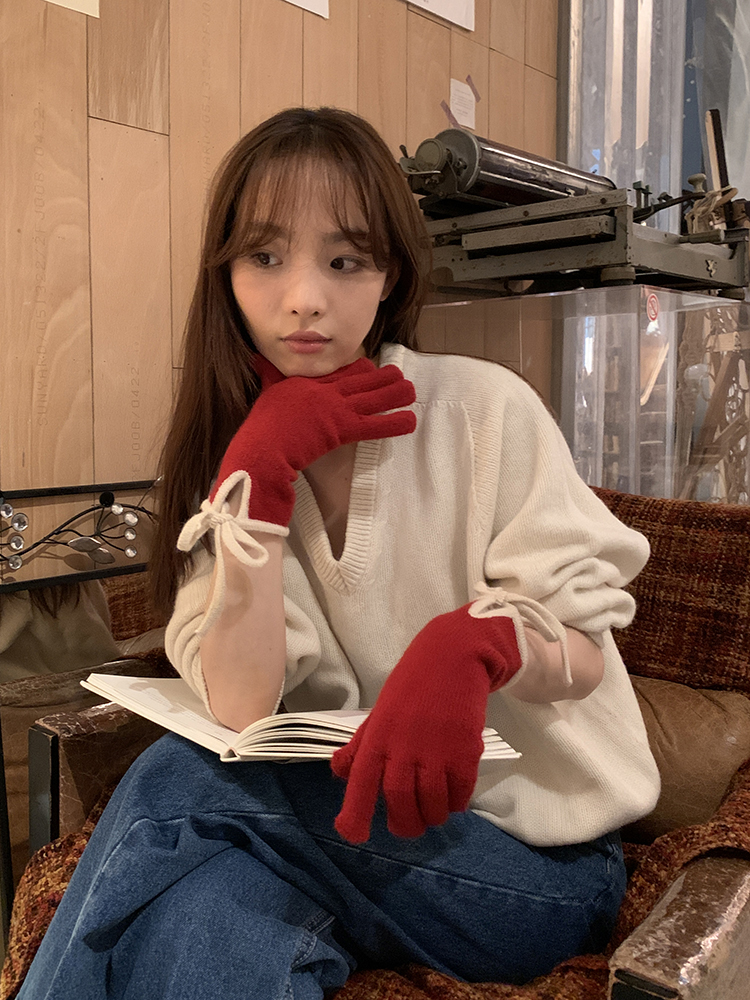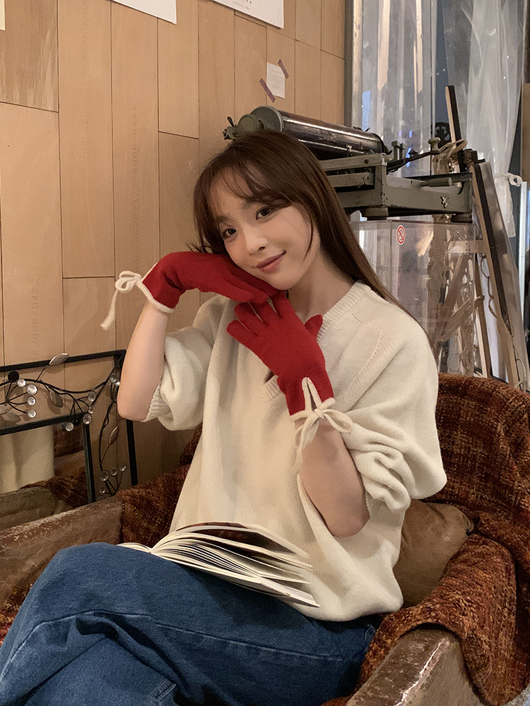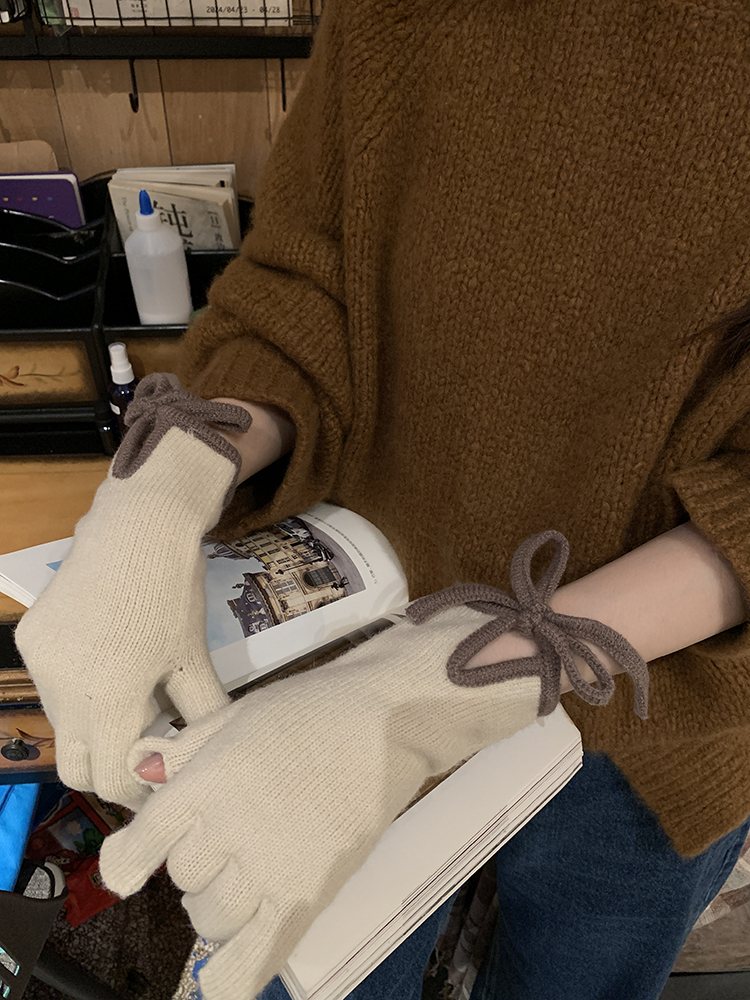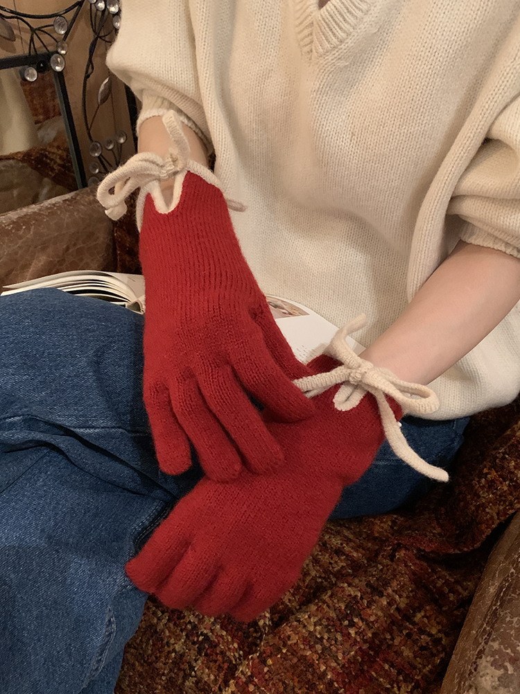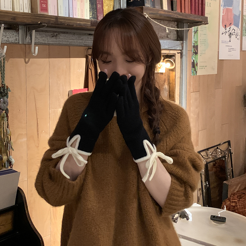 2 색 끈 ~ 양모 손가락 유행 다섯 손가락 장갑 휴대 전화 장갑 울 따뜻한 겨울을 재생하기 편리한