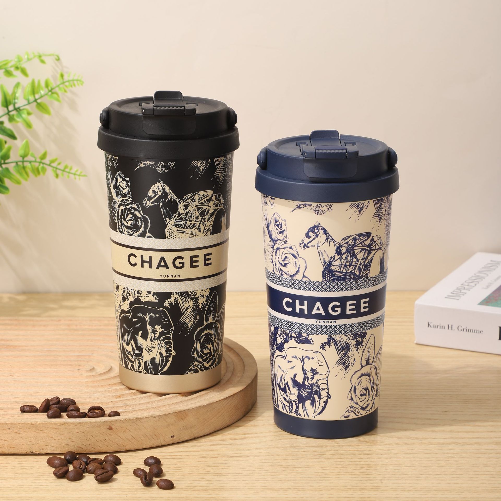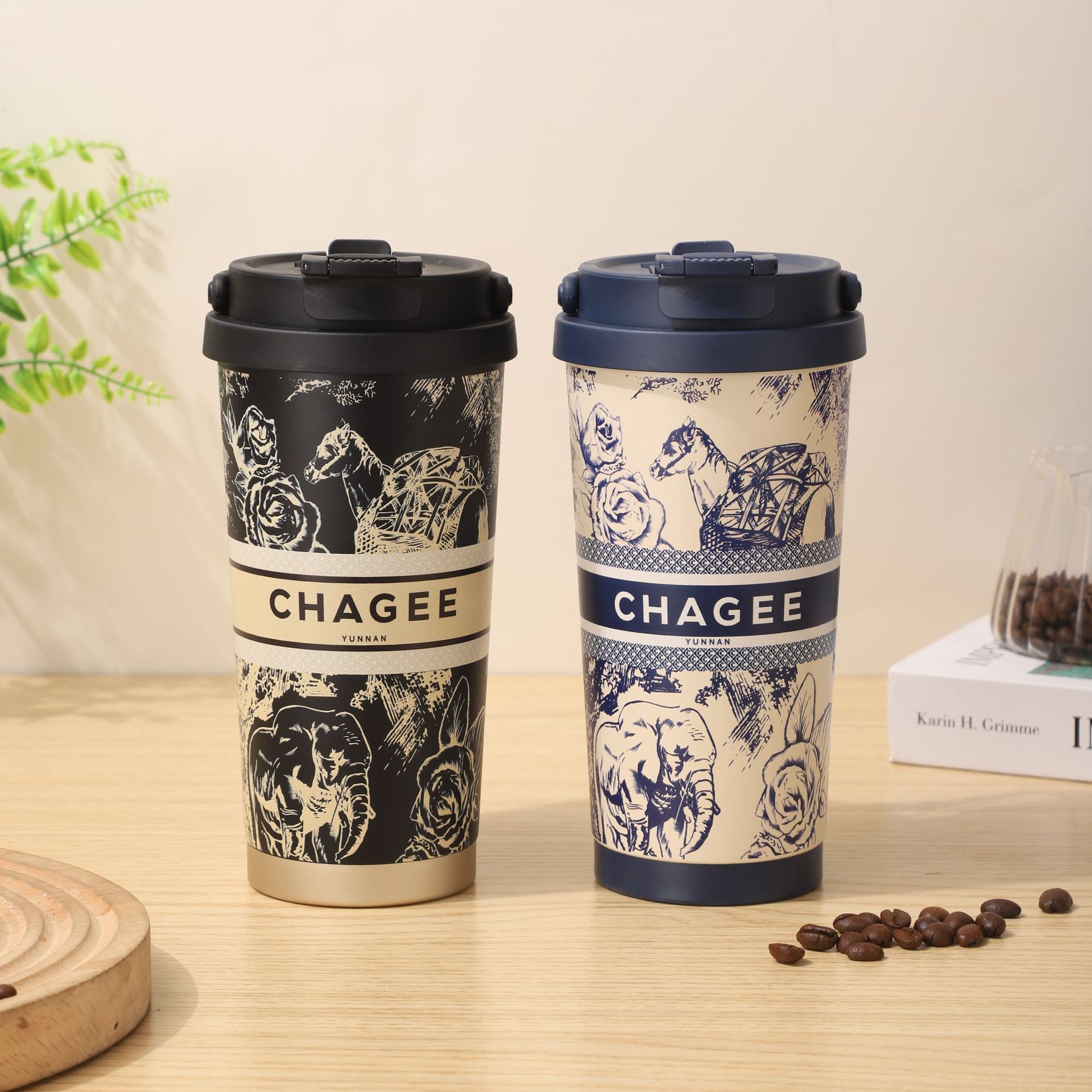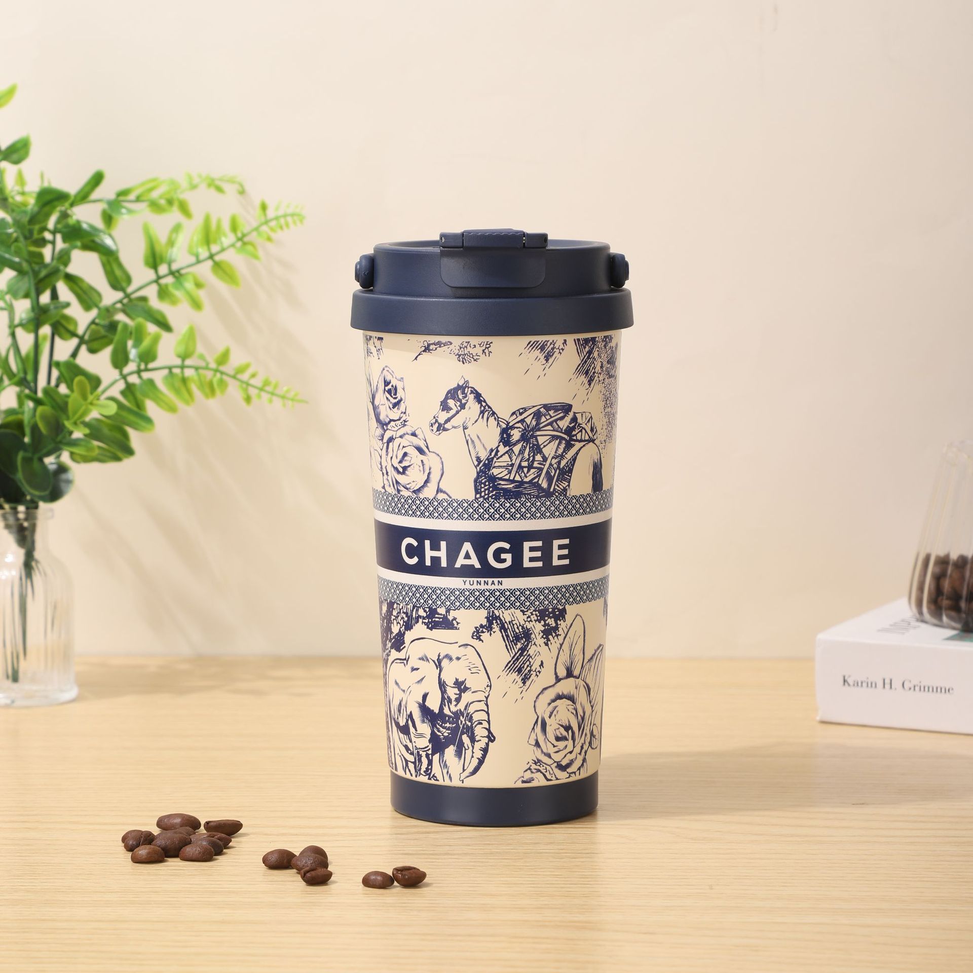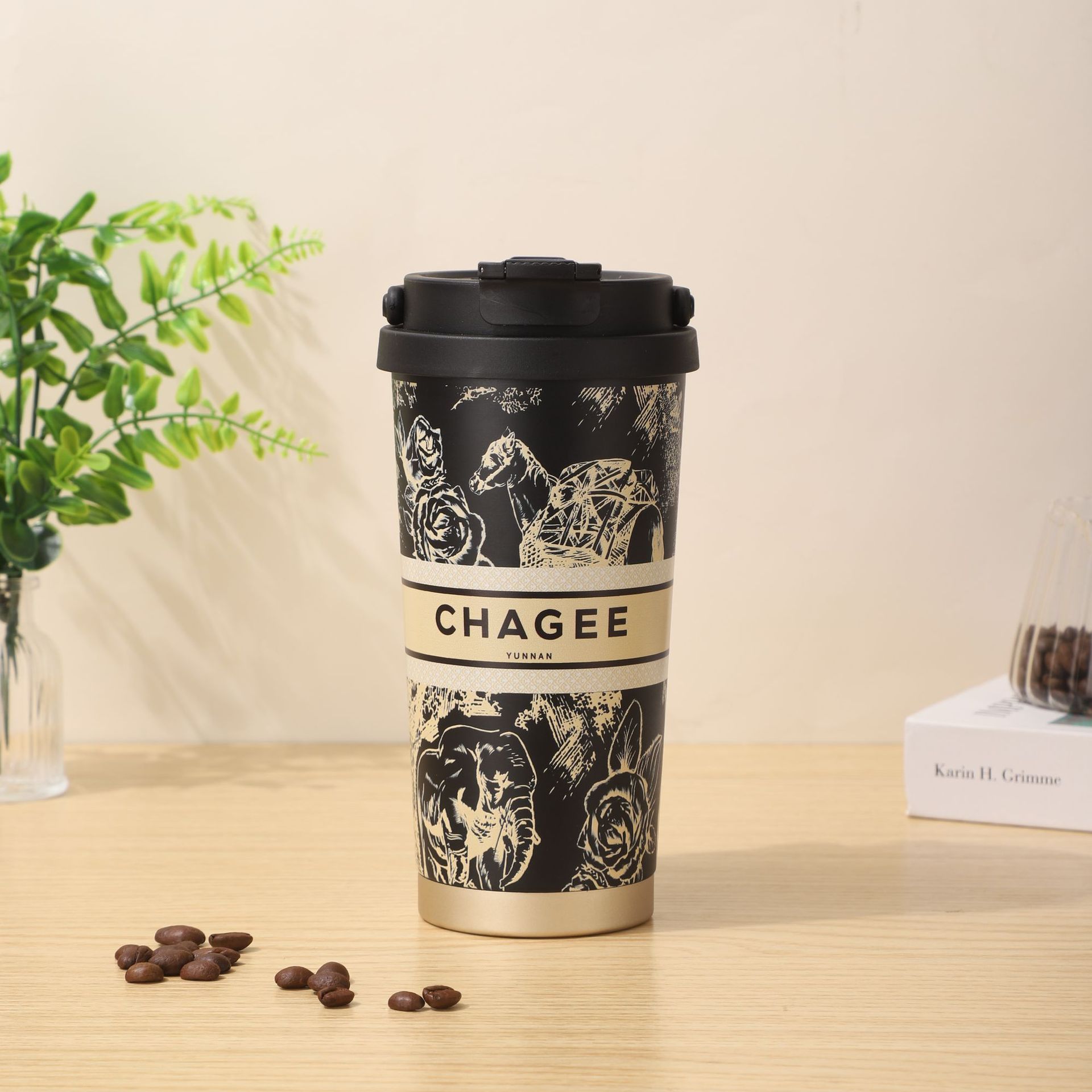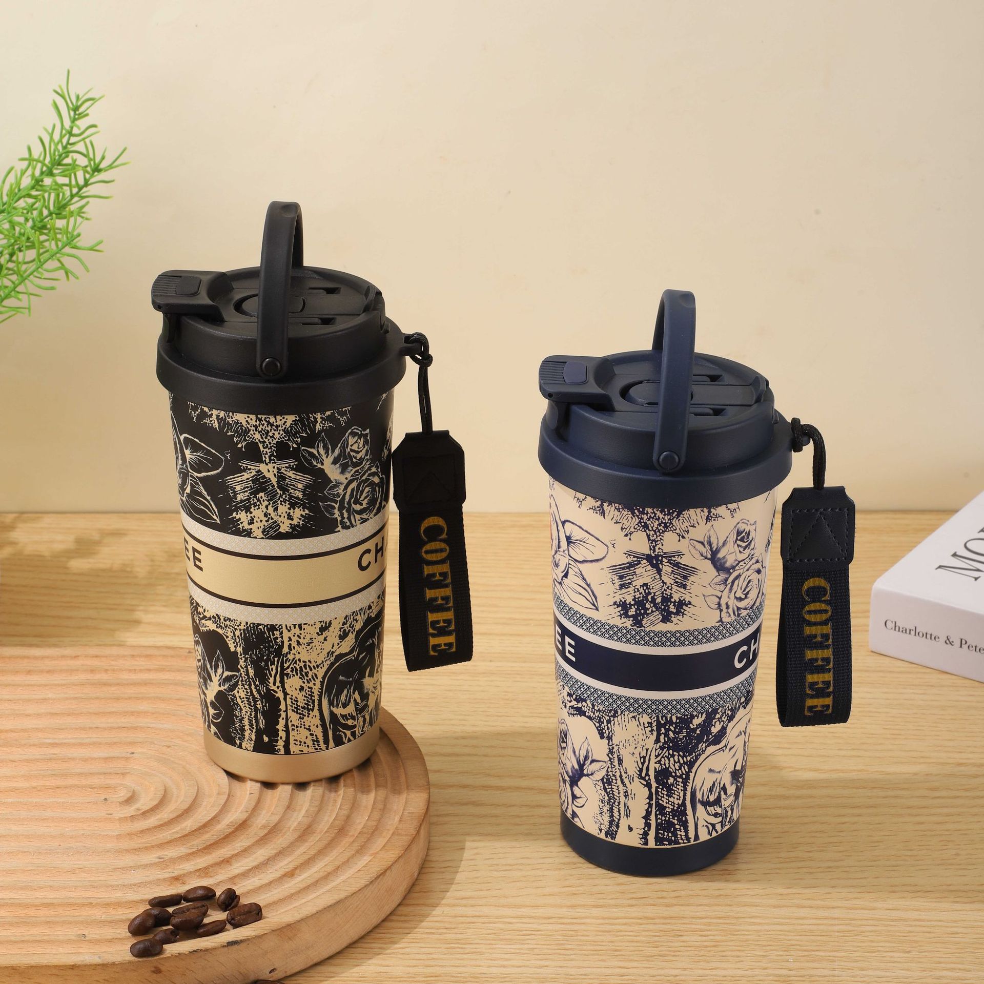 높은 아름다움 가치 오버로드 차 Ji, 커피 컵 휴대용 핸들 릴리-더-밸리 선물 컵 316 스테인레스 스틸 보온병 컵