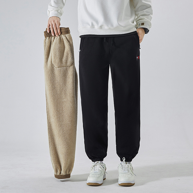 캐주얼 바지 남자 겨울 새로운 아오 곡물 양털 패션 브랜드 남자 캐주얼 루즈 스웨트 바지 플러스 사이즈 남자 기모 스트레이트 바지