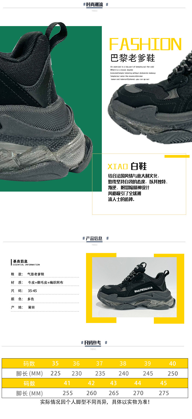 Putian High Version Paris Air Cushion Torre 신발 남녀 트렌디 올매치 인터넷 연예인 두꺼운 단독 높이 증가 캐주얼 운동화