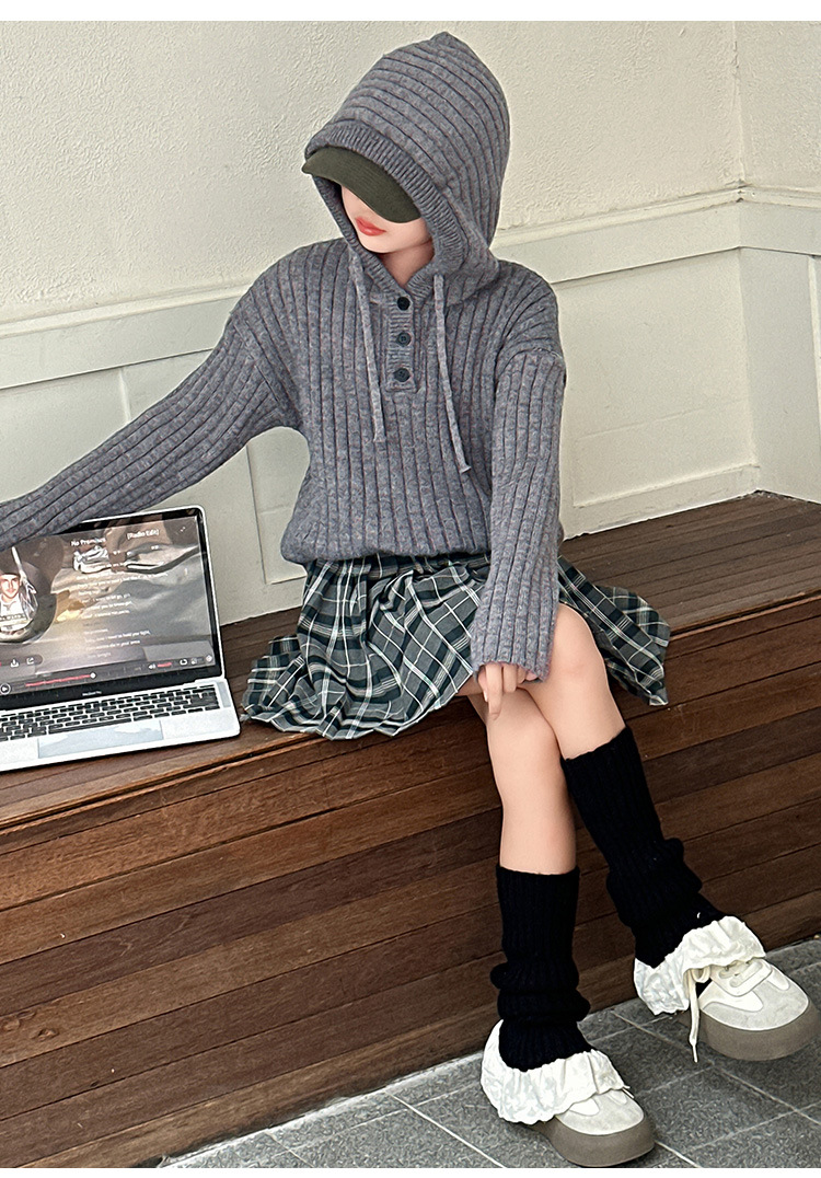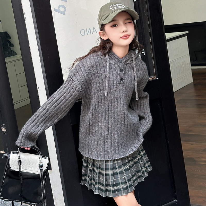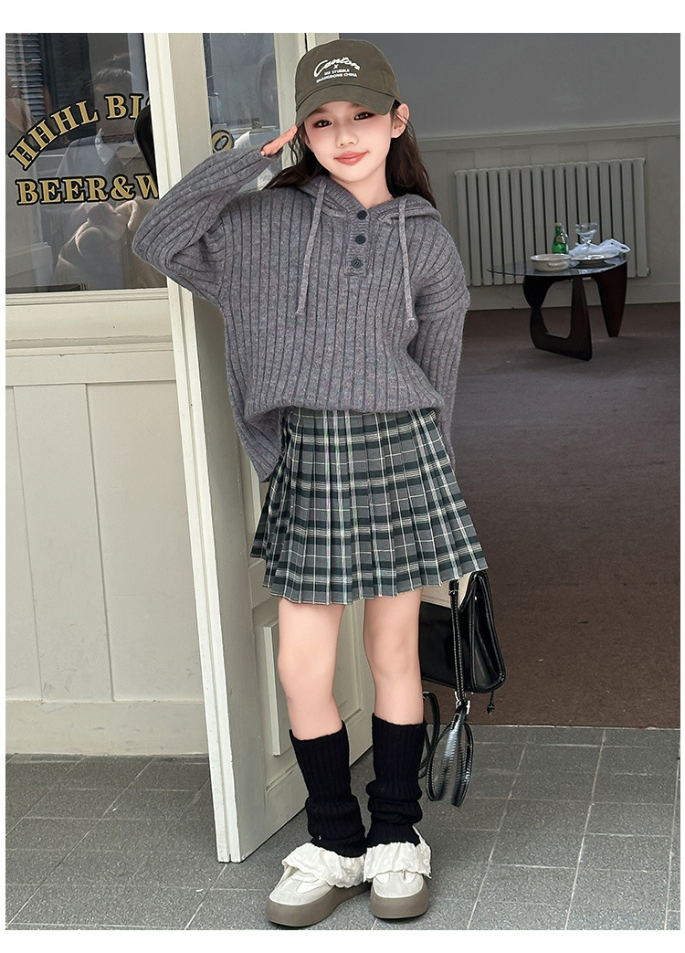 소녀 가을 투피스 세트 2024 새로운 어린이 유행 한국 스웨터 큰 어린이 소녀 가을 주름 치마스토어 가기