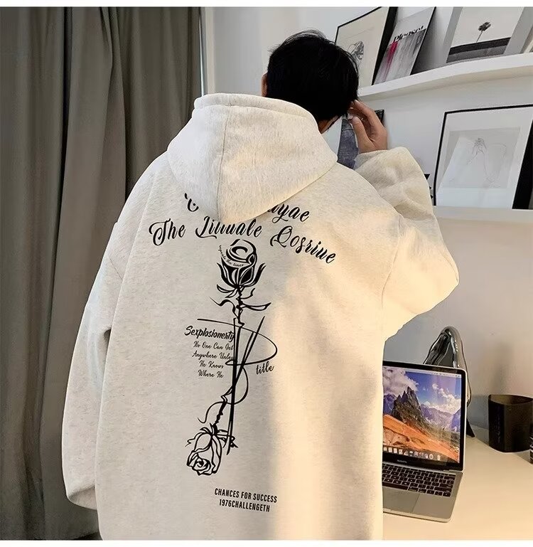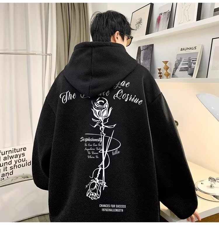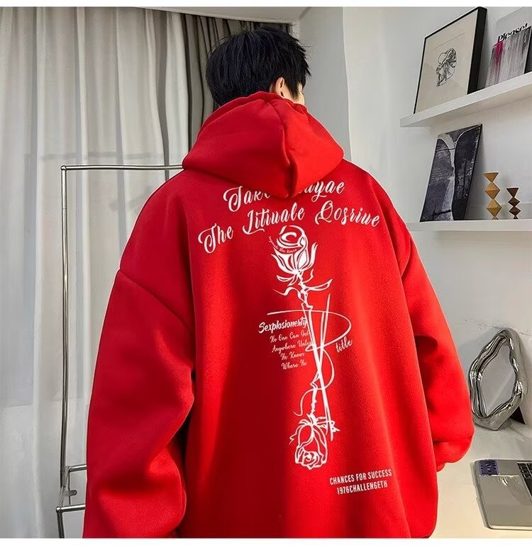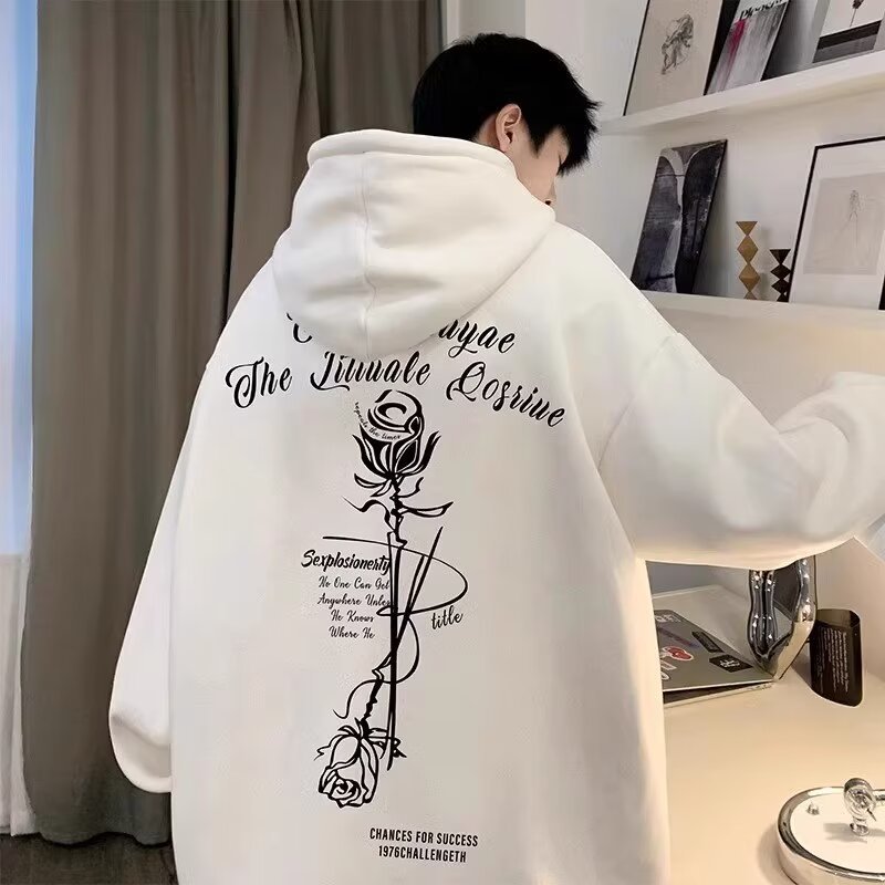 로즈 후드 스웨트 셔츠 남성 학생 미국 봄과 가을 풀오버 후디 패션 브랜드 느슨한 올 매치 후드 탑 패션스토어 가기
