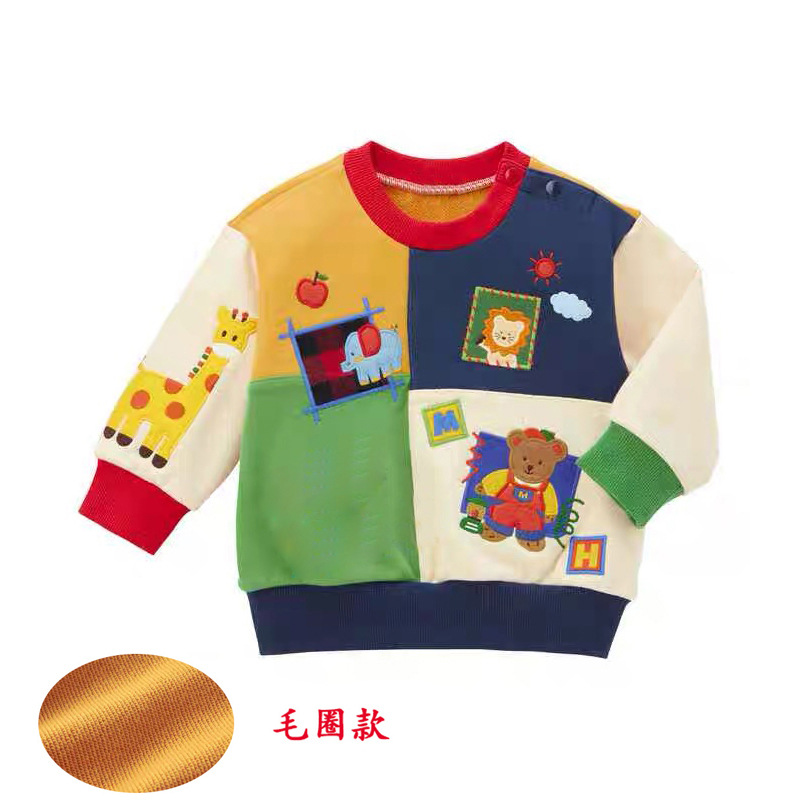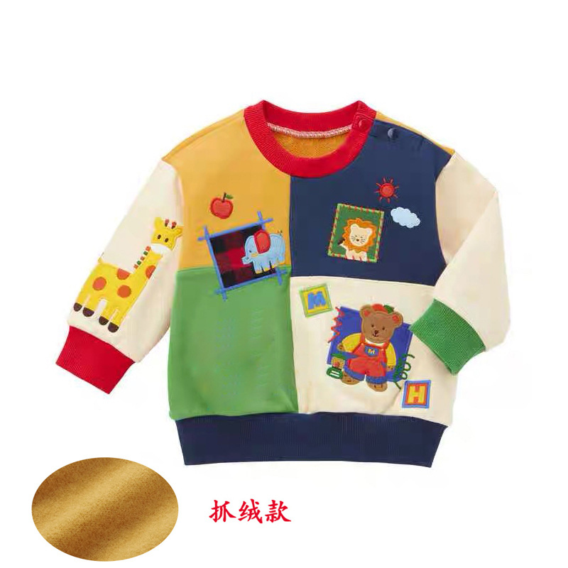 아동복 가을 겨울 신상 남녀 아동 만화 자수 곰 동물원 스티치 플러스 벨벳 스웨트셔츠 긴팔스토어 가기