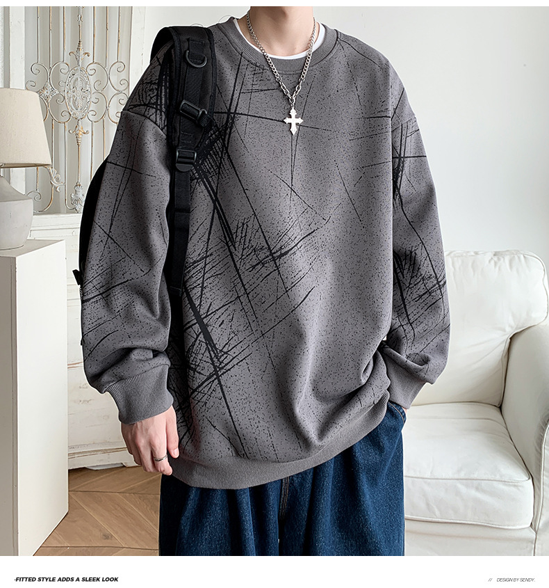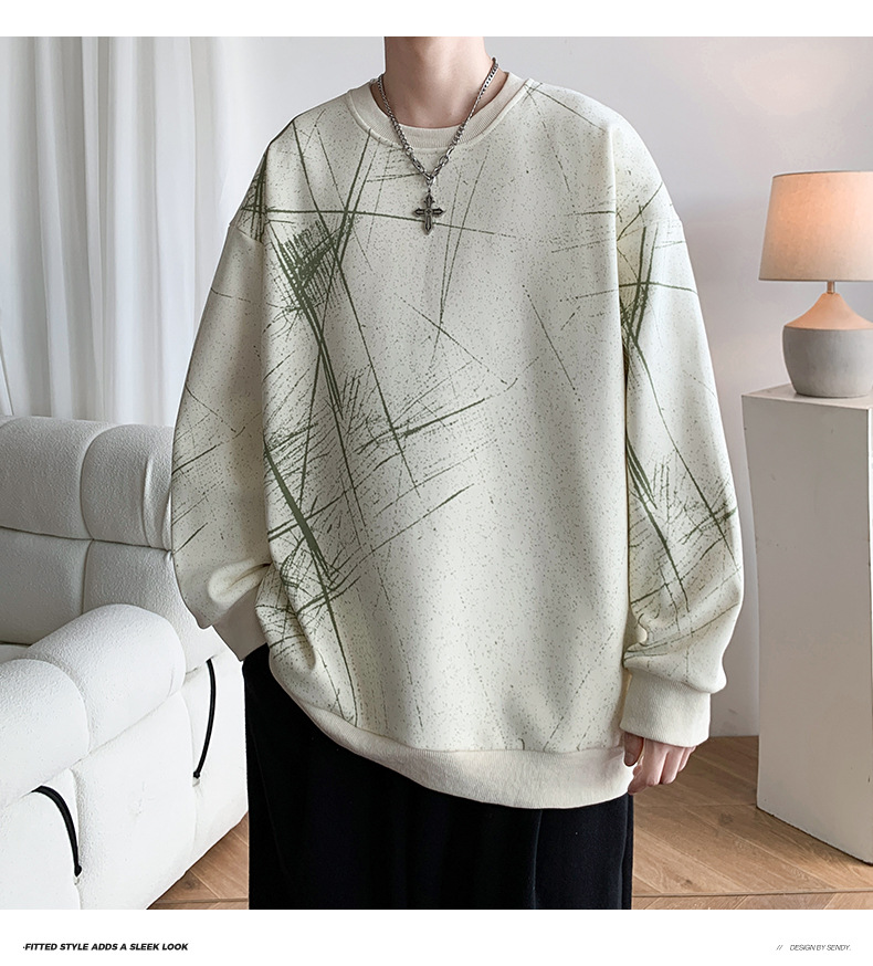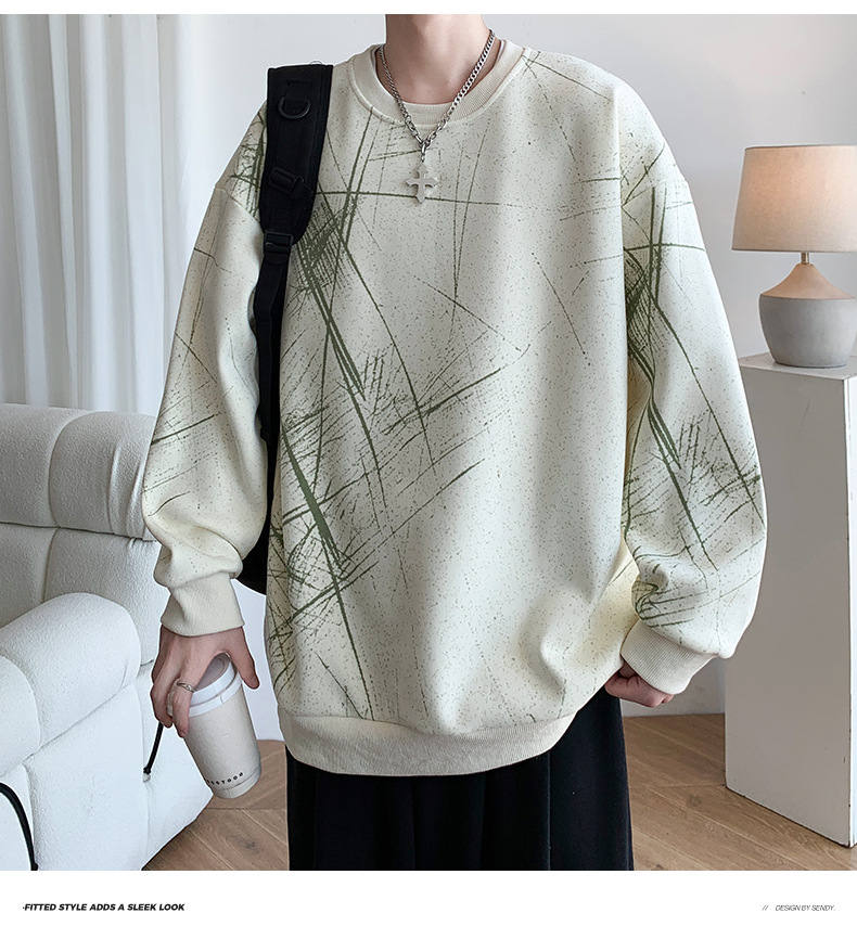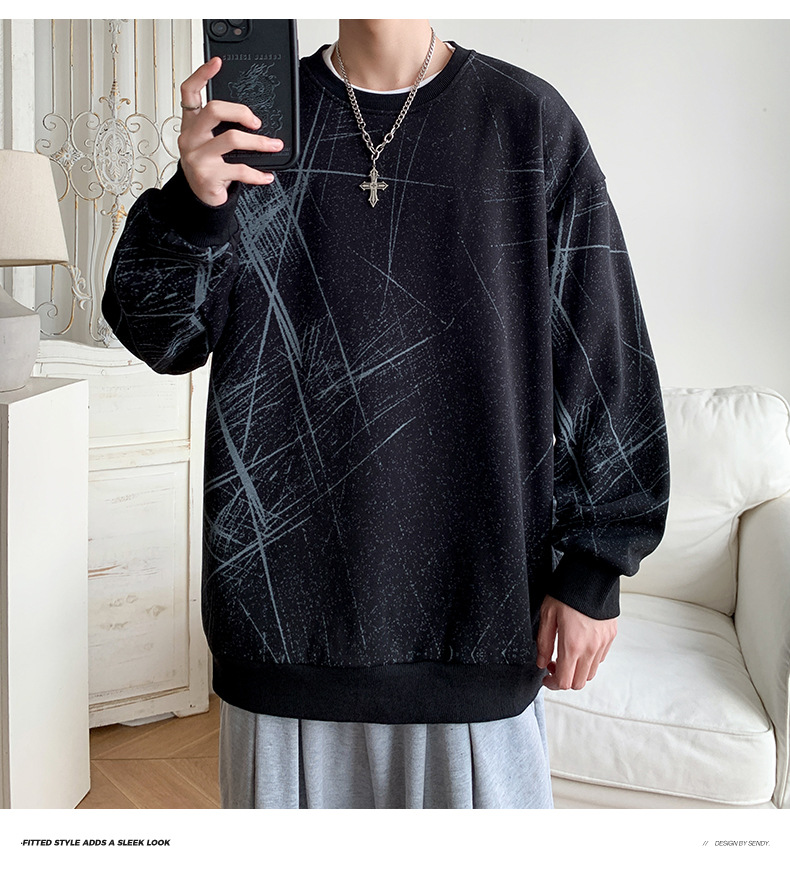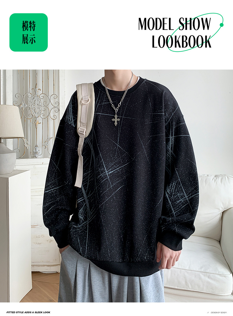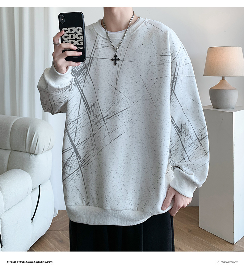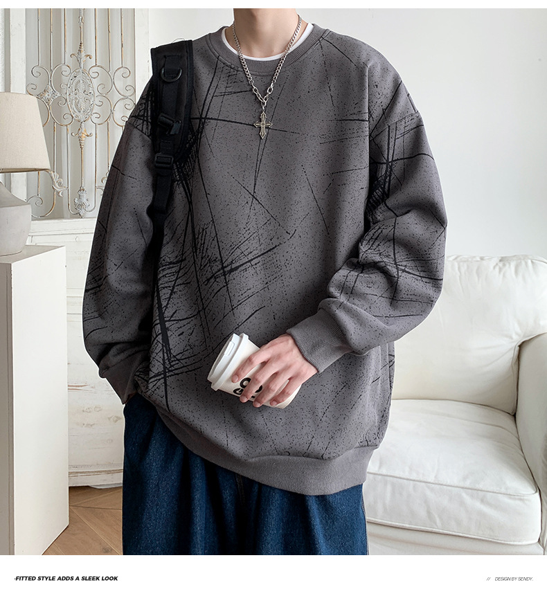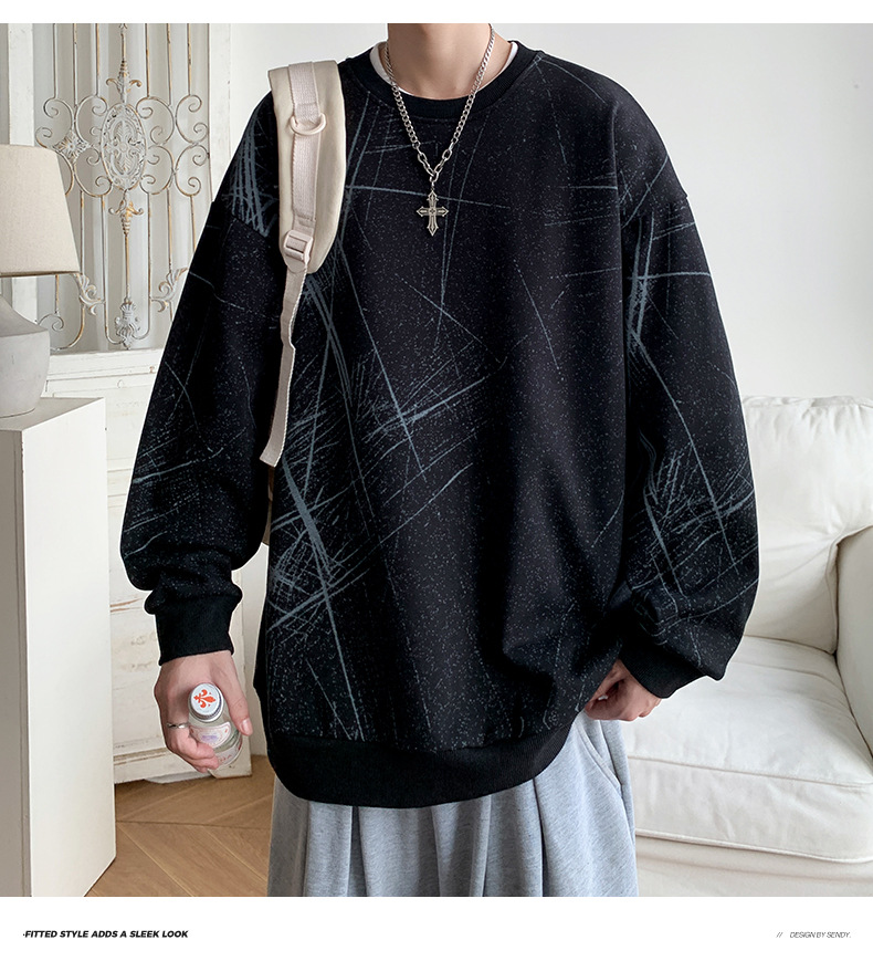 유행 브랜드 미국 스웨터 남자 2024 가을과 겨울 새로운 라운드 넥 느슨한 긴팔 티셔츠 유행 잘 생긴 루즈베이스 셔츠스토어 가기