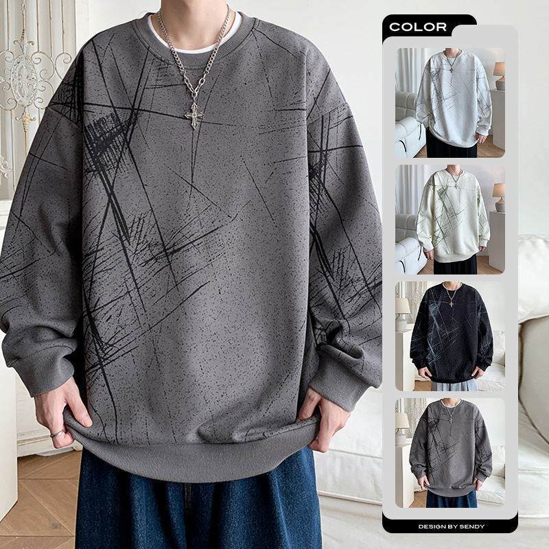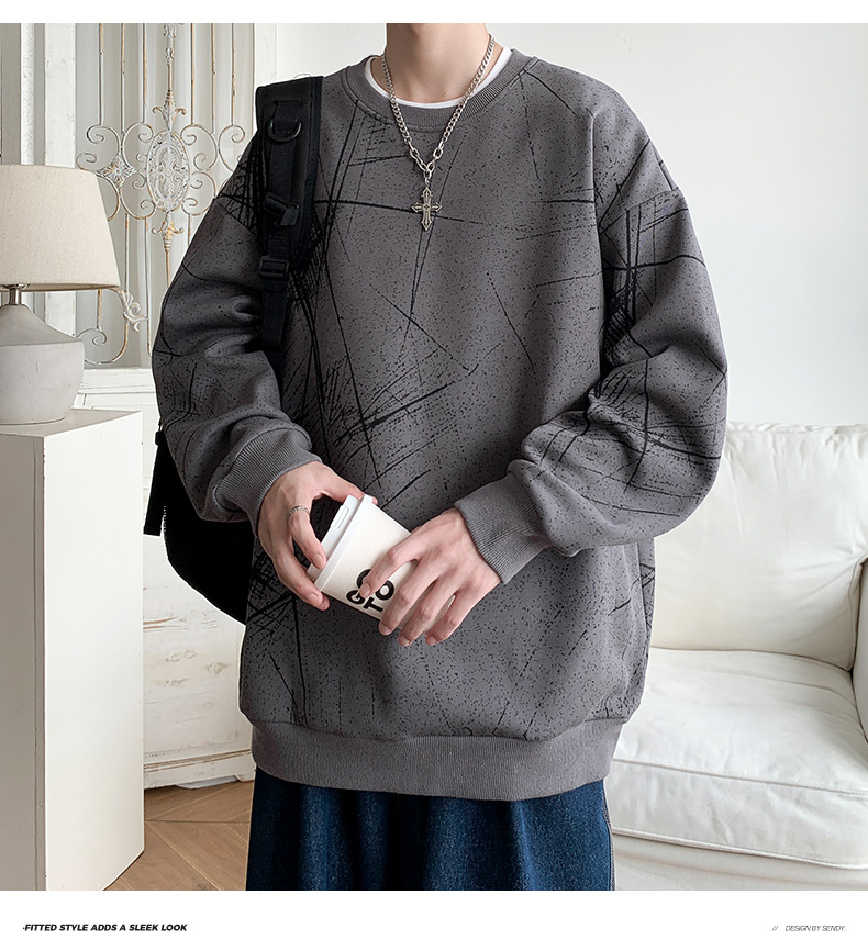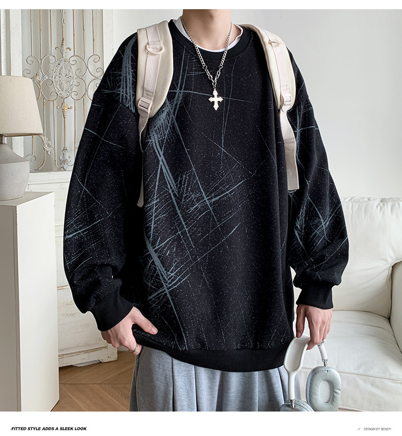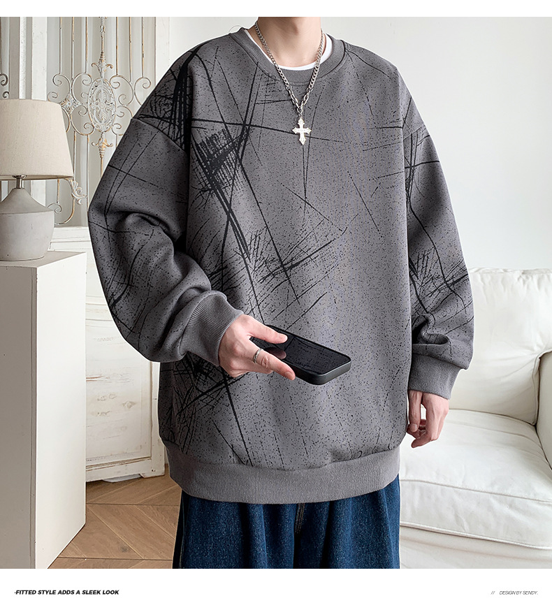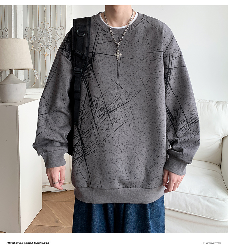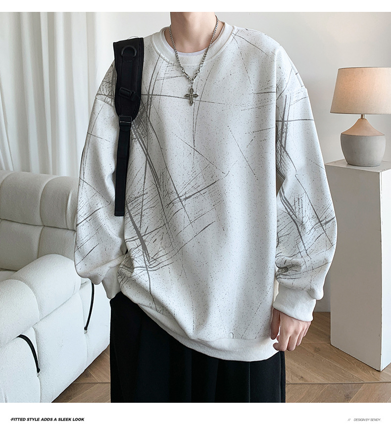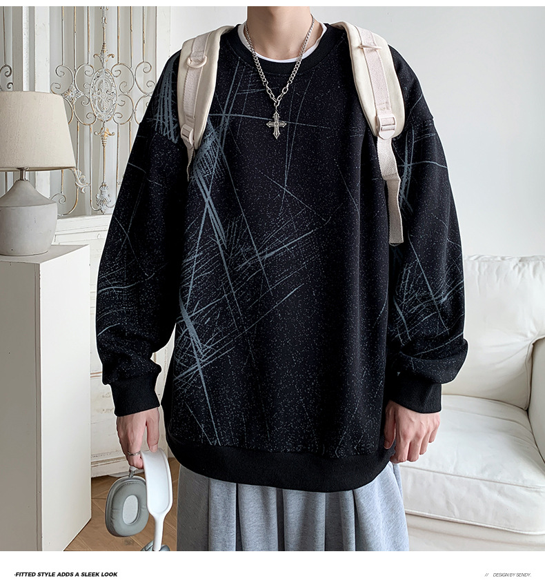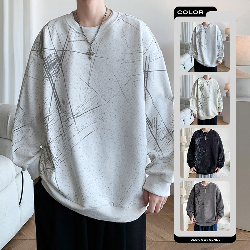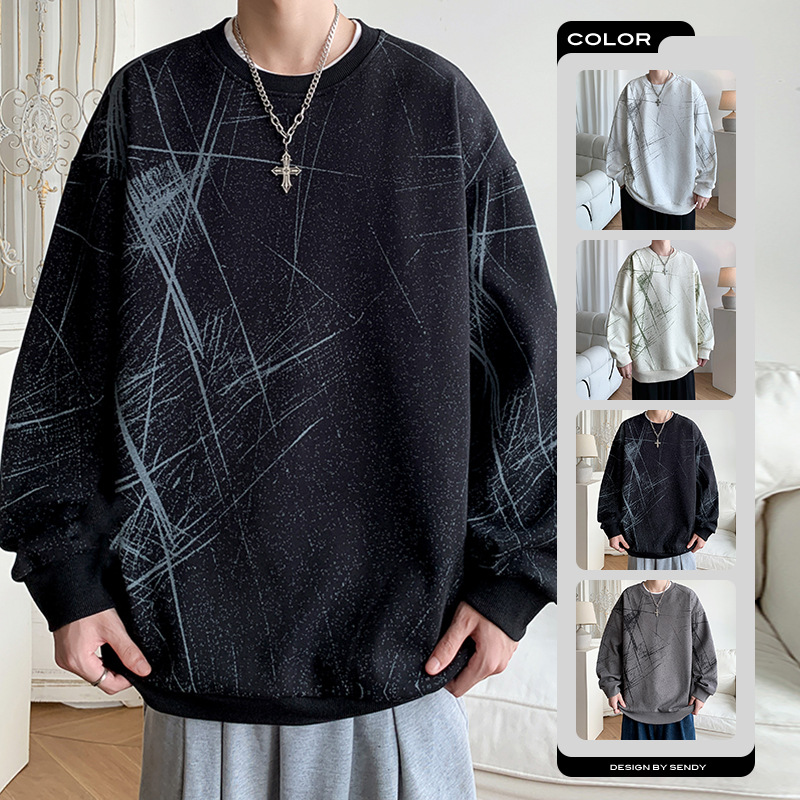 유행 브랜드 미국 스웨터 남자 2024 가을과 겨울 새로운 라운드 넥 느슨한 긴팔 티셔츠 유행 잘 생긴 루즈베이스 셔츠스토어 가기