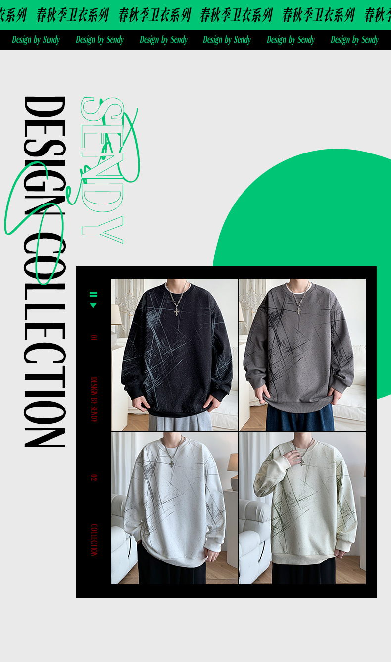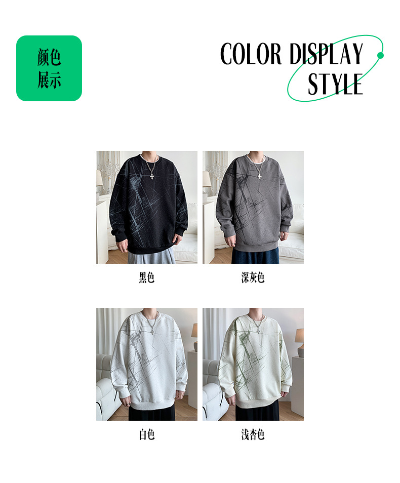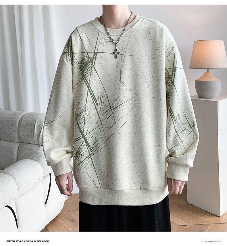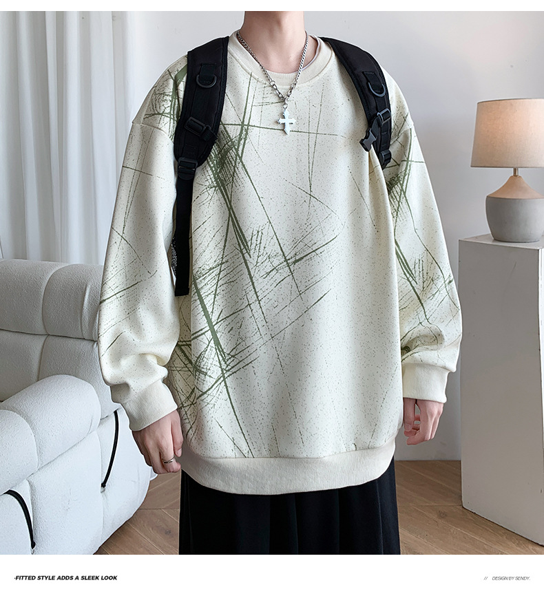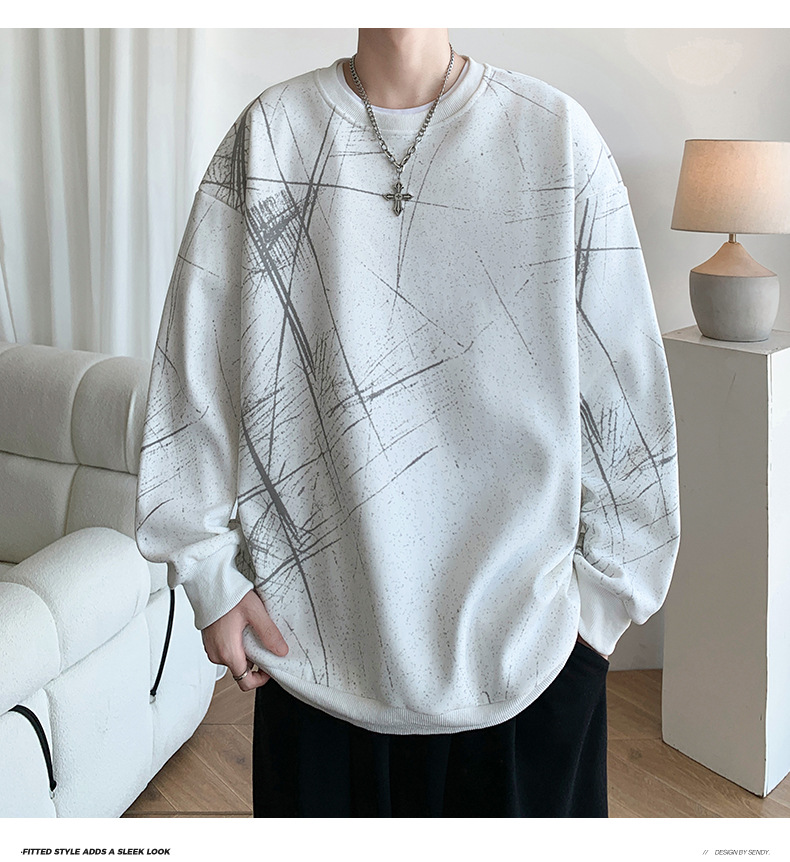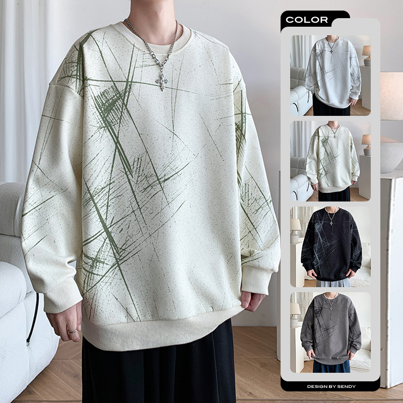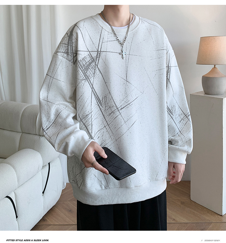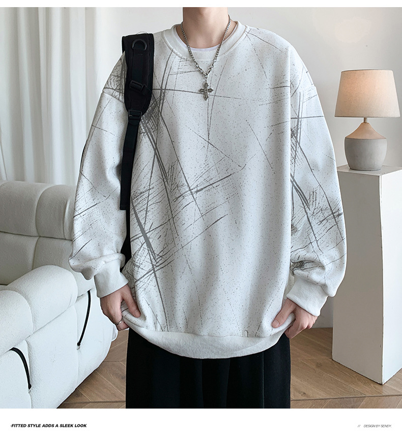 유행 브랜드 미국 스웨터 남자 2024 가을과 겨울 새로운 라운드 넥 느슨한 긴팔 티셔츠 유행 잘 생긴 루즈베이스 셔츠스토어 가기