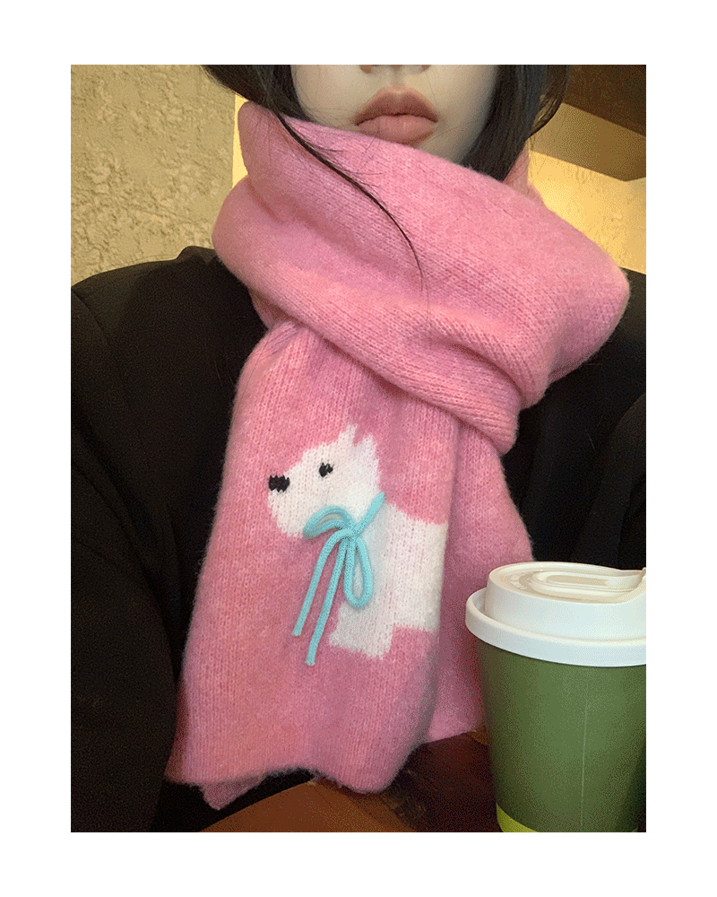 달콤한 시원한 토끼 수제 활 겨울 따뜻한 스카프 여성의 겨울 니트 양모 모조 캐시미어 스카프 단색 만화스토어 가기